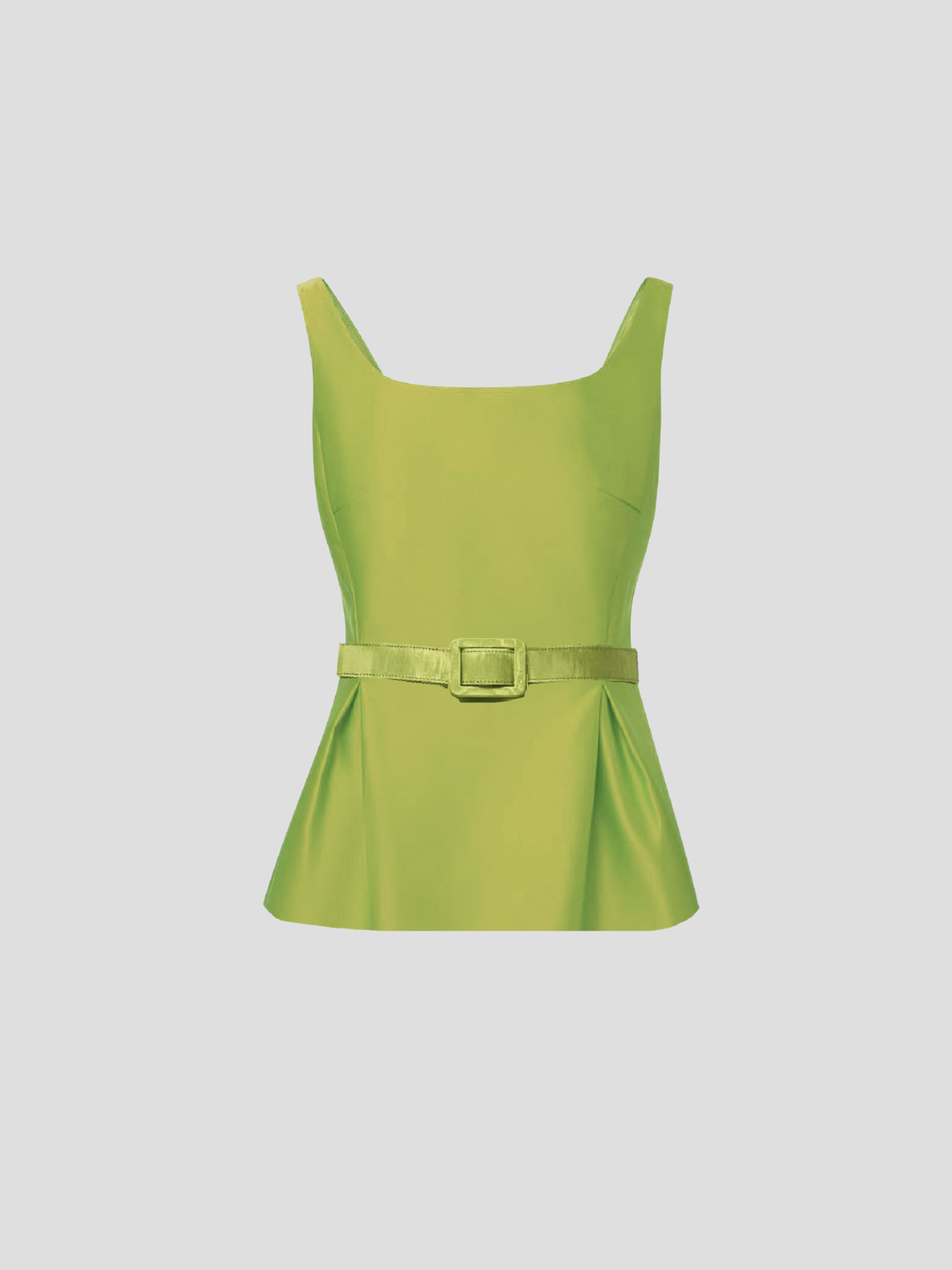 - Fitted bodice eases into inverted pleats for the perfect peplum