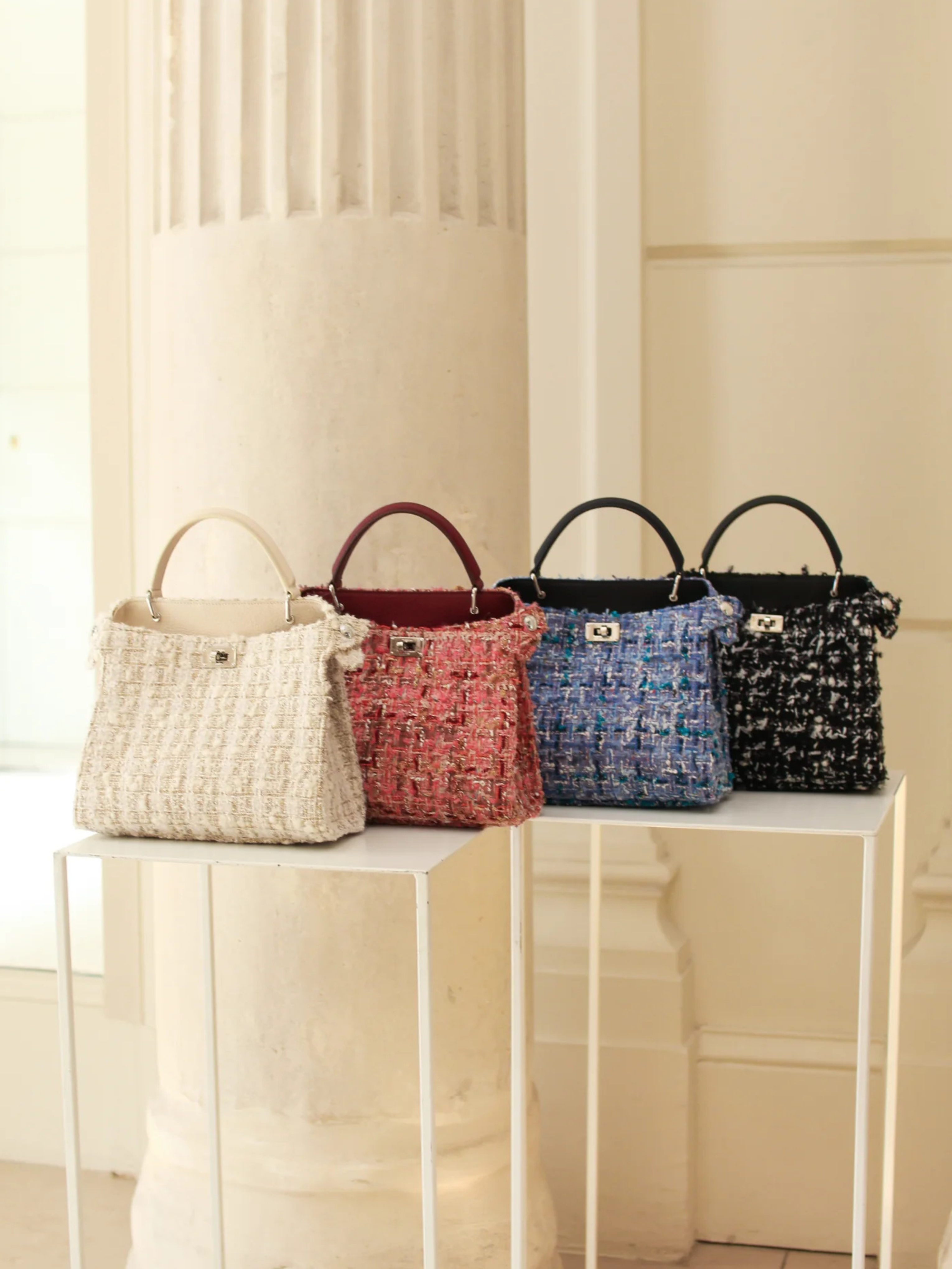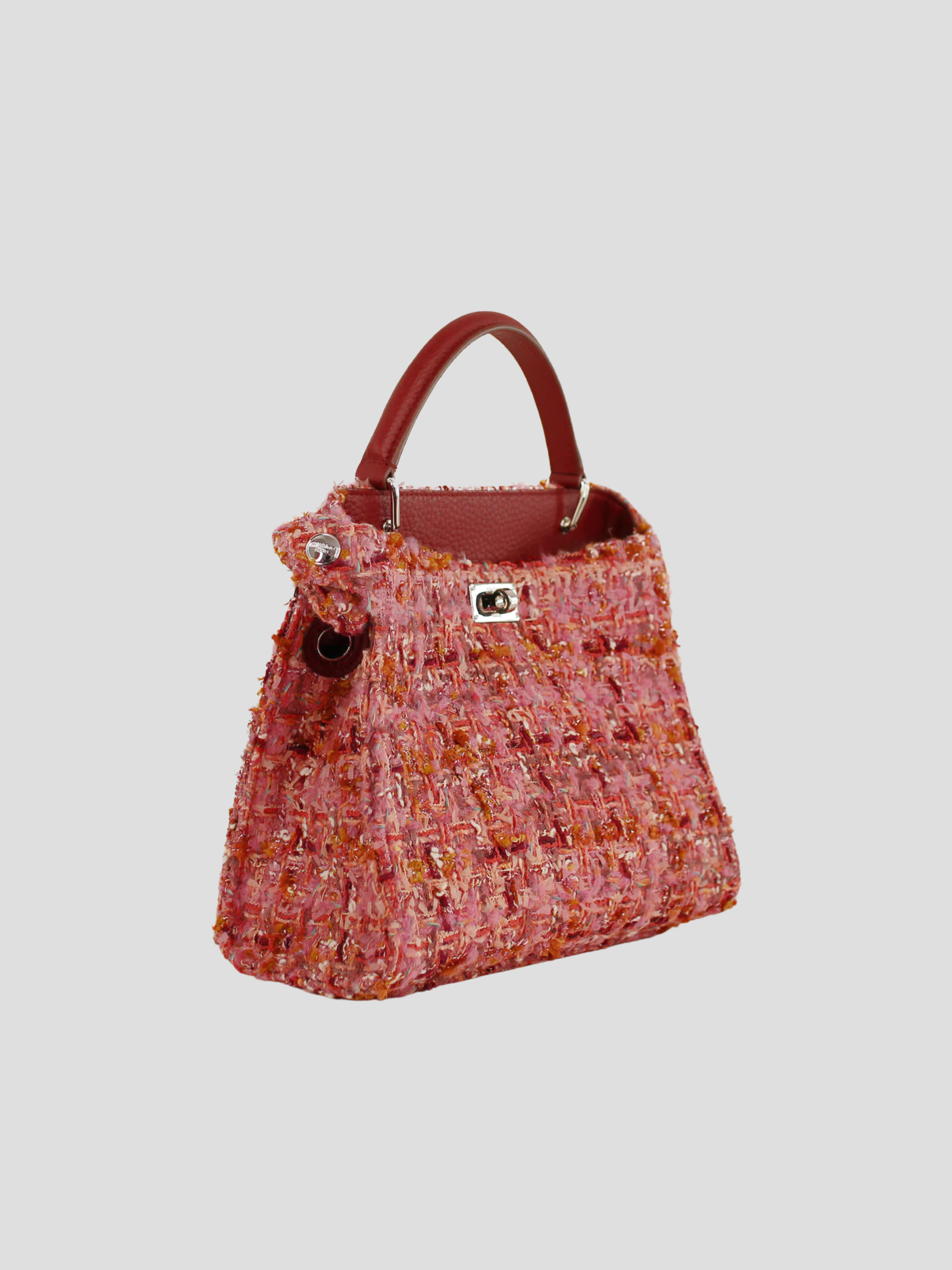 Expertly crafted with precision and style, the Lutece Mini in Light Pink Tweed is a stunning addition to any wardrobe. This compact bag boasts a beautiful light pink tweed design, making it a versatile and elegant choice for any occasion. Its compact size makes it perfect for on-the-go use, while still providing enough space for your essentials. Elevate your fashion game with the Lutece Mini.