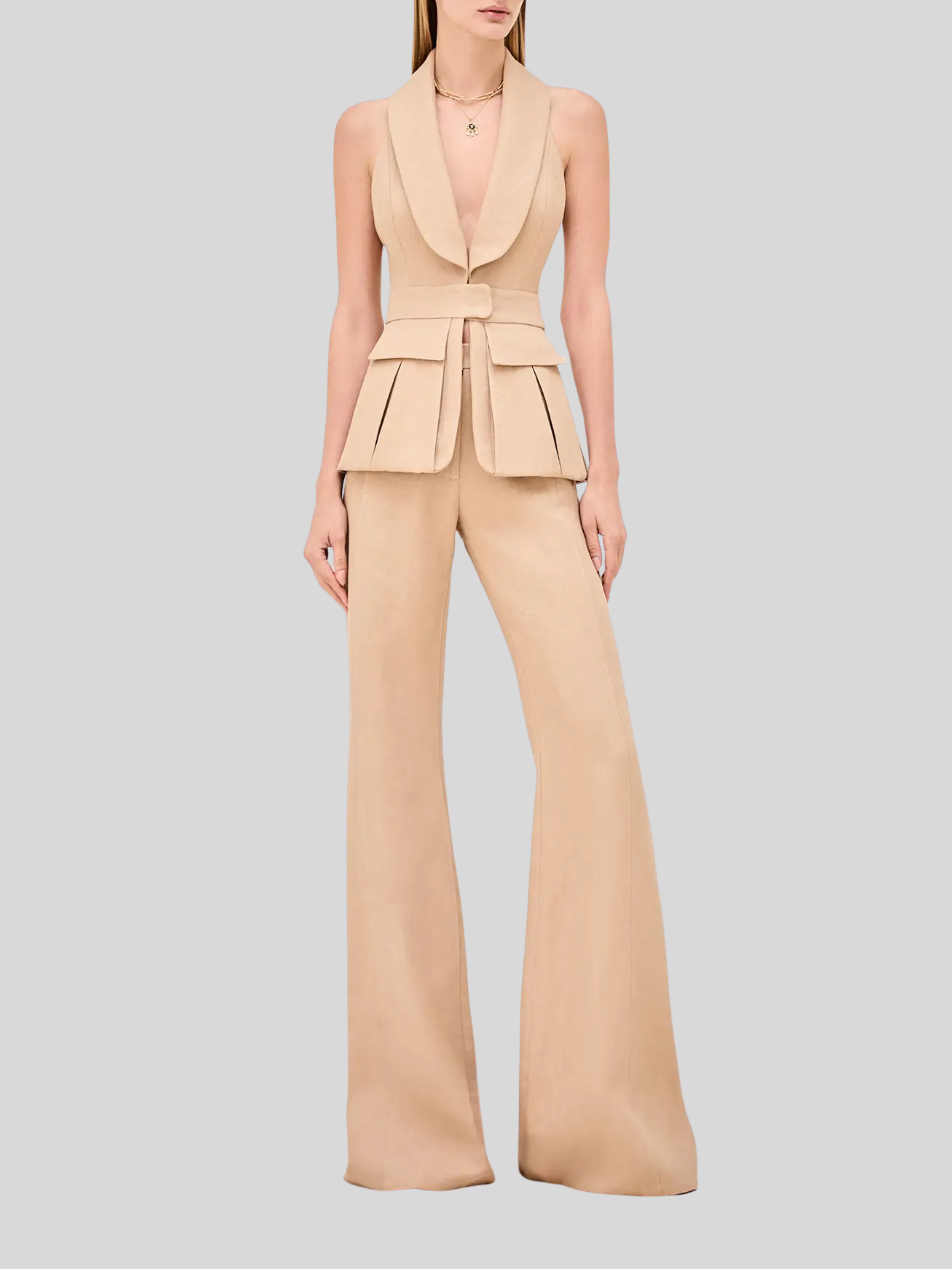 The Samwell Pant is a straight-leg pant with front pockets, paired with the Micoli Top.