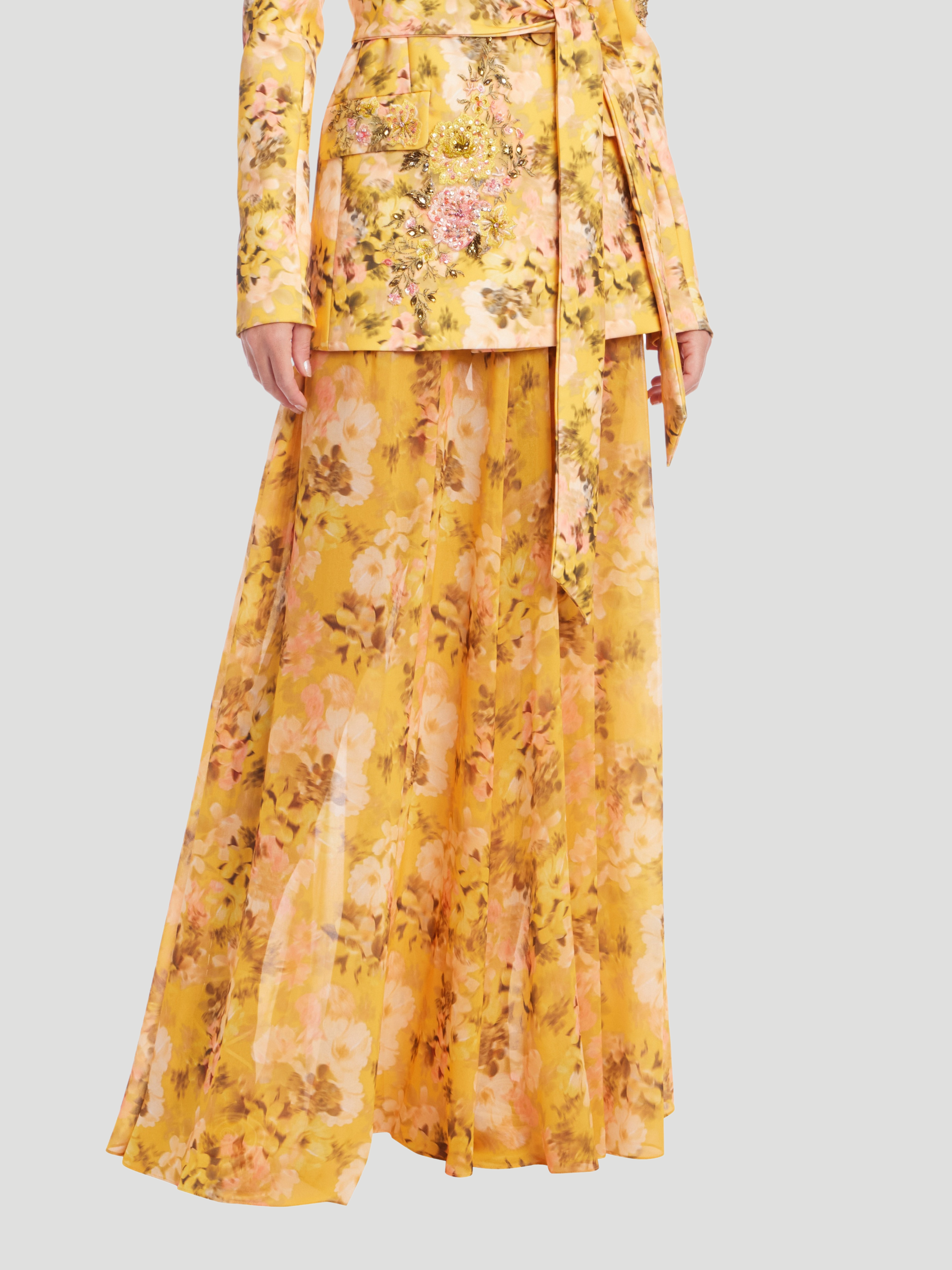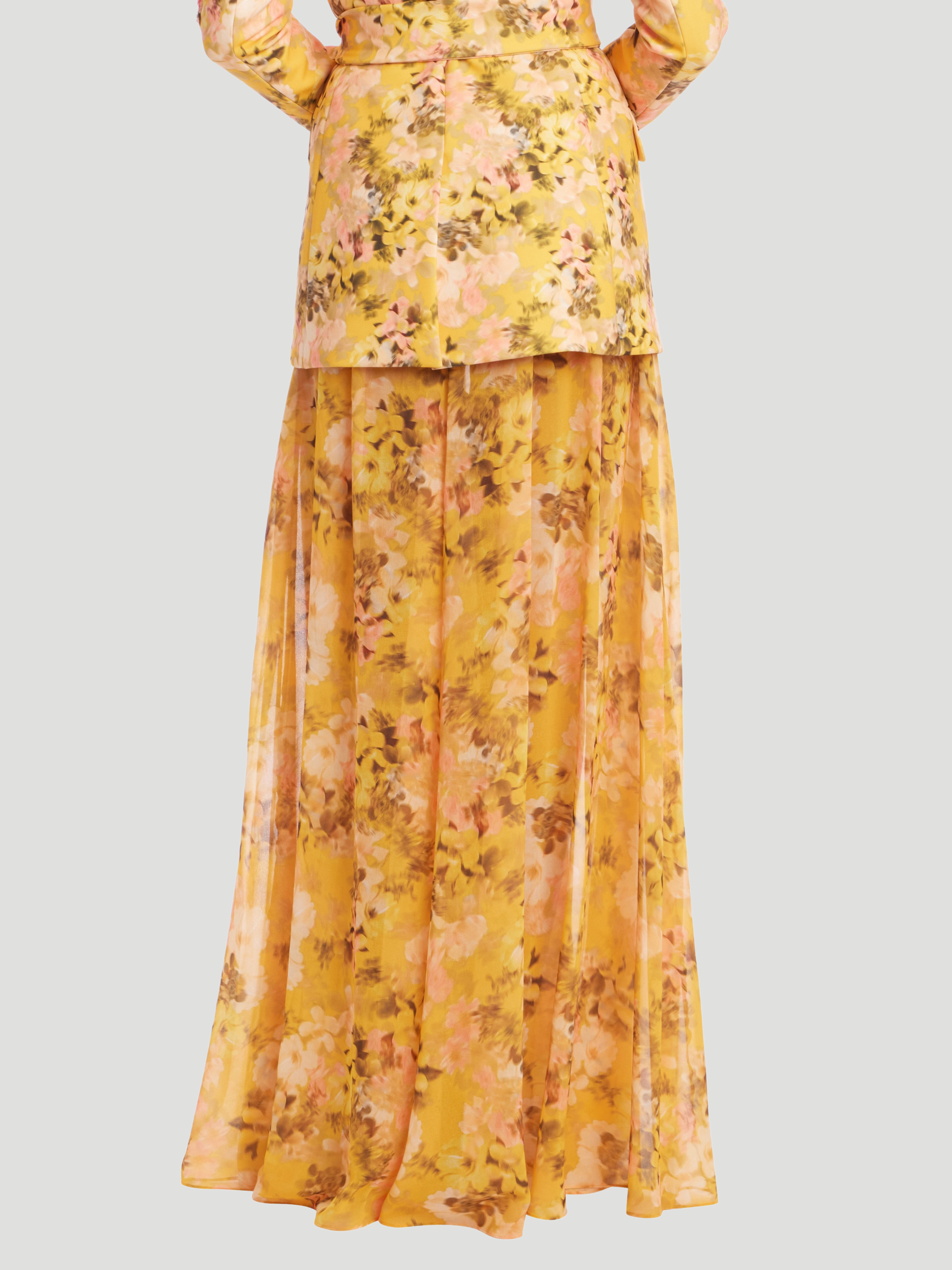 The Floral Georgette Wide-Leg Pants effortlessly combine style and comfort. Crafted from feather-light, printed georgette, the wide-leg silhouette offers a carefree and flattering fit. The sunny yellow base is complemented by soft, watercolor-like florals for a fresh, versatile look. Perfect for any occasion, from garden parties to brunch.