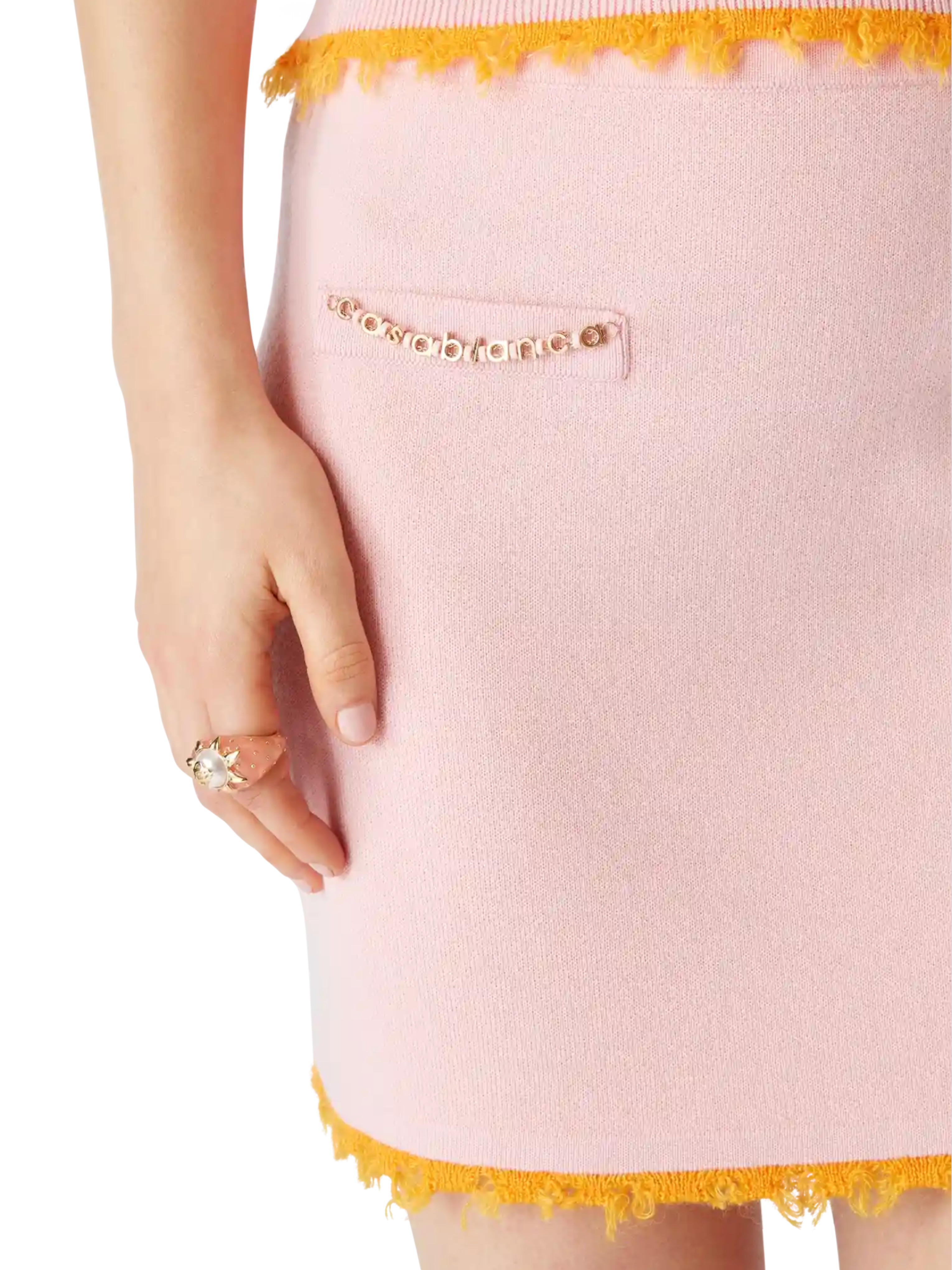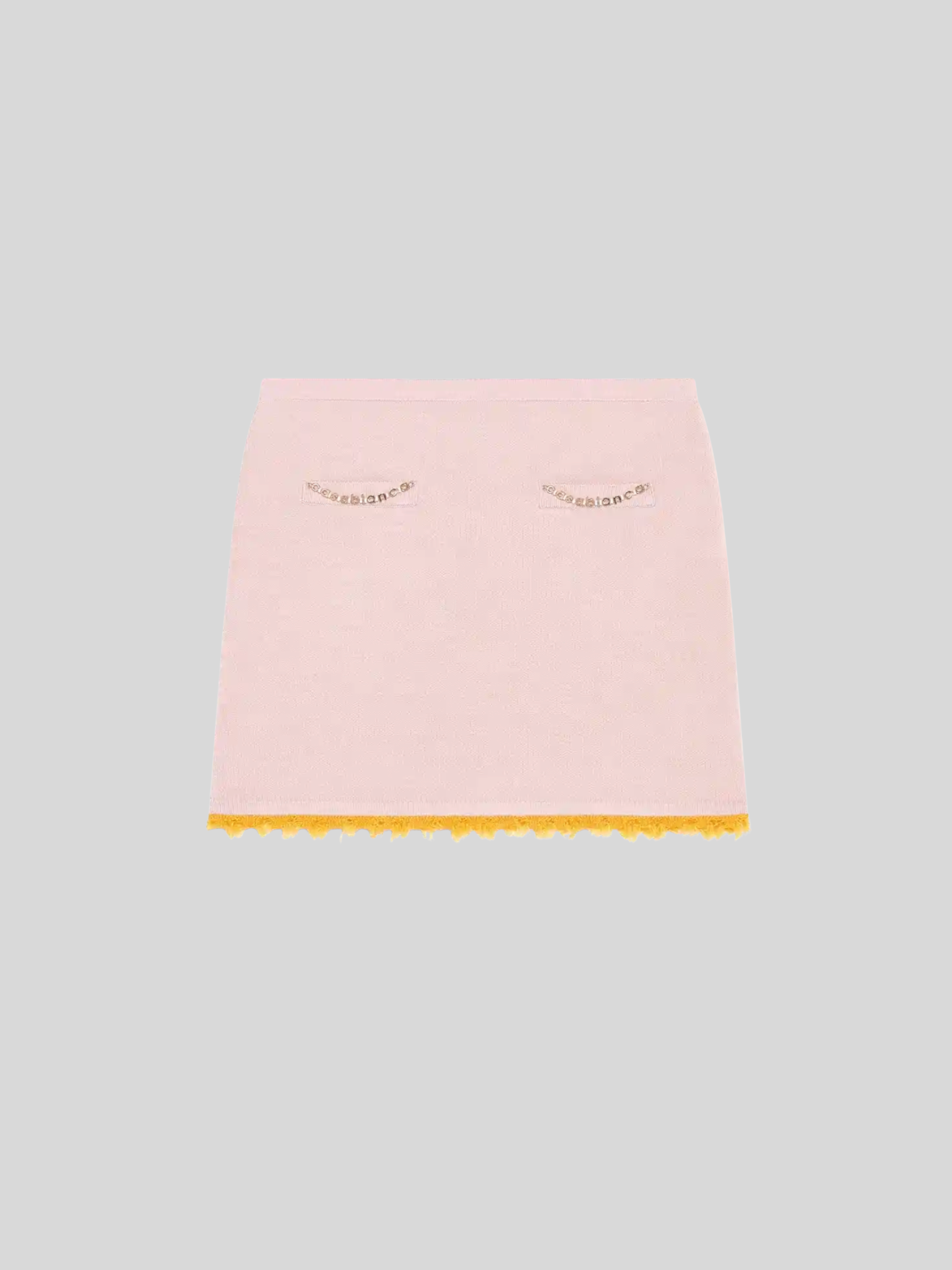 The merino mini skirt is a fitted design crafted from merino wool fabric featuring an A-line silhouette. Completed with welt pockets, and frayed edge detail .