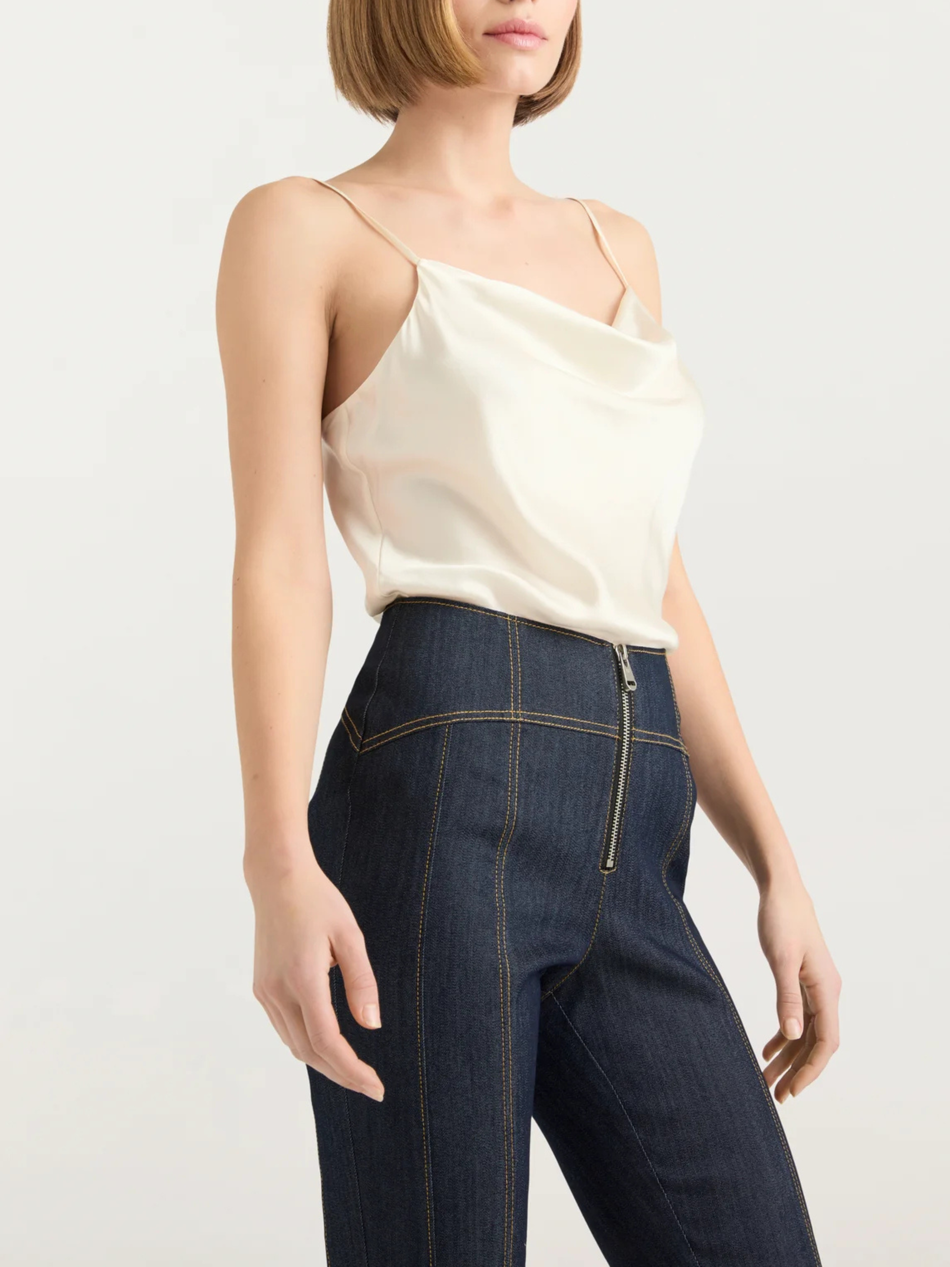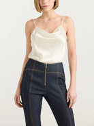 Our opulent Marta Cami, expertly designed with the finest silk, is just the touch to enhance any ensemble. Features a weighted cowl neckline for the perfect drape. Effortlessly layer it beneath any jacket or pair it with monochromatic trousers for a look of sophistication that endures all day.