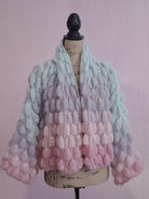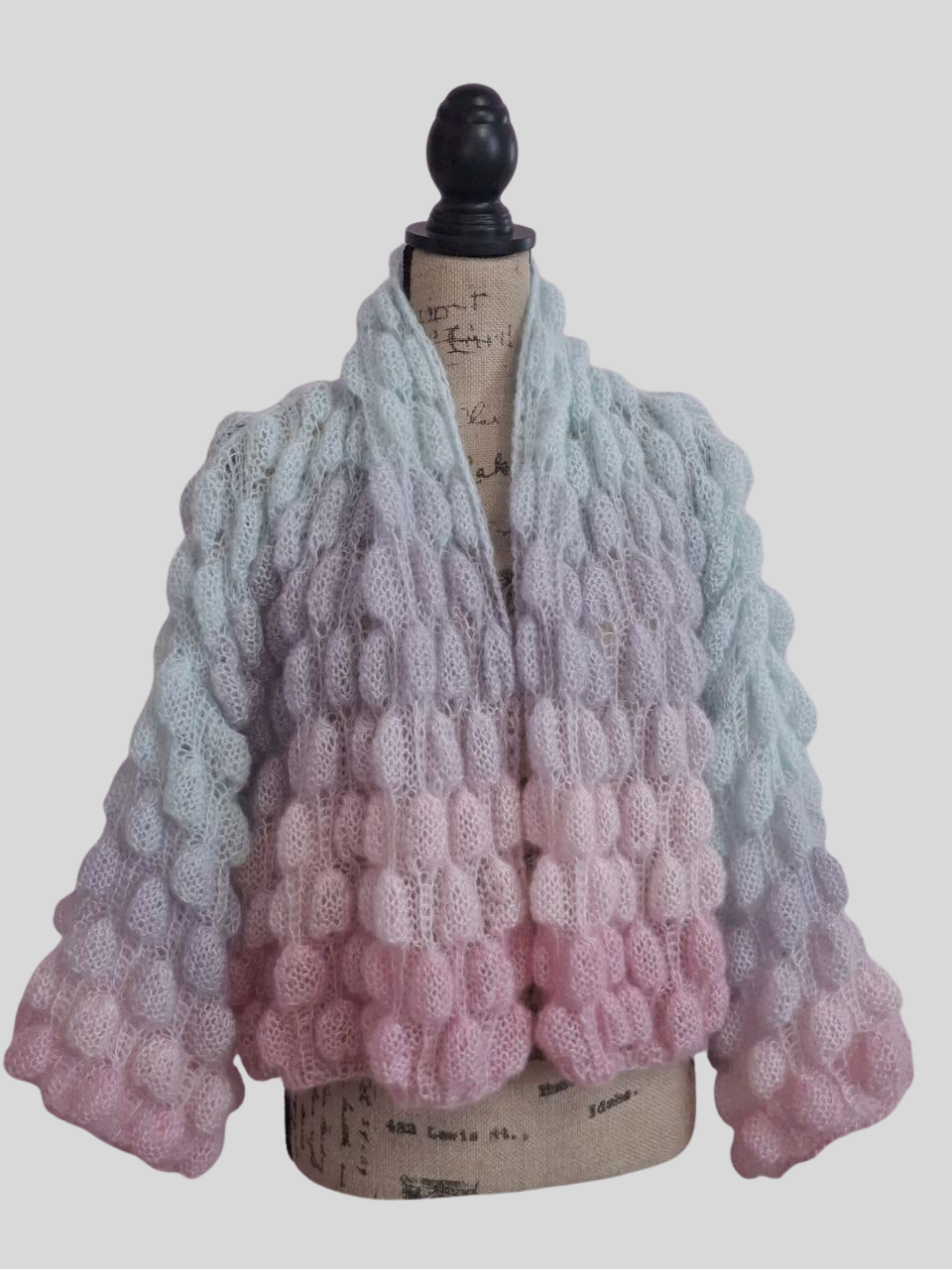The Crop Emma Lace Jacket is a dreamy tri-color wonder that celebrates all things soft and sweet. Blending baby blue, lilac, and baby pink in one enchanting design, this cropped layer brings instant joy to your wardrobe. Crafted from 75% baby mohair and 25% silk, it's impossibly touchable and drapes with graceful ease. The delicate lace construction adds romantic charm while the cropped silhouette keeps things modern and fun. Layer it over slip dresses, tees, or tanks for a look that's equal parts whimsy and sophistication. Pure magic in pastel form.