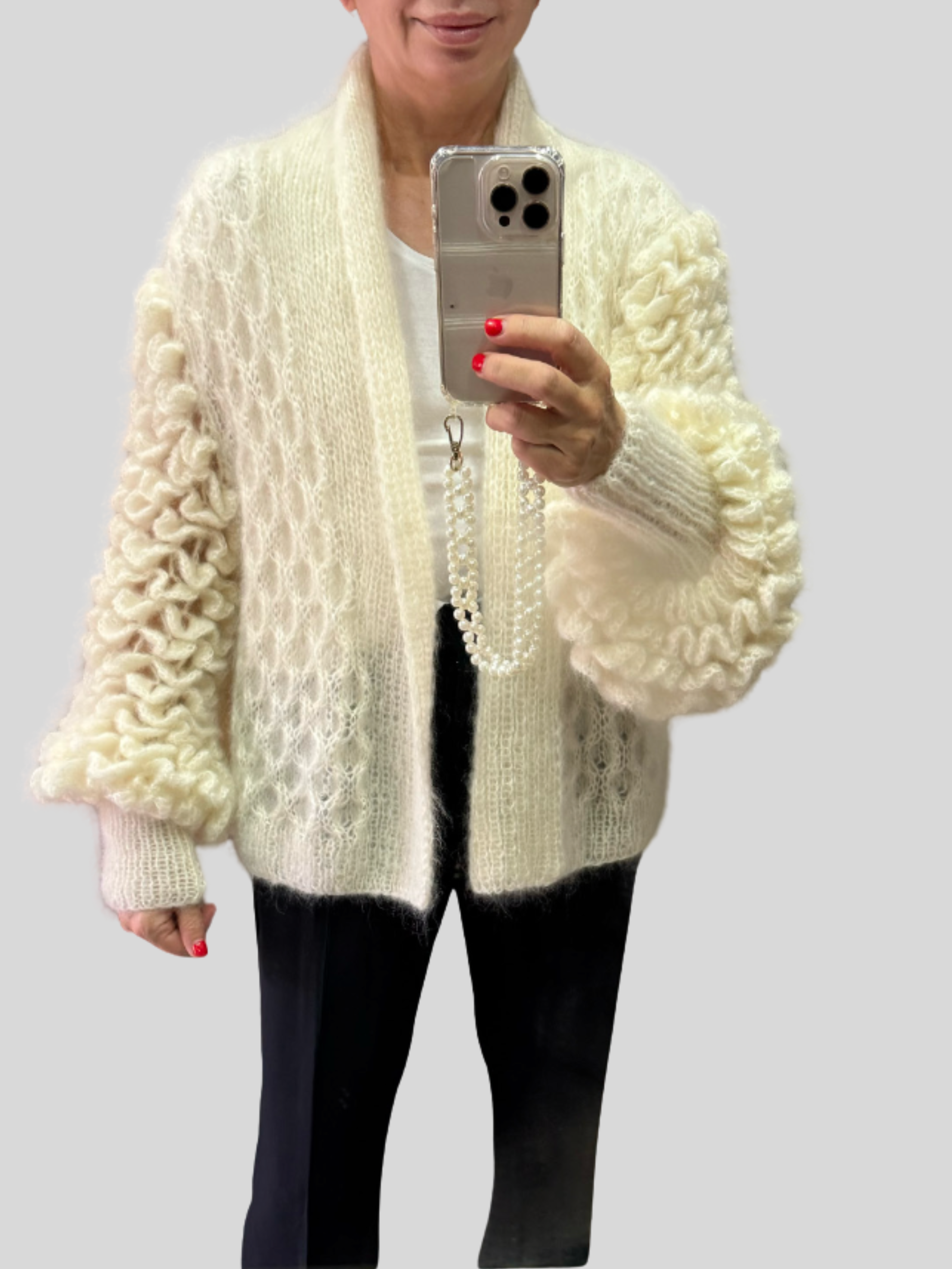 Introducing Eva Lace in White—a luxurious blend of 75% baby mohair and 25% silk that's as soft as a cloud and twice as elegant. This delicate lace weaves together comfort and sophistication, perfect for creating pieces that feel like wearing a whisper. Whether you're crafting a dreamy shawl, a romantic garment, or something wonderfully unexpected, Eva Lace brings a touch of refined playfulness to every stitch. Silky smooth with a gentle drape, this yarn is your ticket to creating something absolutely swoon-worthy.