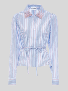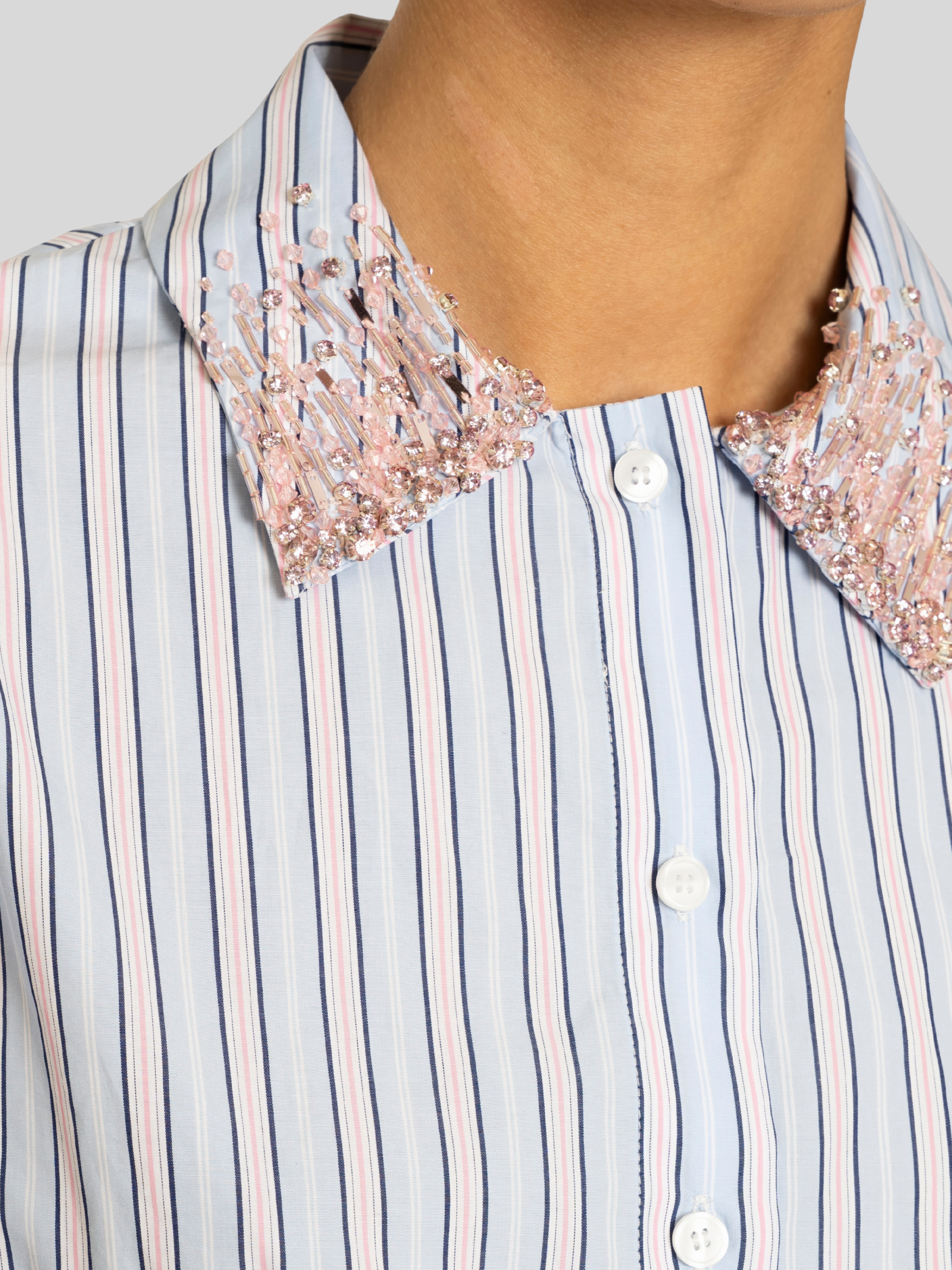 Petite Classic Shirt with Crystal Collar in Blue and Pink