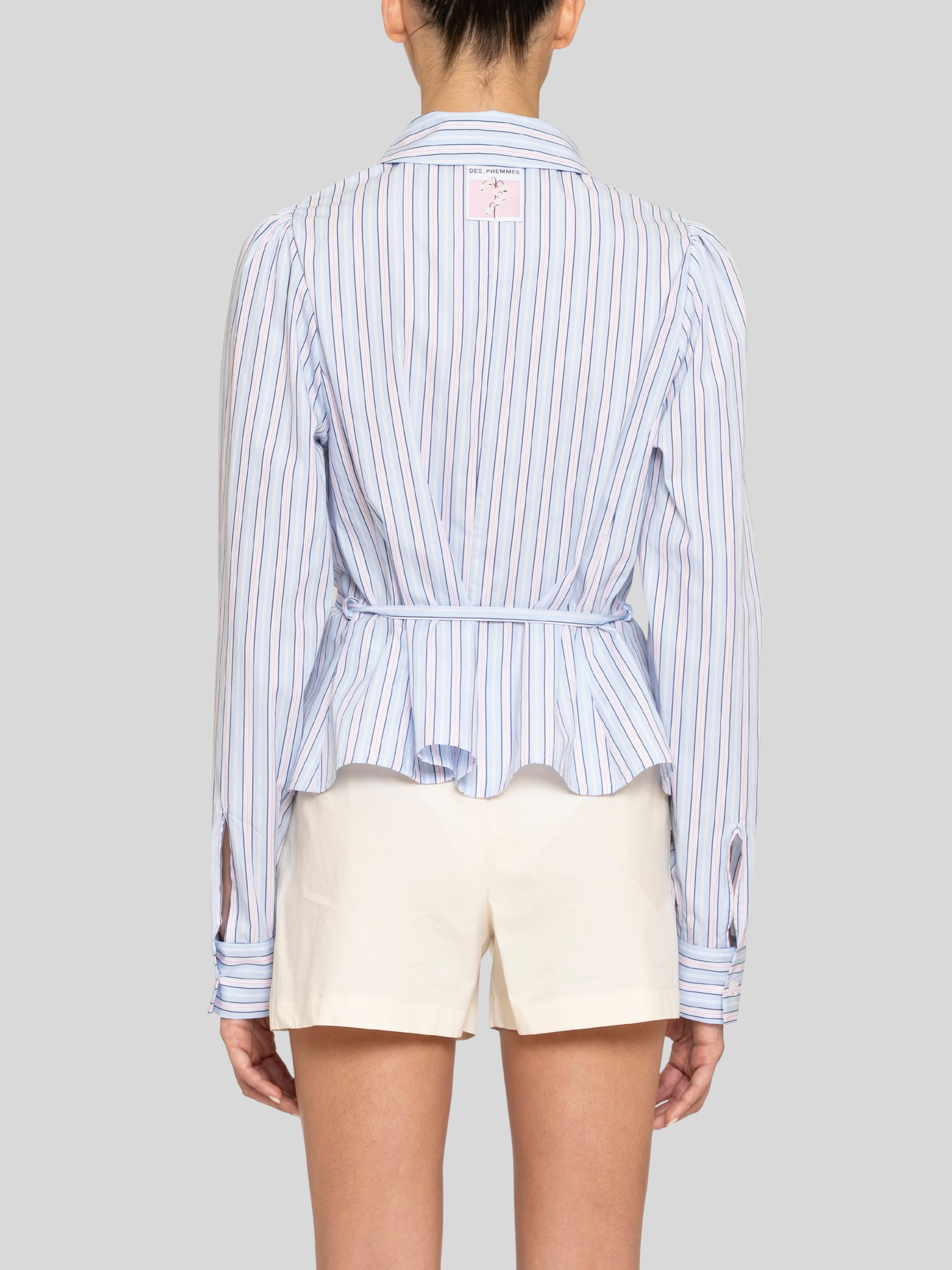 • LONG SLEEVE PEPLUM SHIRT WITH WITH TOPSTITCHED DARTS AND WAISTBAND