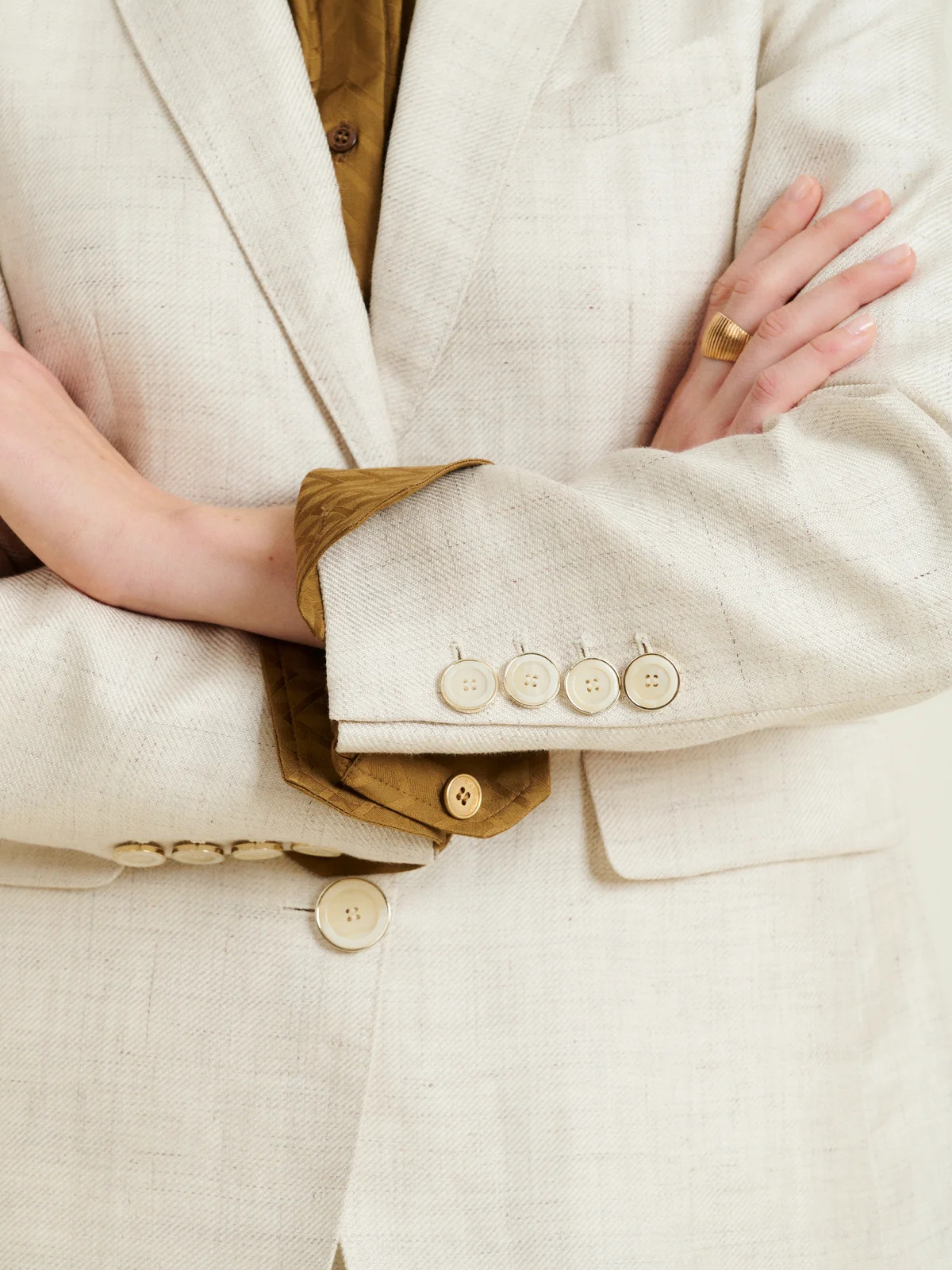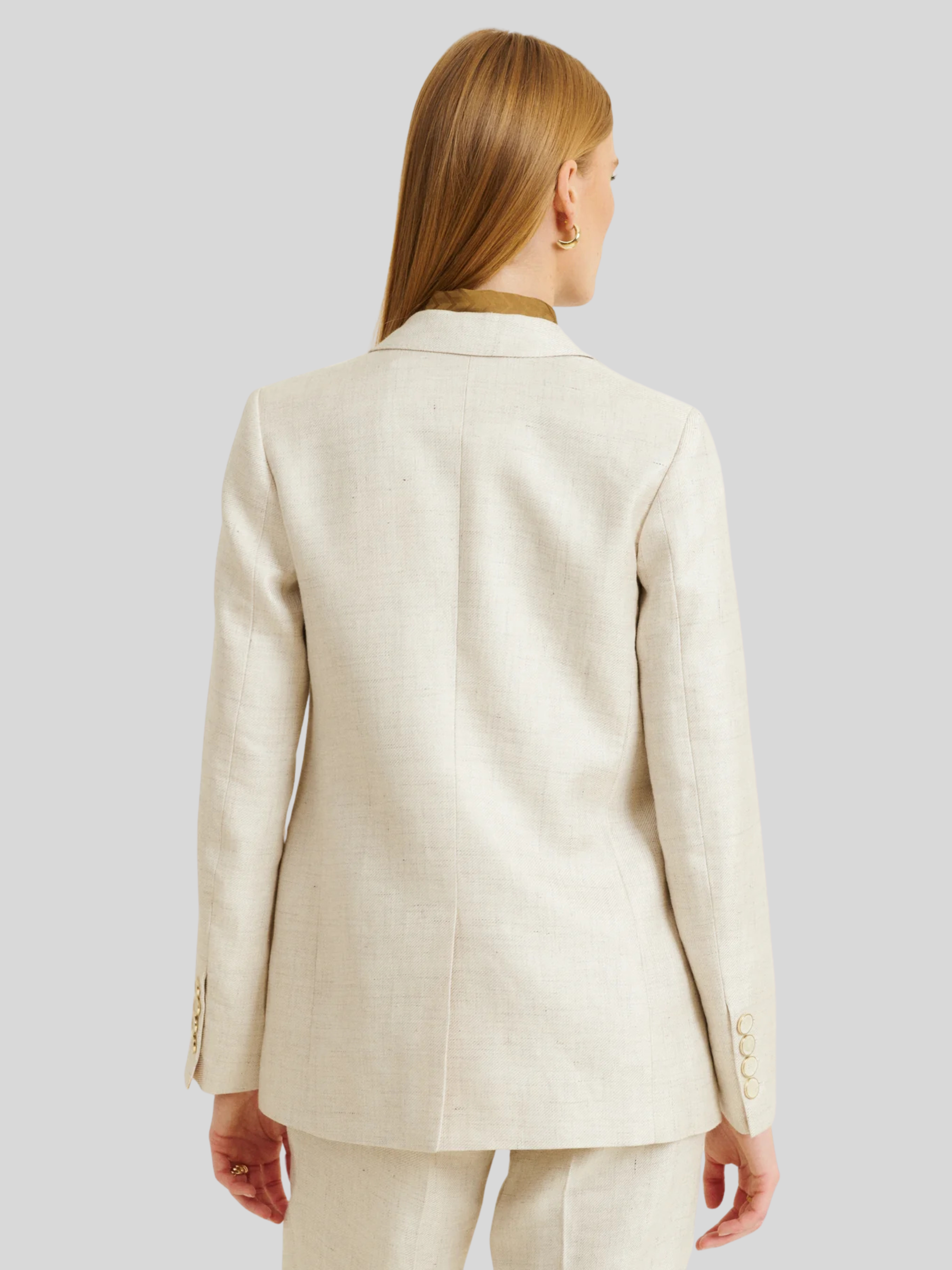 The Alma Blazer in Beige is a timeless wardrobe essential that effortlessly elevates any outfit. Crafted with refined tailoring, this versatile blazer features a clean silhouette perfect for layering over dresses, tees, or button-downs. The soft beige tone pairs seamlessly with neutrals and bold colors alike, making it ideal for both professional settings and casual styling. Whether you're dressing up for the office or adding polish to weekend wear, the Alma delivers understated sophistication with enduring appeal.