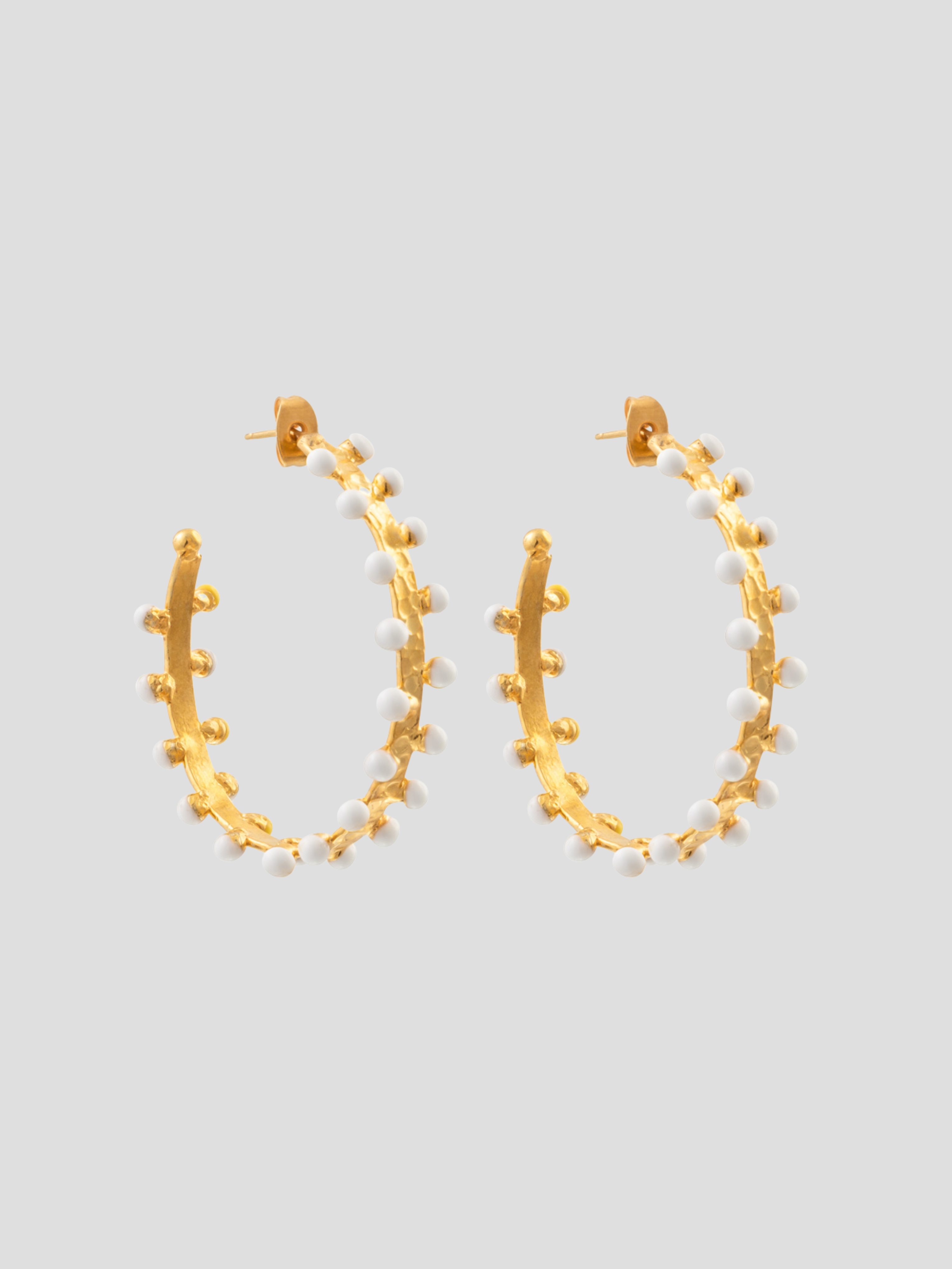 Boucles d’oreille/ Earrings: “Gipsy” – Pierre/Stone: Gold – White Enamel