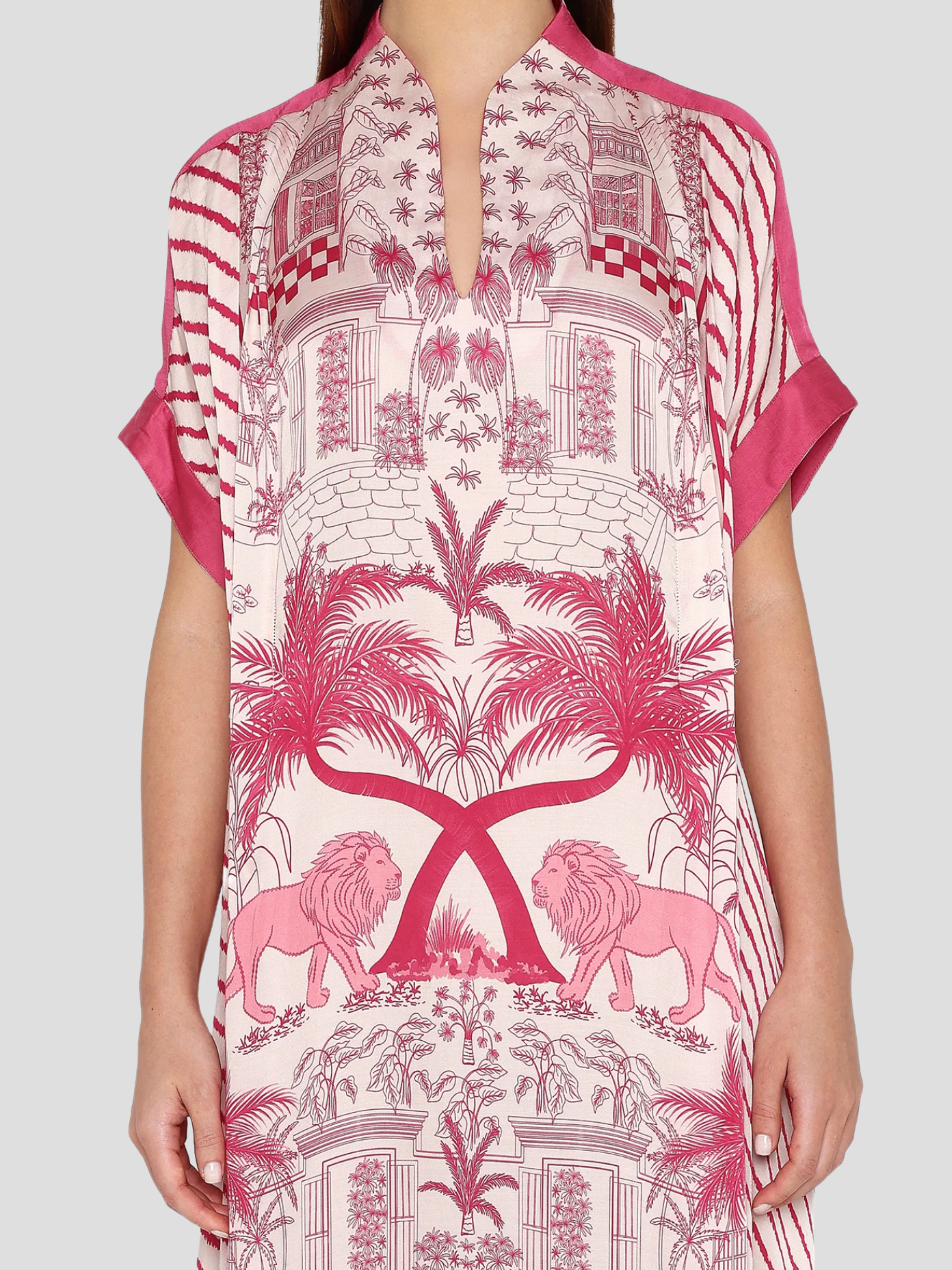 Sundowner Kaftan in Dusty Rose and Raspberry