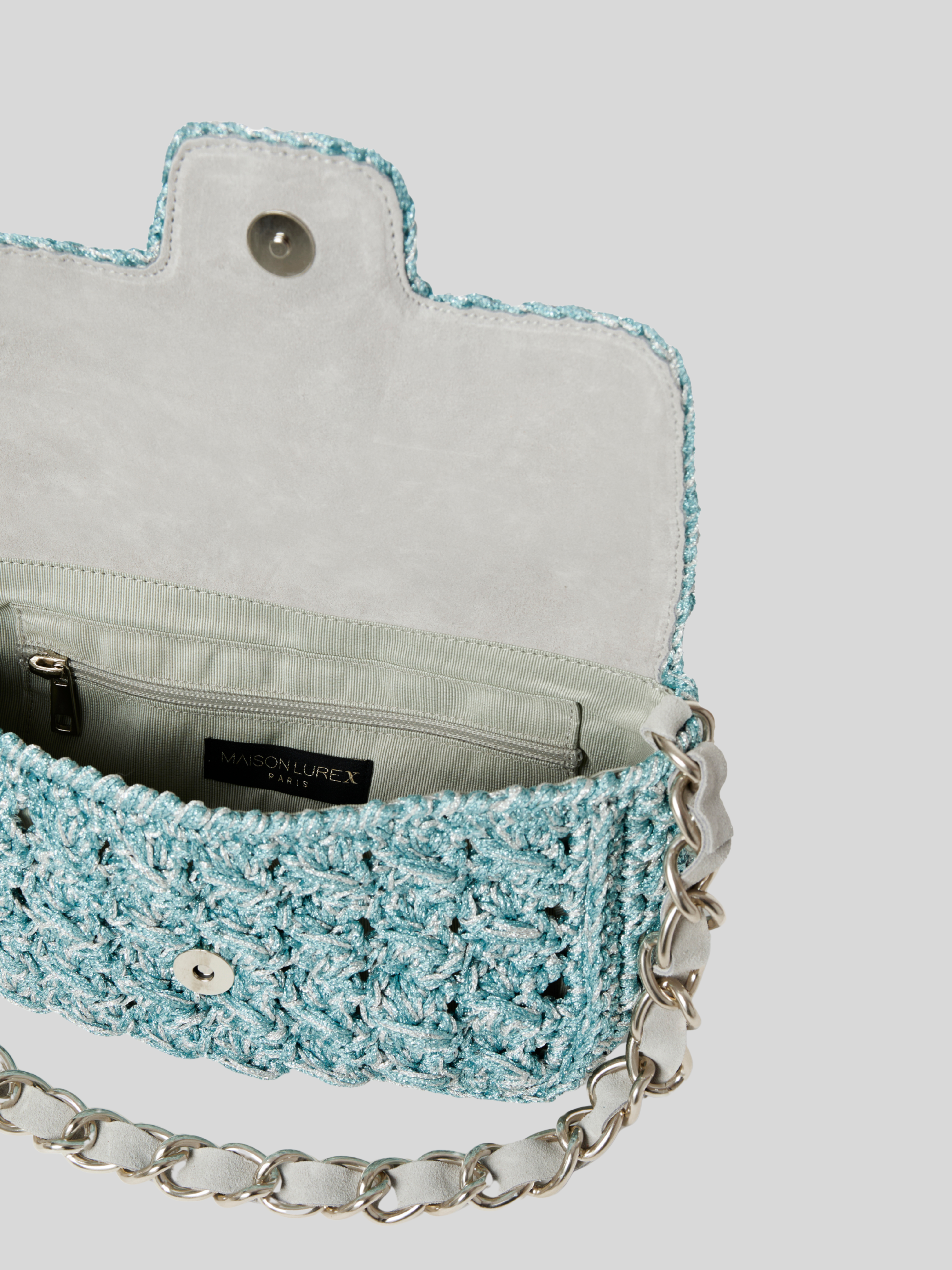 Hand-crocheted shoulder bag made in Italy with Lurex® threads. It's the small-size version of our Fenice bag.