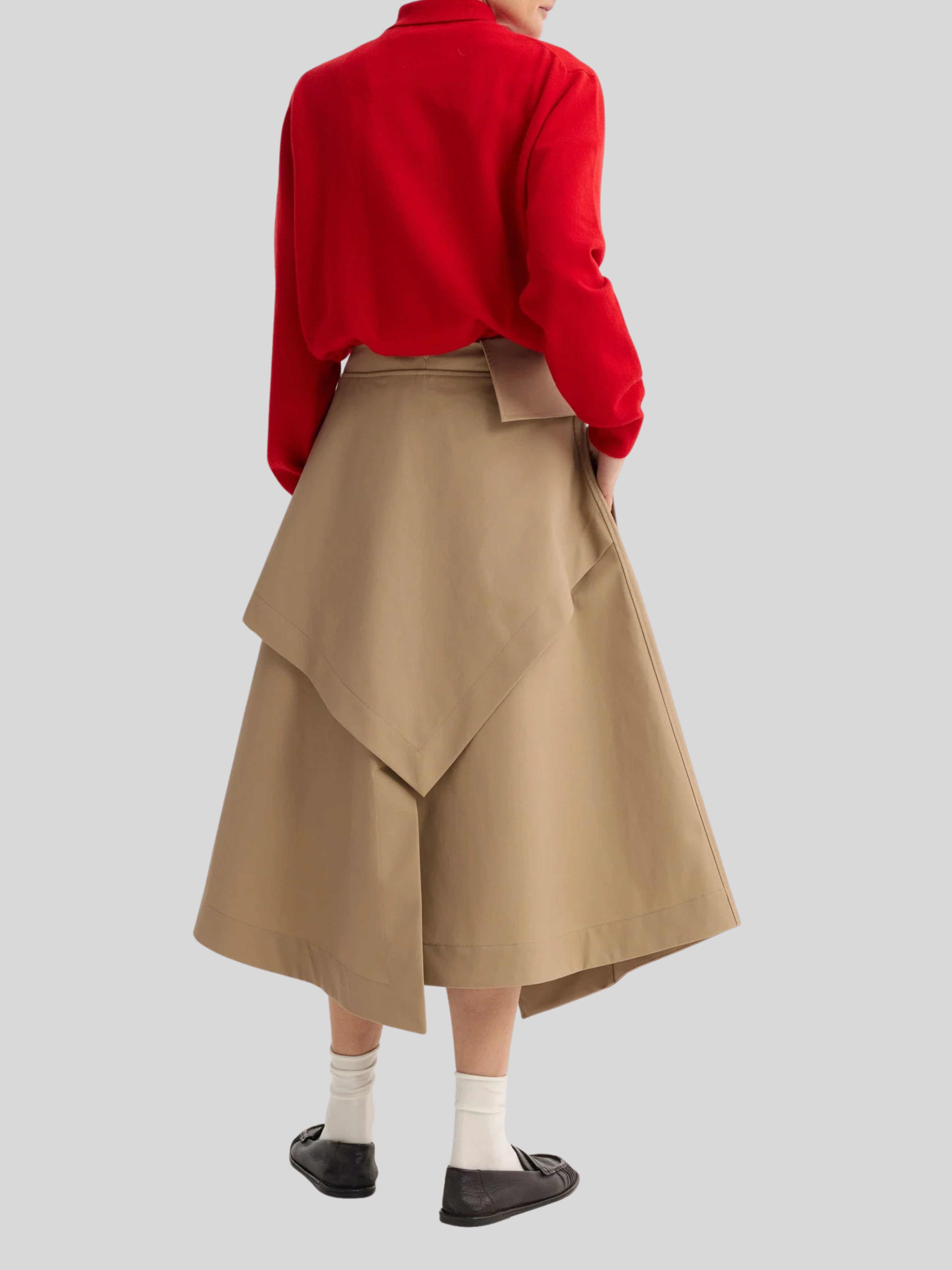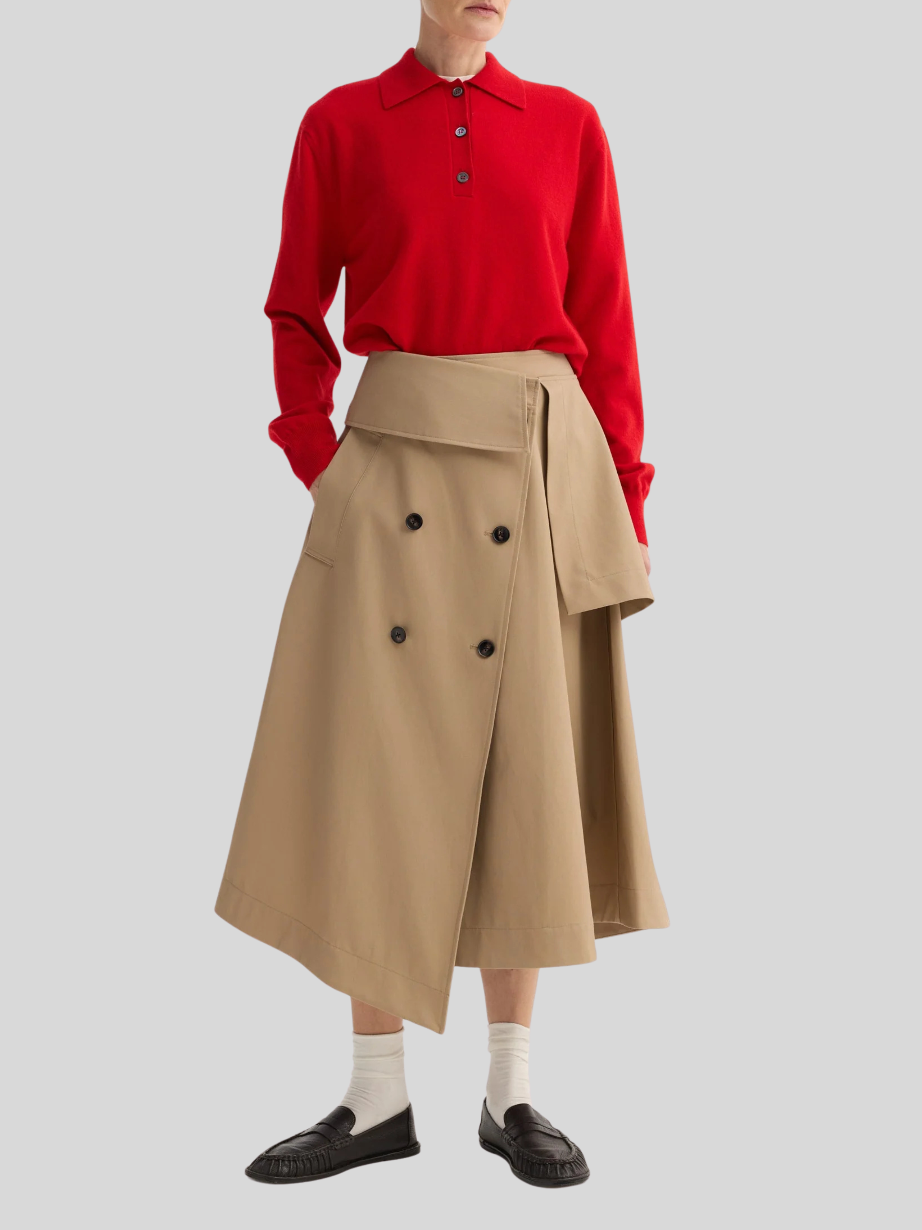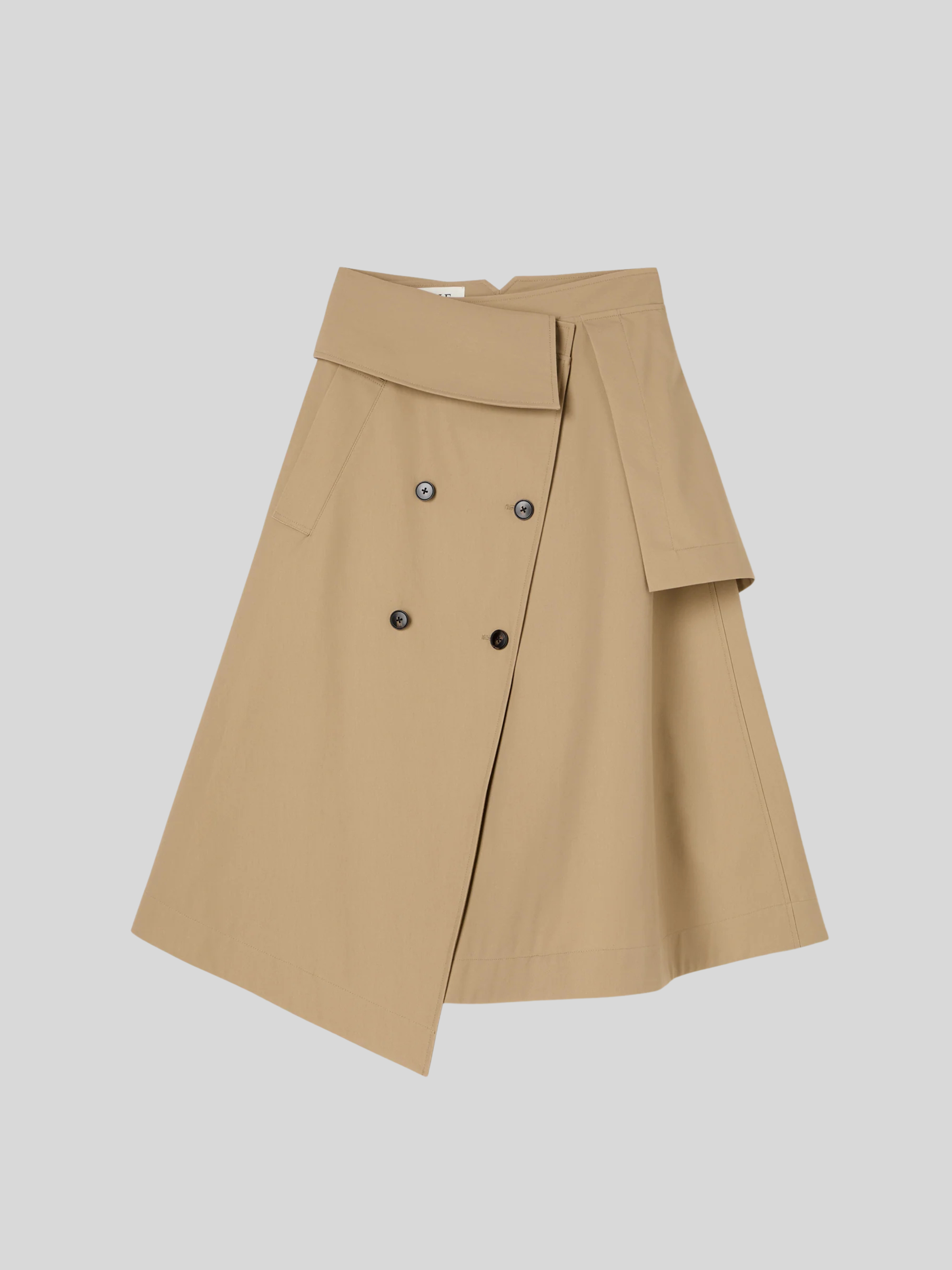 Crafted from Japanese cotton canvas, this skirt evokes the look of a trench coat wrapped at the waist. Finished with deconstructed tailoring and button details, and a single side-seam pocket.