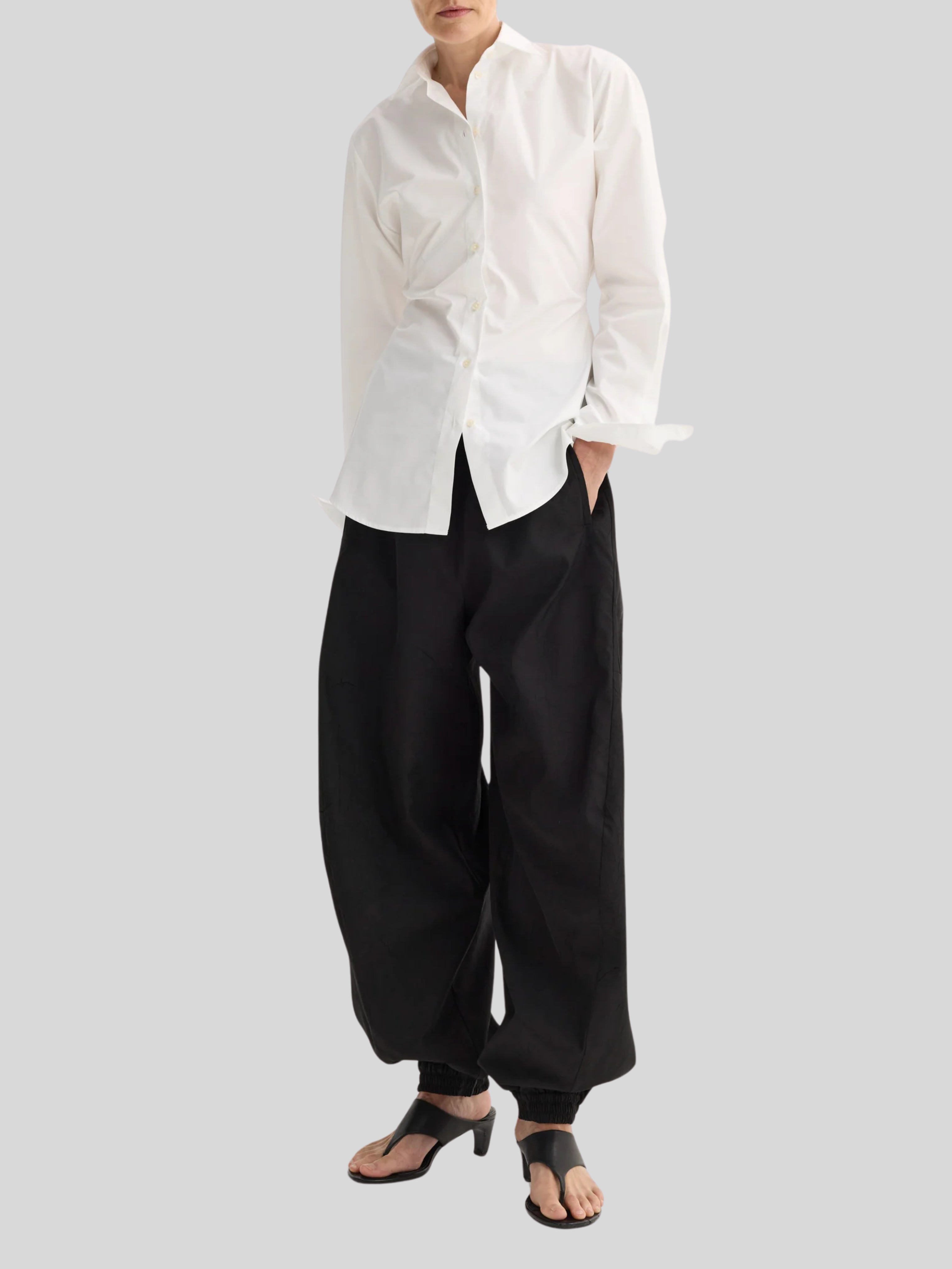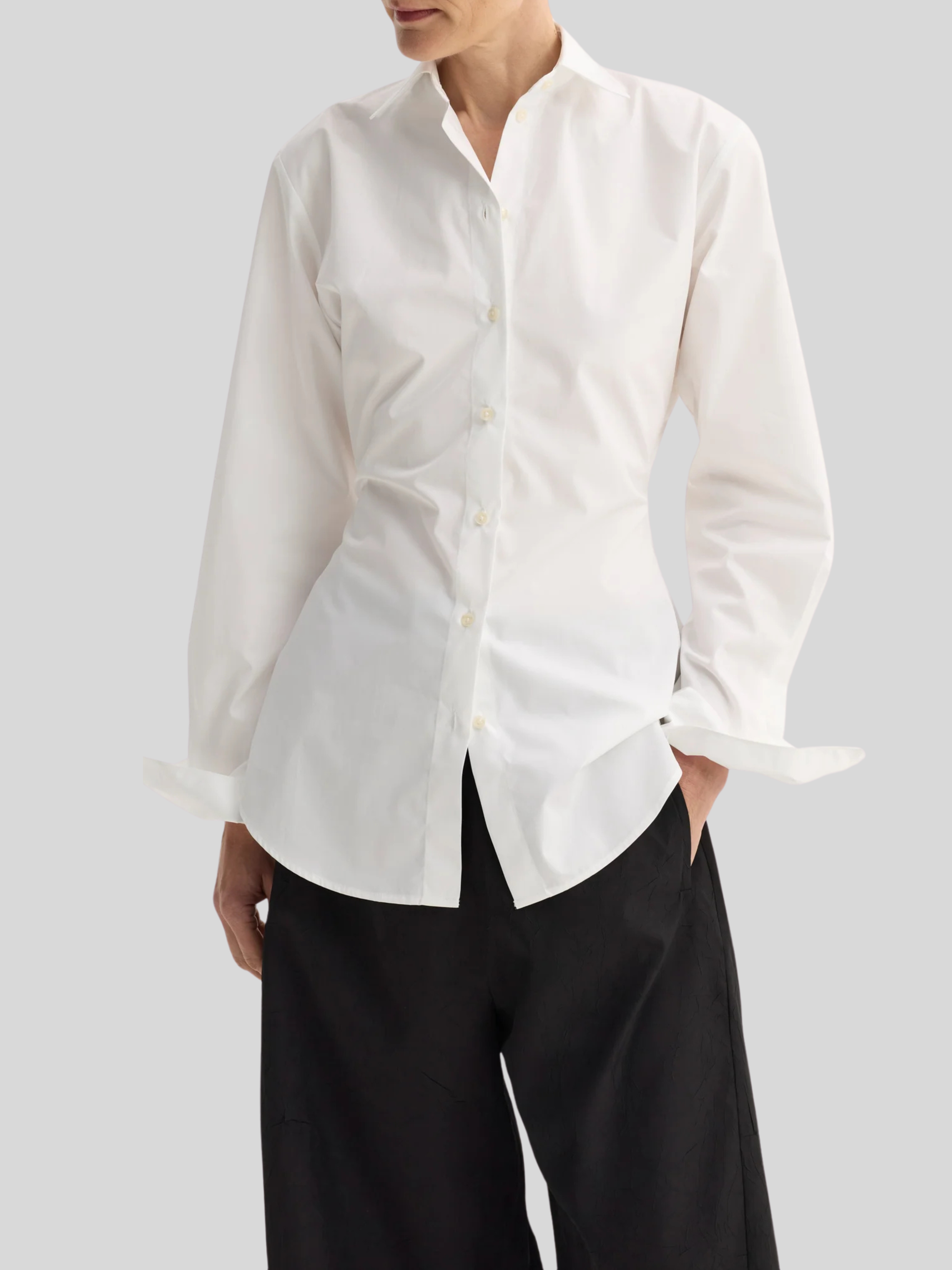 The shaped shirt is designed with a relaxed hourglass silhouette and crafted out of a light and soft cotton poplin. A perfect item for every day wear.