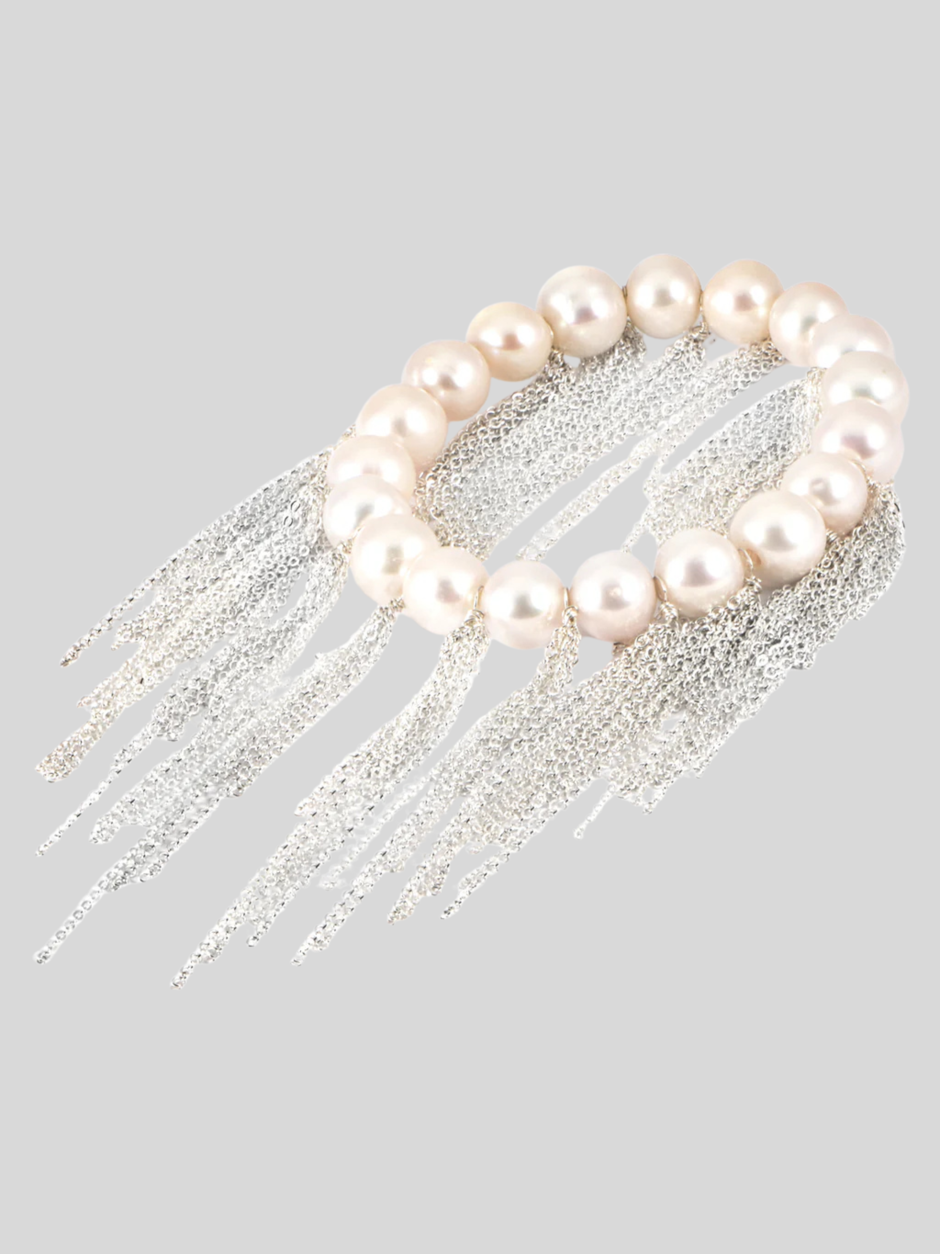 Elevate your ensemble with this exquisite Fringe Bracelet featuring lustrous white freshwater pearls. Delicately crafted, its cascading fringe design offers graceful movement and timeless elegance. Perfect for adding a refined touch to both everyday looks and special occasions.