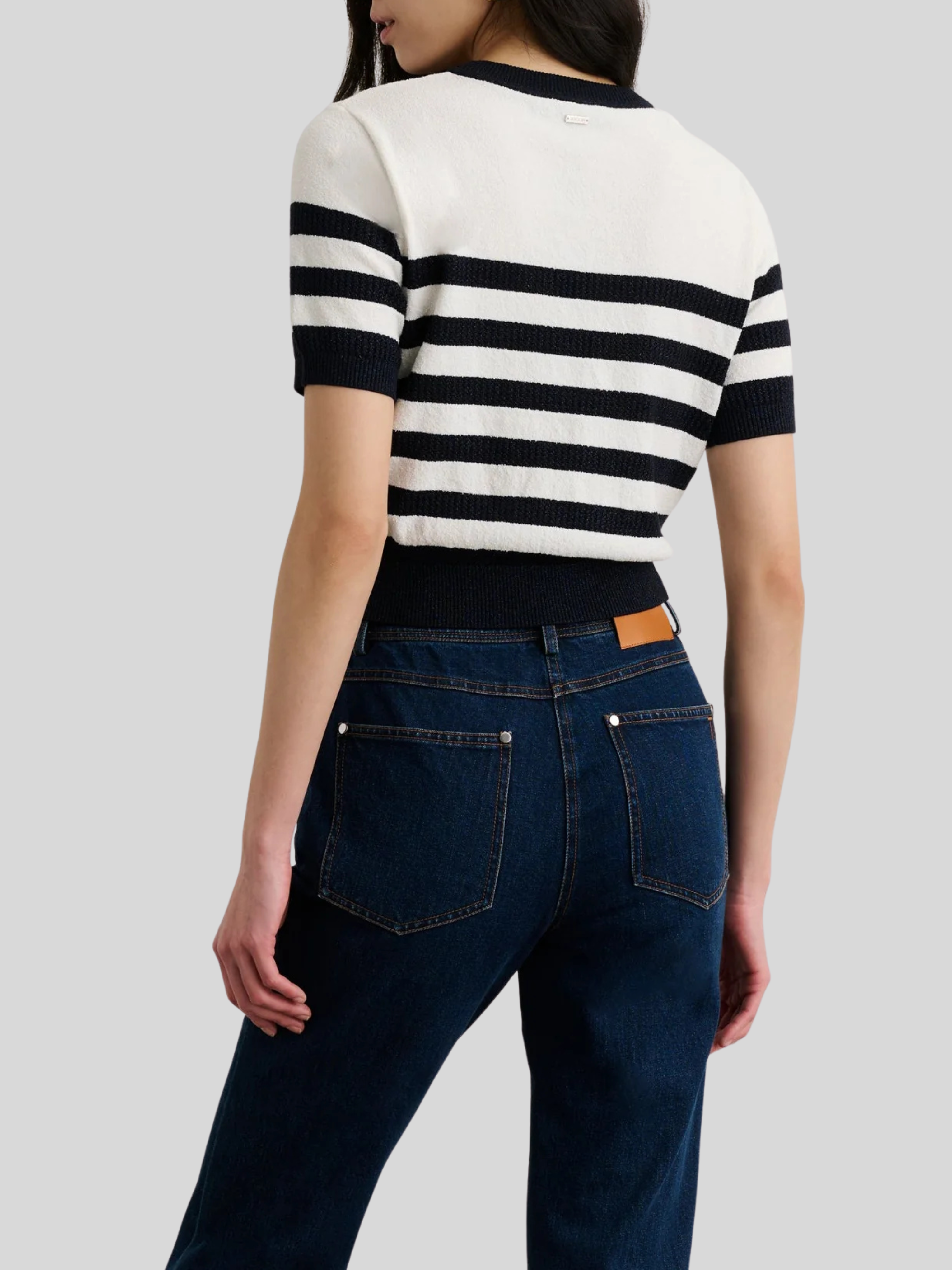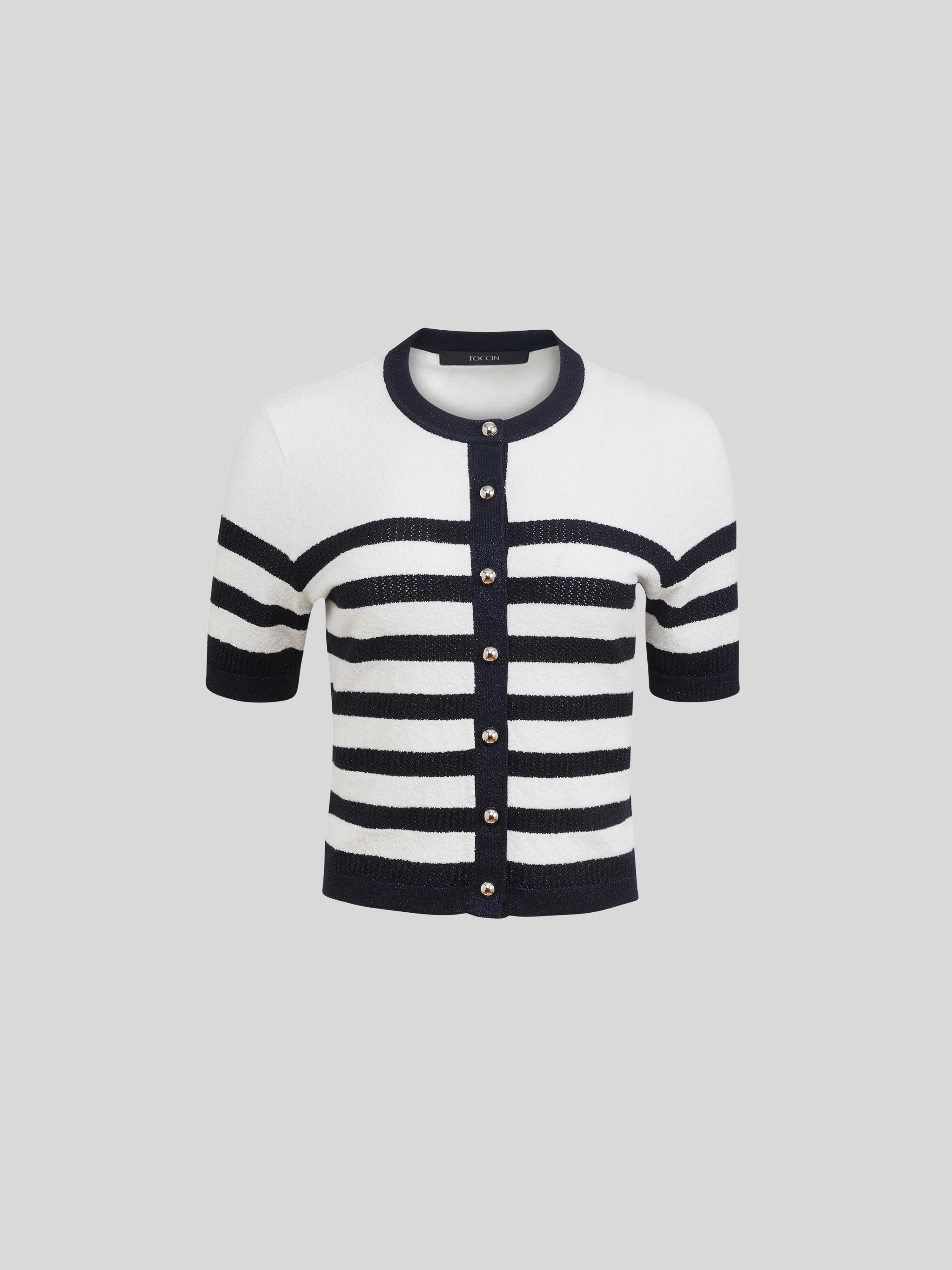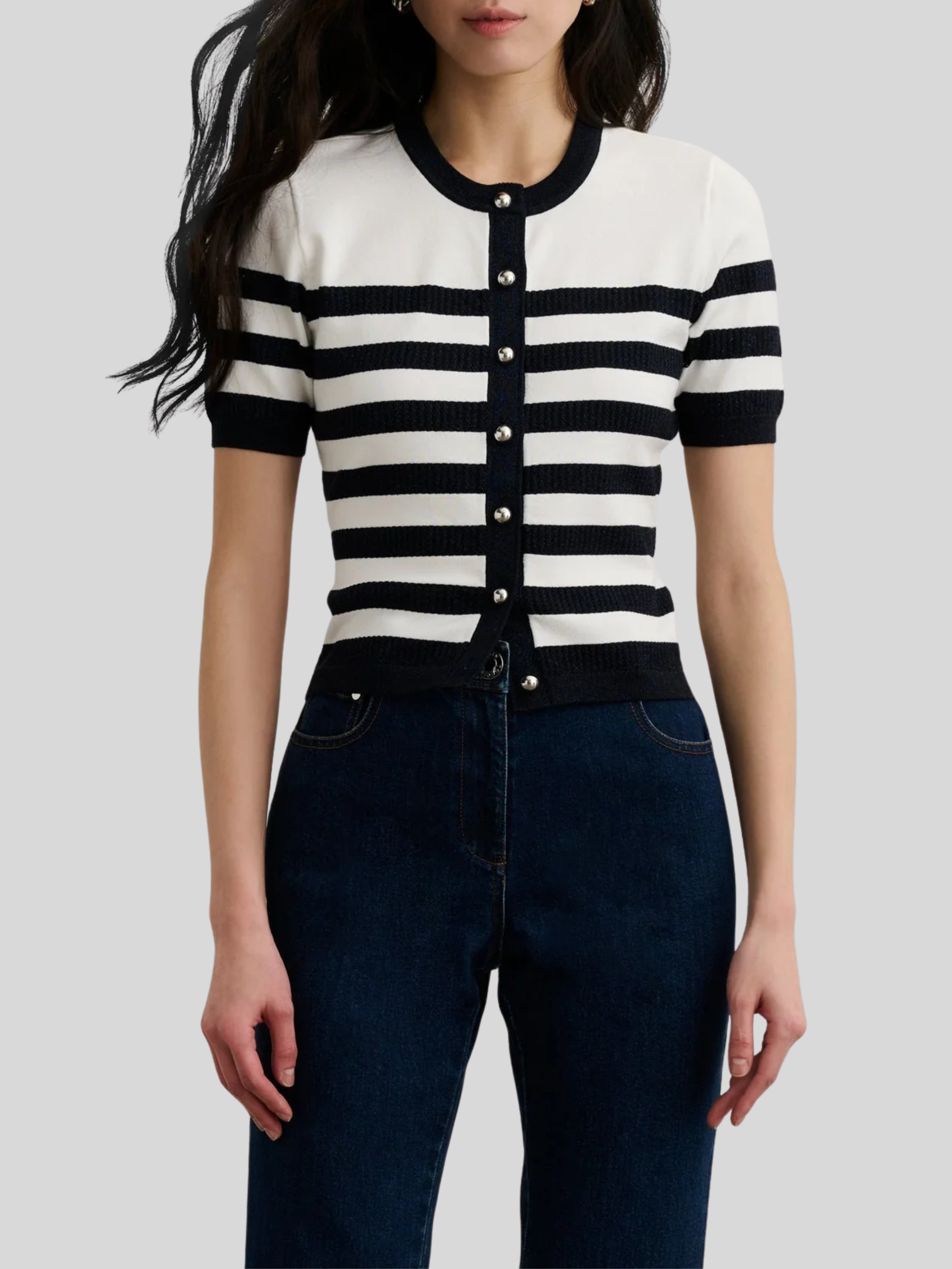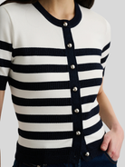 The Oakley Short Sleeve Cardigan is a short sleeve crewneck cardigan designed for easy layering and a polished finish. Wear it buttoned up with high-rise trousers for an elevated everyday look, or style it open over a fitted tank with denim for effortless off-duty wear.