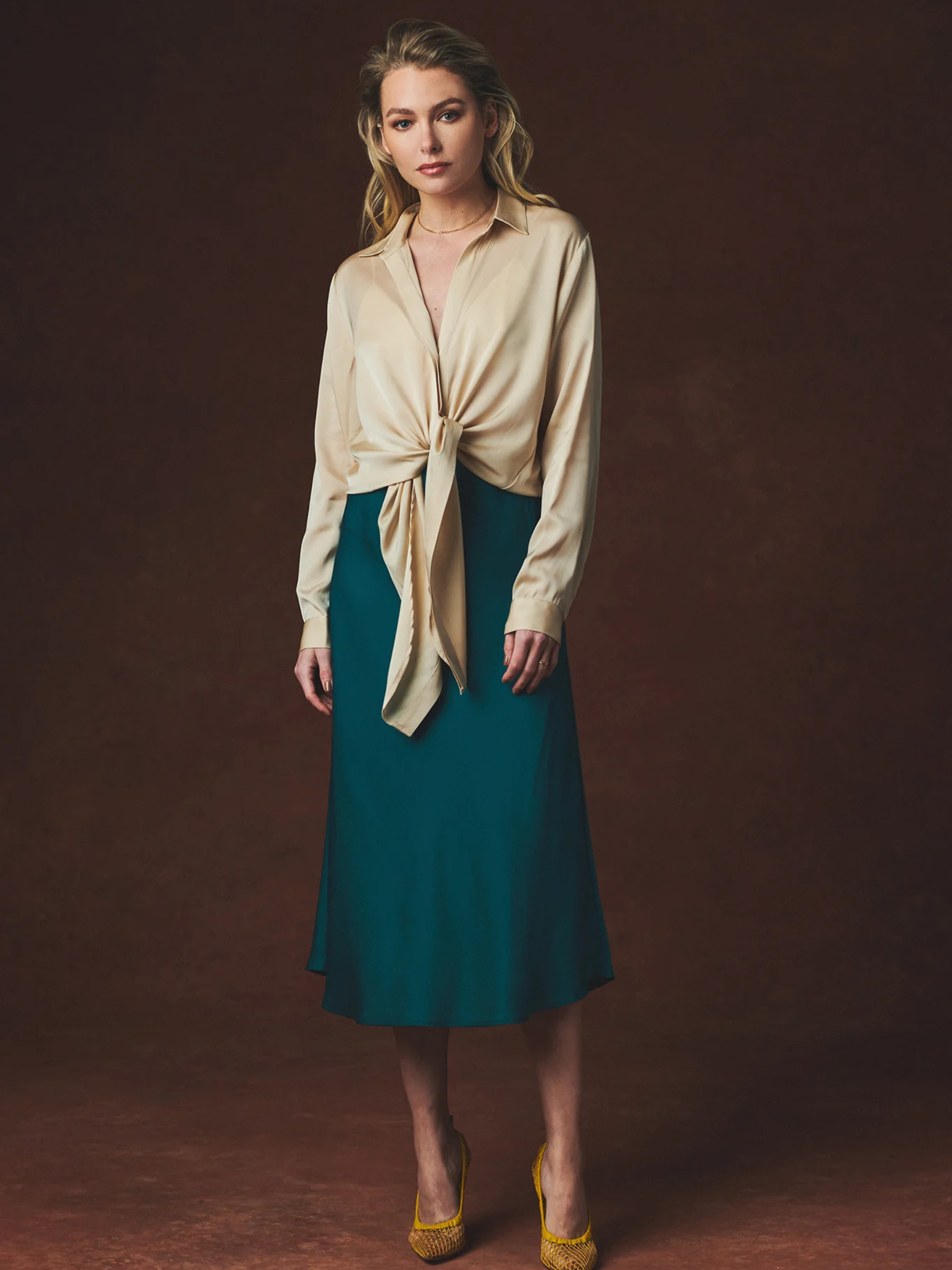 Indulge in luxury with our Chamonix Long Skirt in Icy Teal. Embrace the feeling of being draped in soft, flowy fabric, while turning heads with the captivating hue of icy teal. Perfect for adding a touch of sophistication to any outfit, this skirt is a must-have for any fashionista.