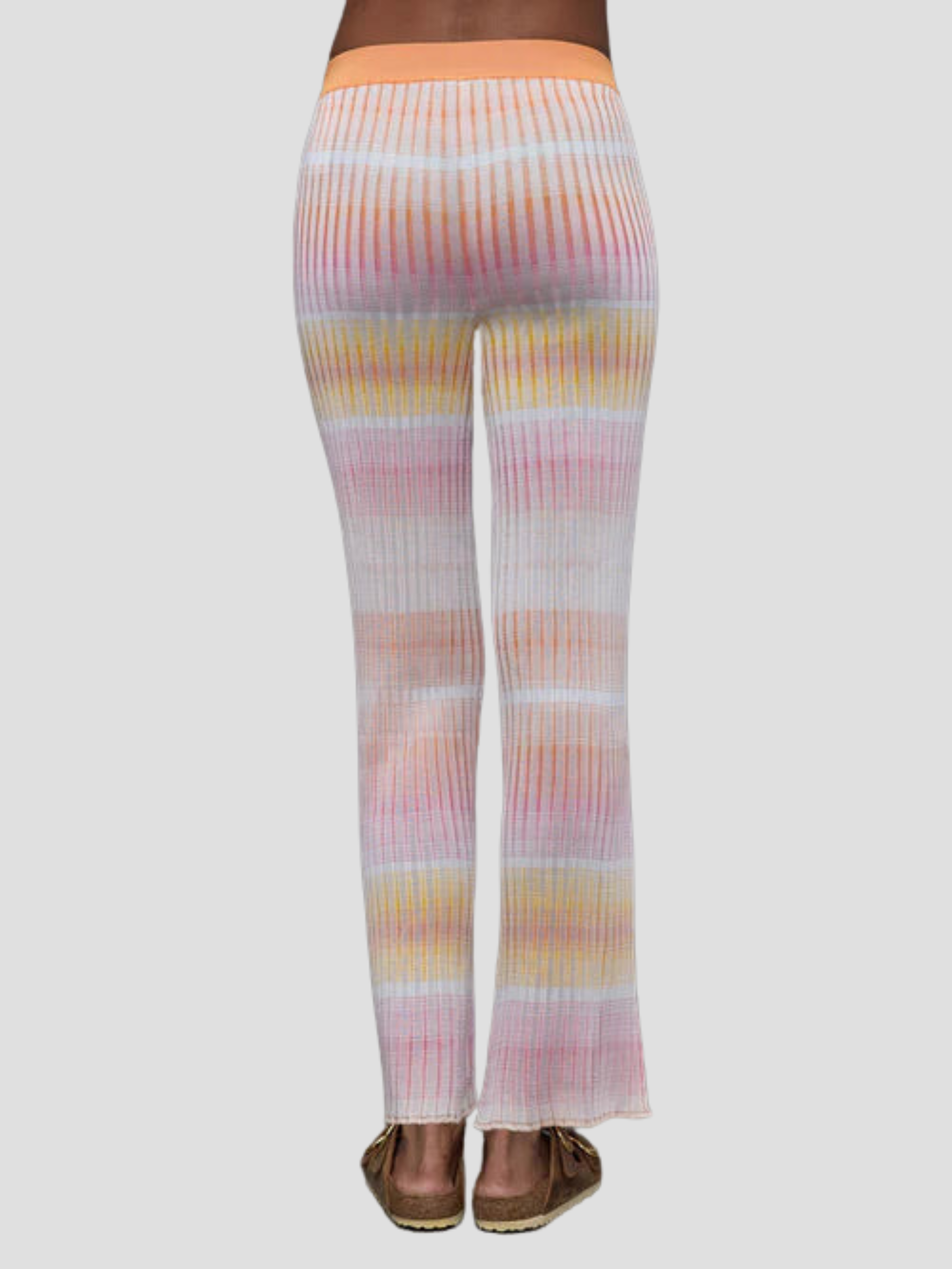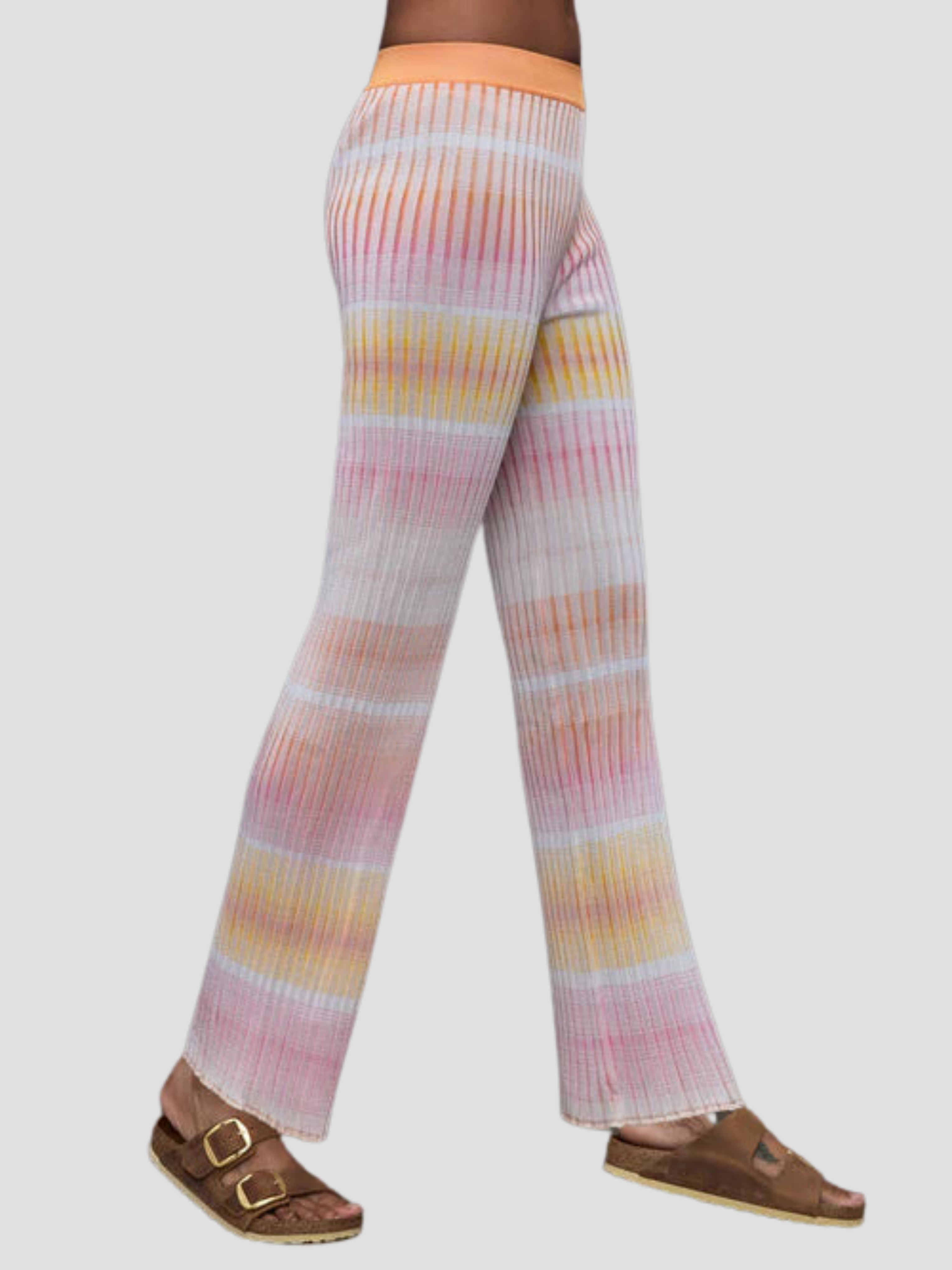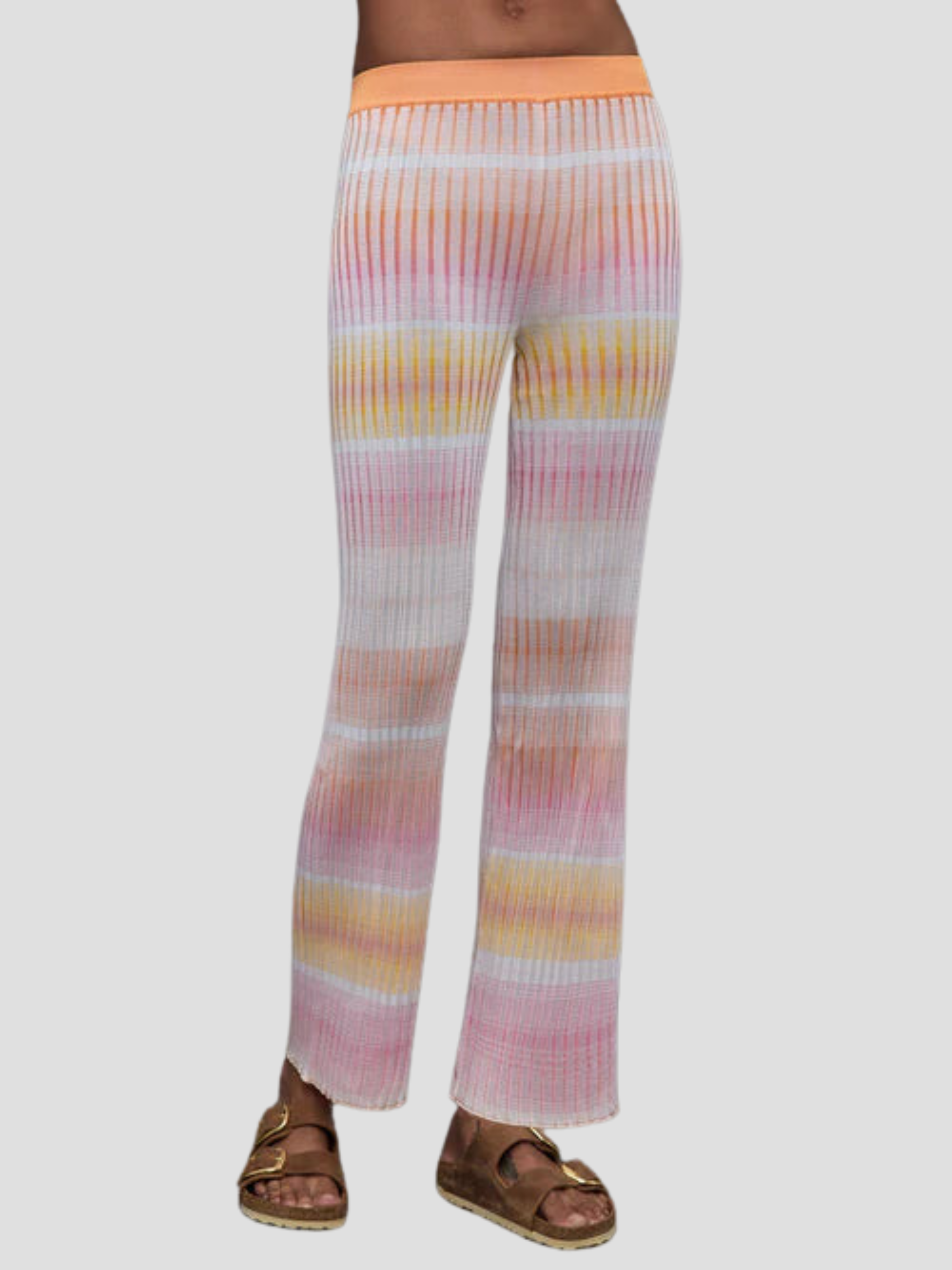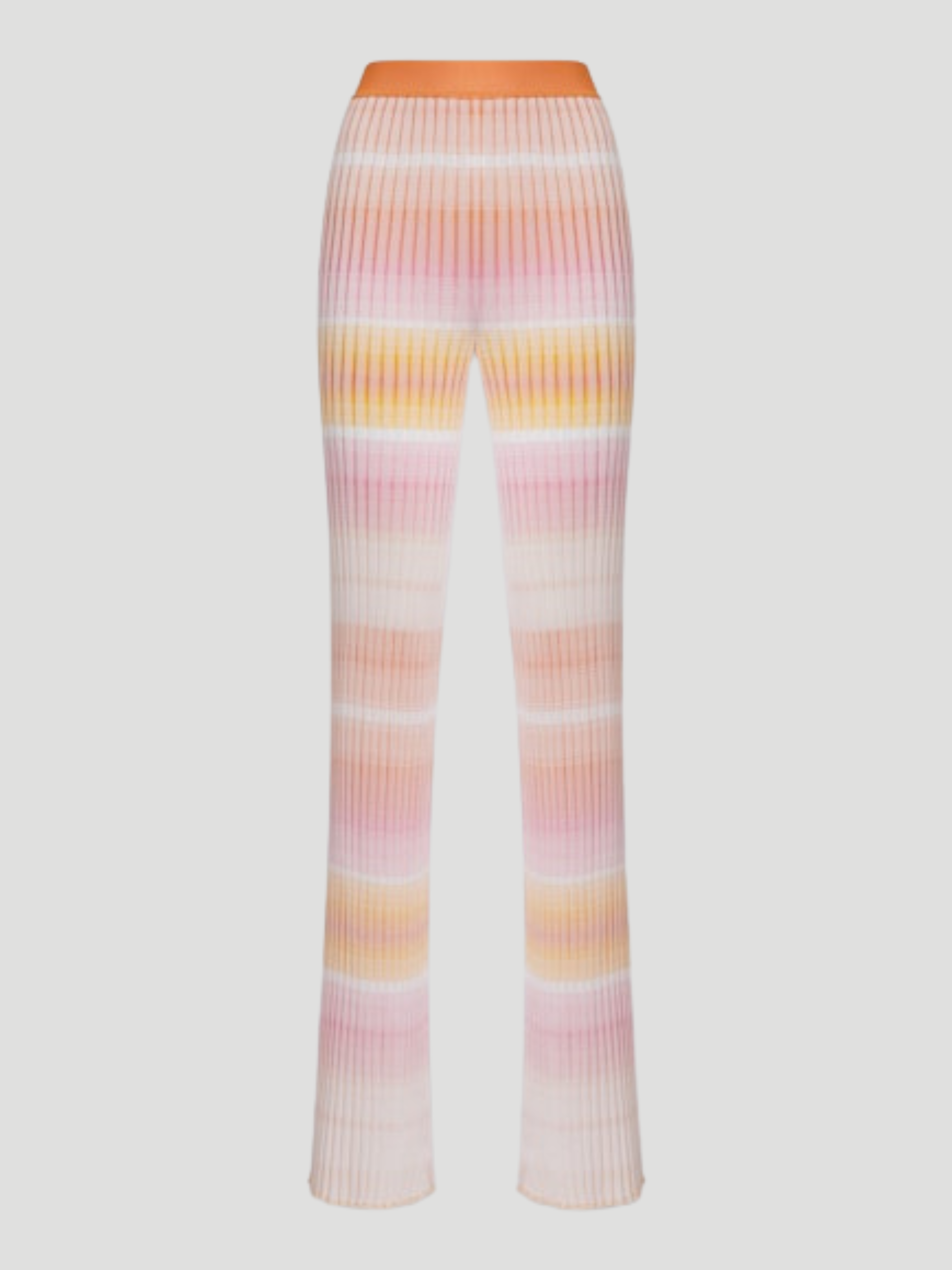A manifestation of sophistication and style, the women's straight trousers in pure ribbed viscose make an elegant fashion statement. Featuring sophisticated vanisé knit and a contrasting elastic waistband, these trousers are the perfect blend of attention to detail and innovation, reflecting the distinctive Missoni style.