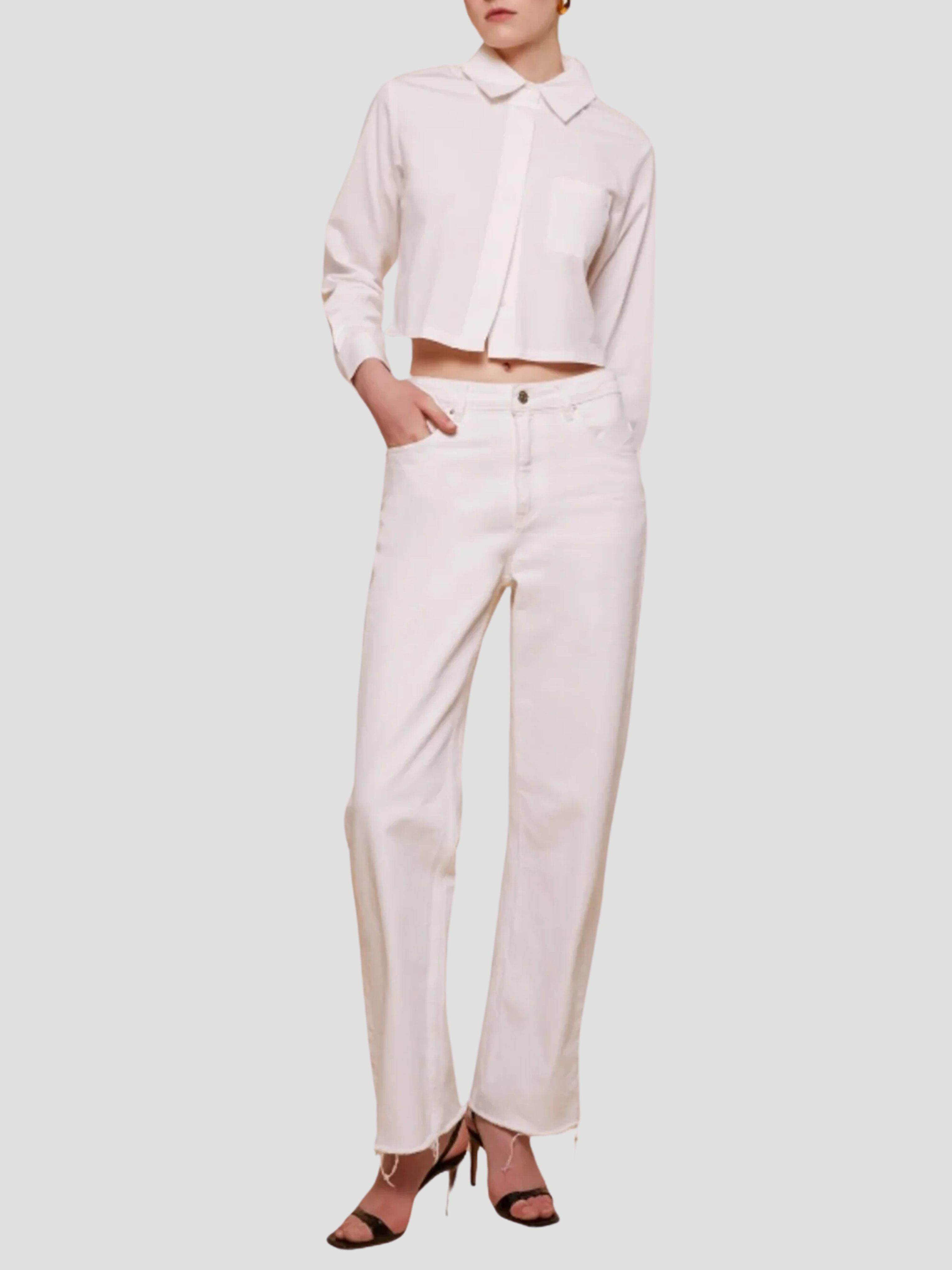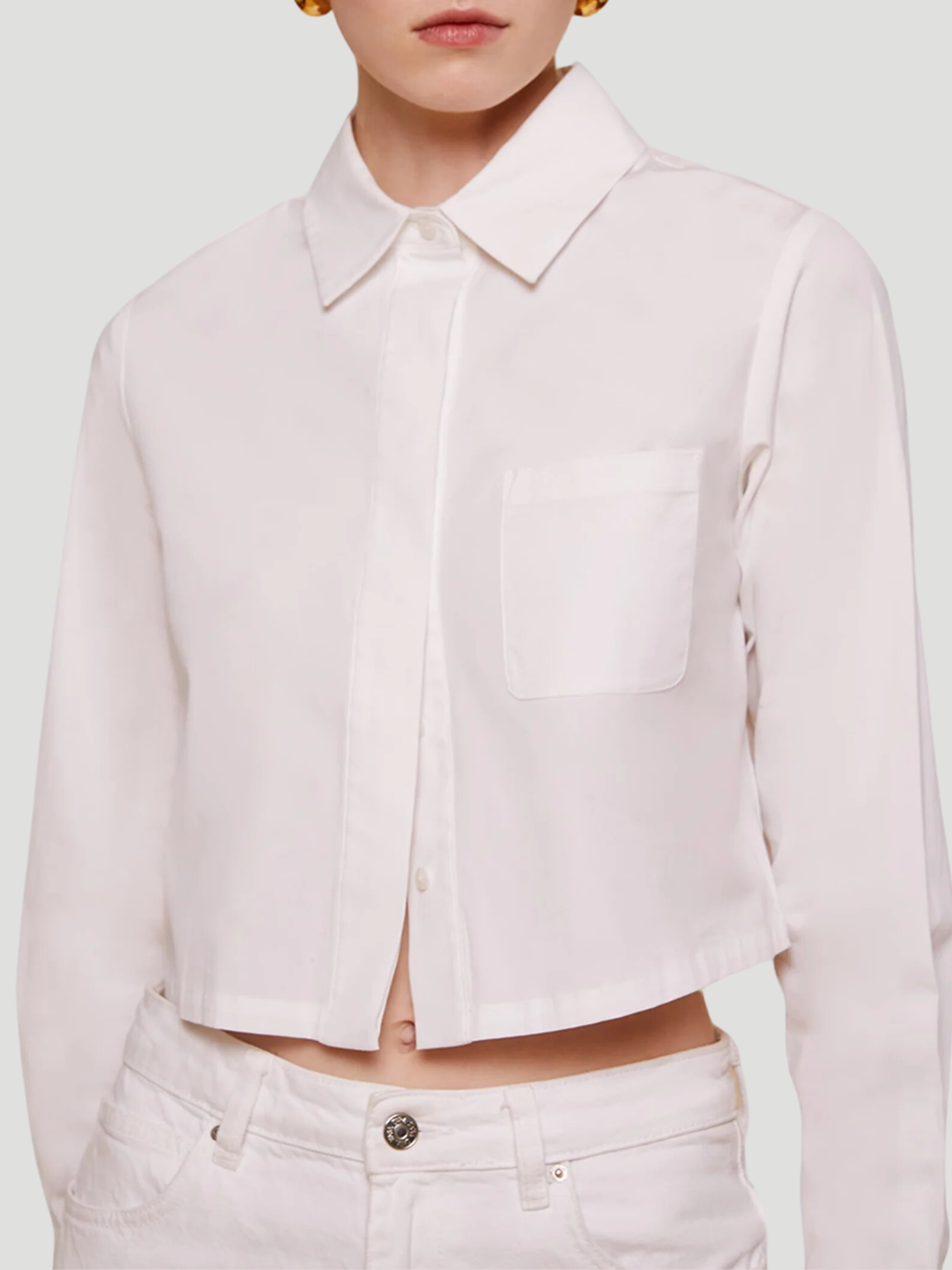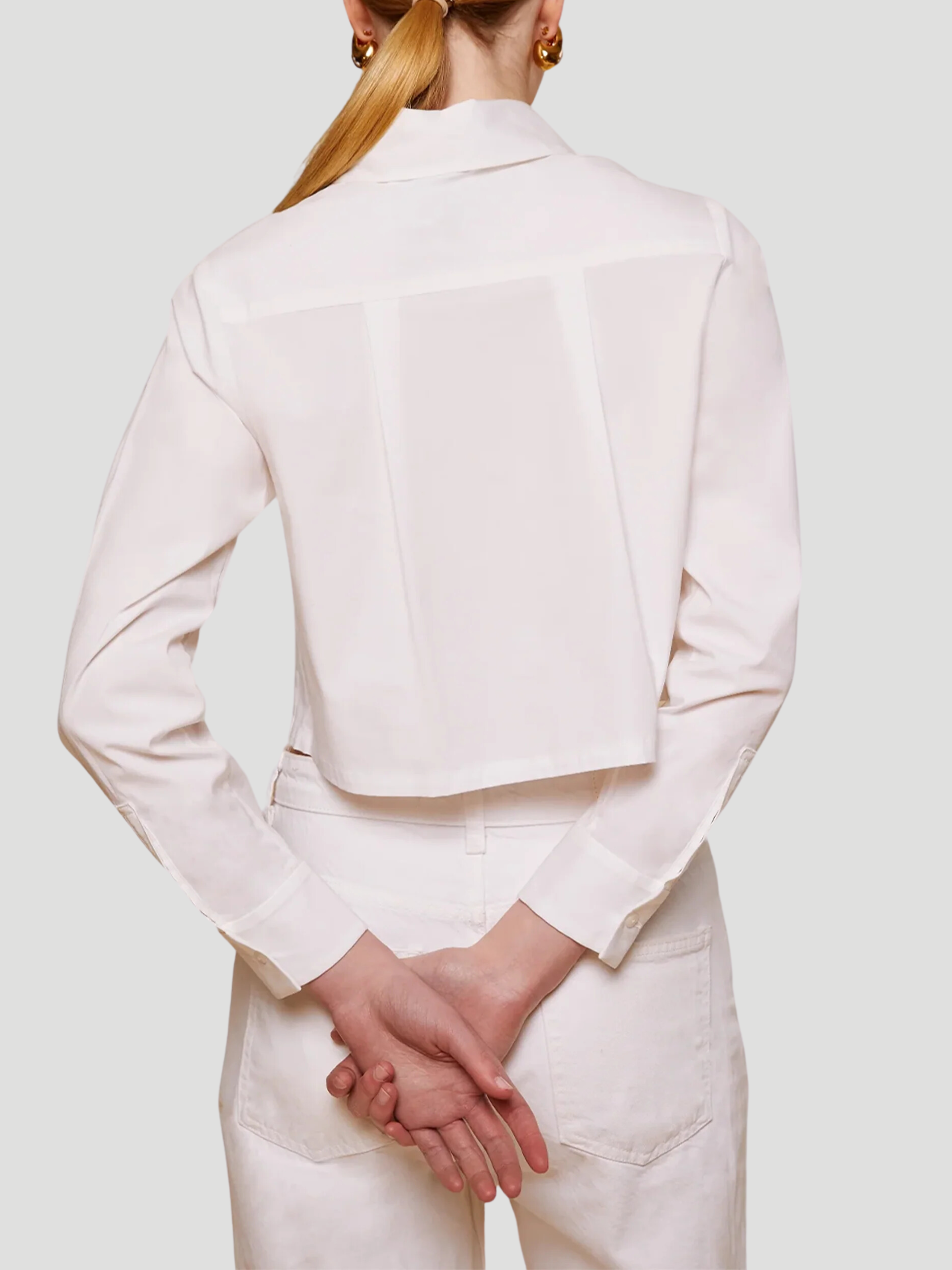 Introducing the Toccin Jilly Cropped Shirt - a modern twist on a classic white blouse. Made from soft cotton, this cropped button down offers a fresh and stylish approach to a timeless wardrobe essential. Upgrade your look with Toccin.