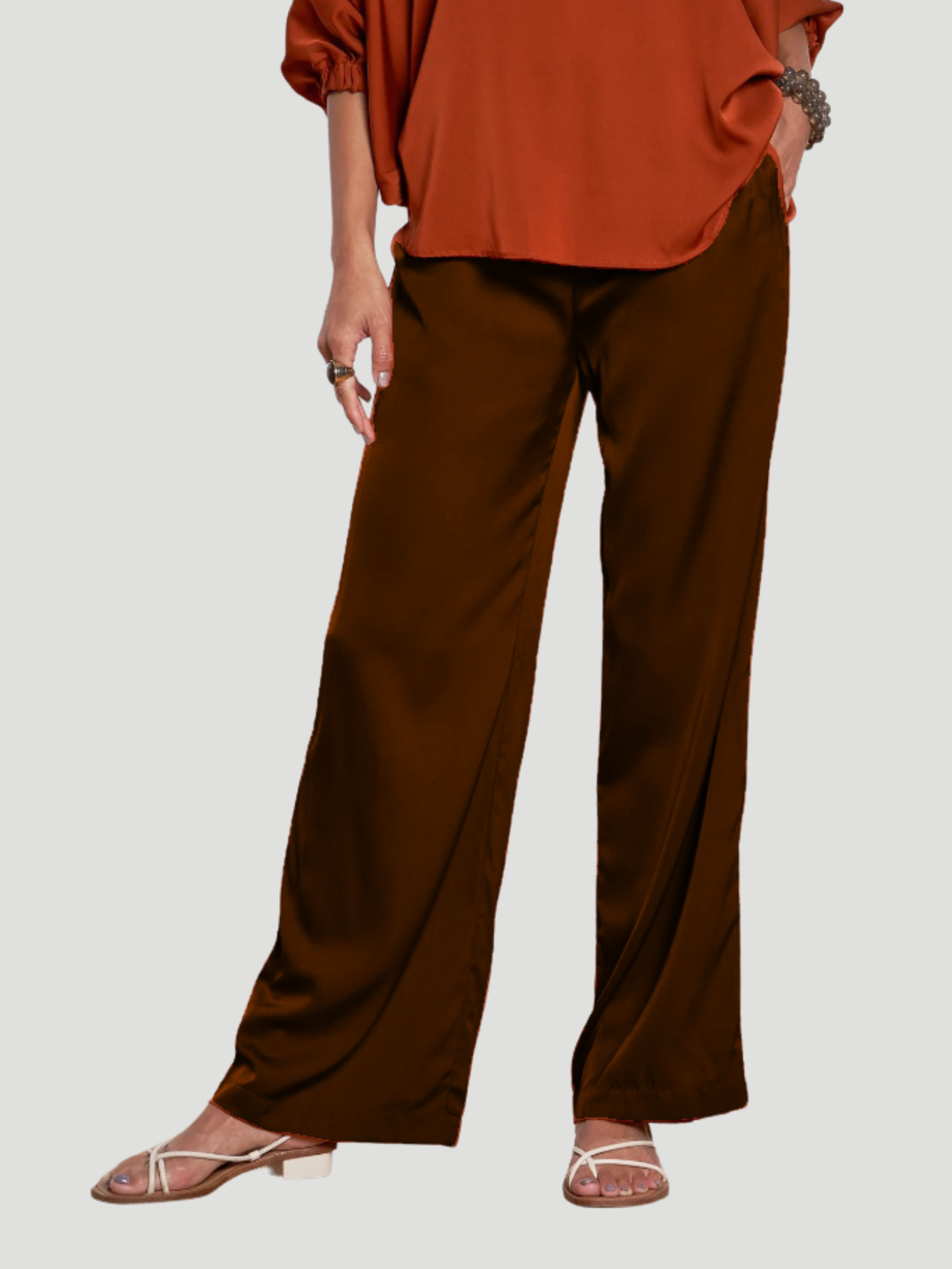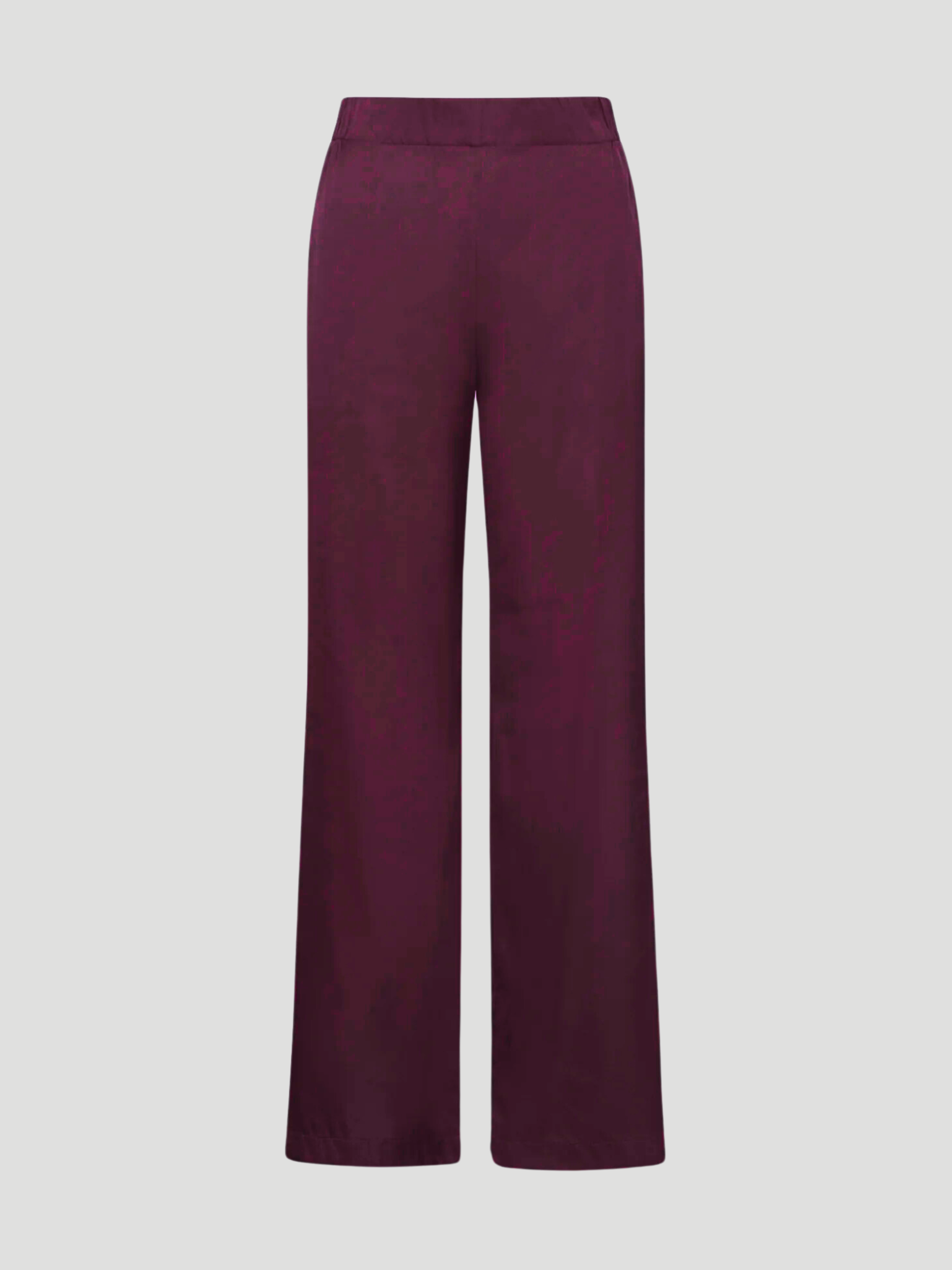 Engineered for expert style and comfort, the Amalfi Pants in Bordeaux from Nouvelle are a must-have for any fashionable wardrobe. With a high-waisted, flat-front design, these pants elongate the legs and offer a flattering silhouette. The elastic waistband in the back ensures a perfect fit without any hassle. Elevate your wide-leg game with the Amalfi Pants.