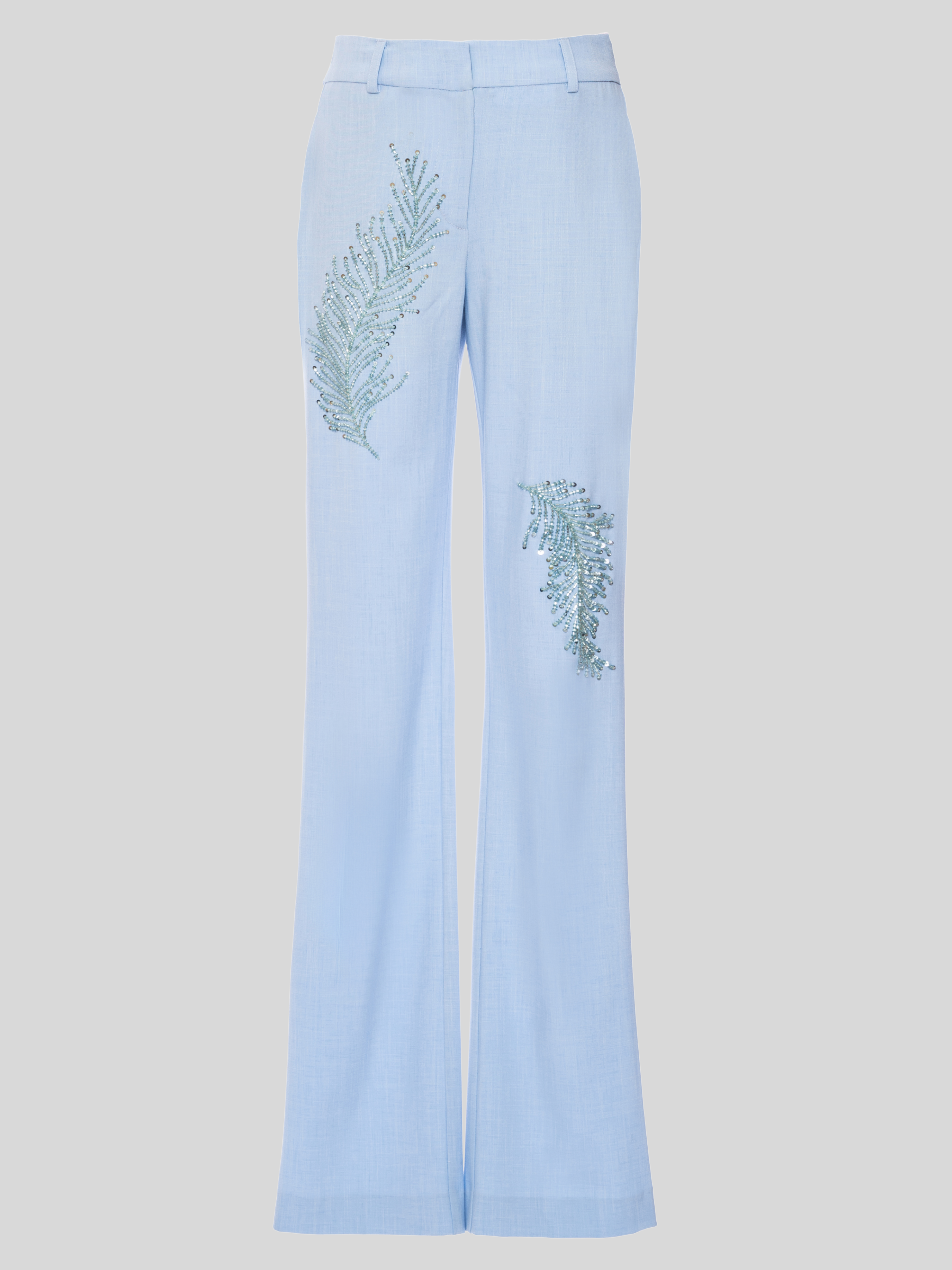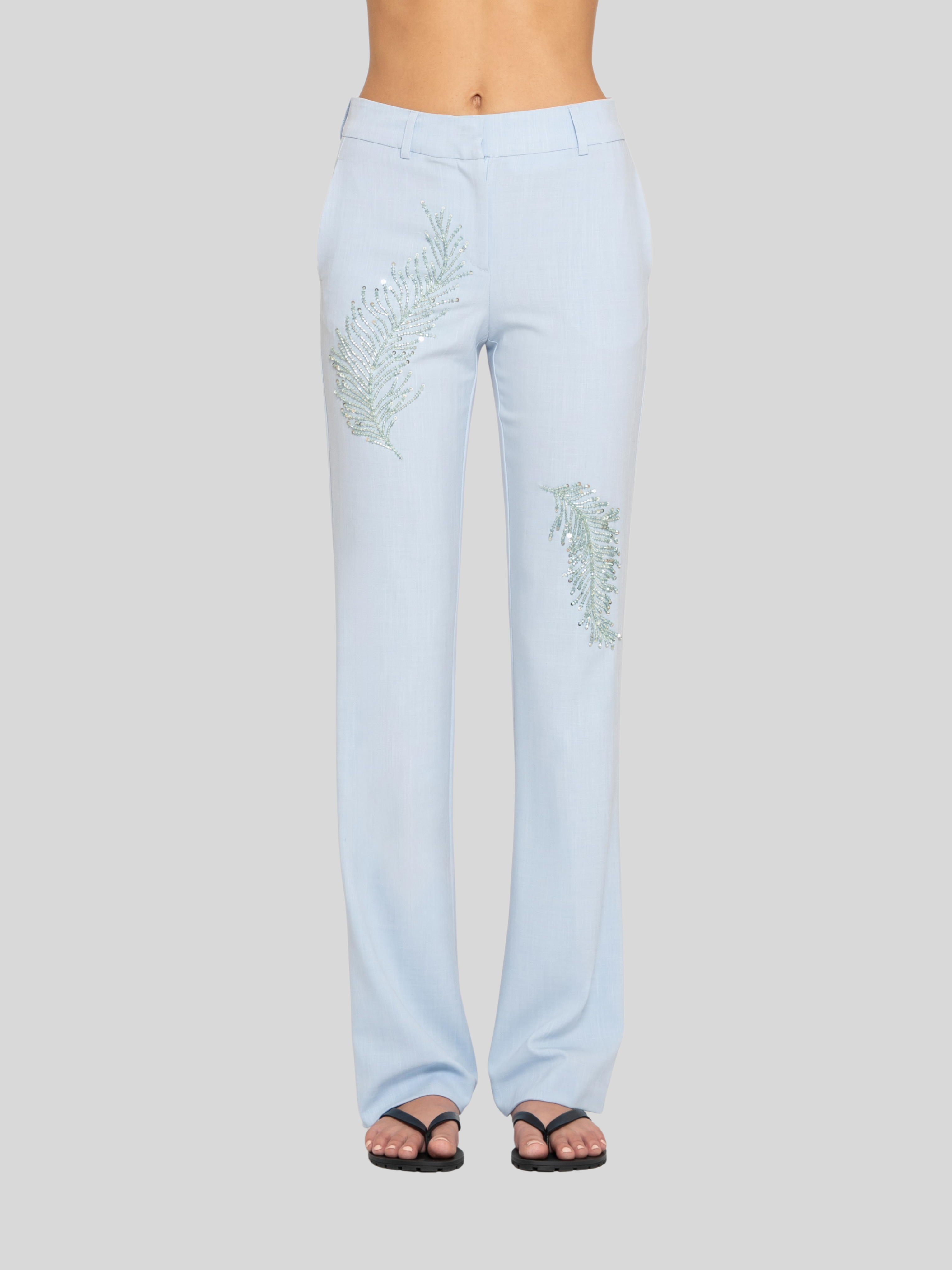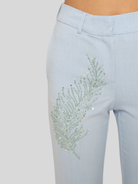 • SLIM FIT PANT WITH FLARED BOTTOM AND CRYSTALS HANDMANDE EMBROIDERY