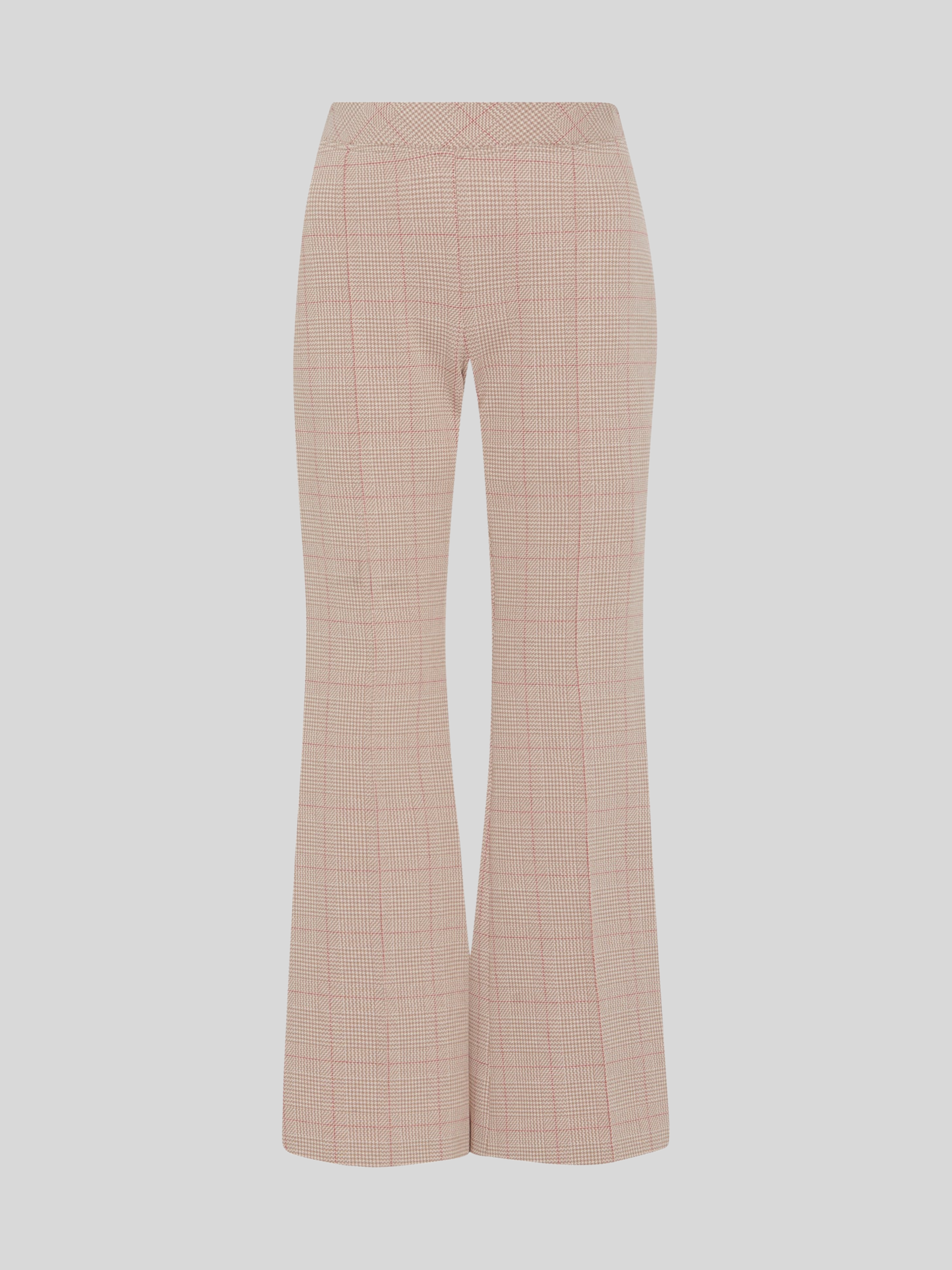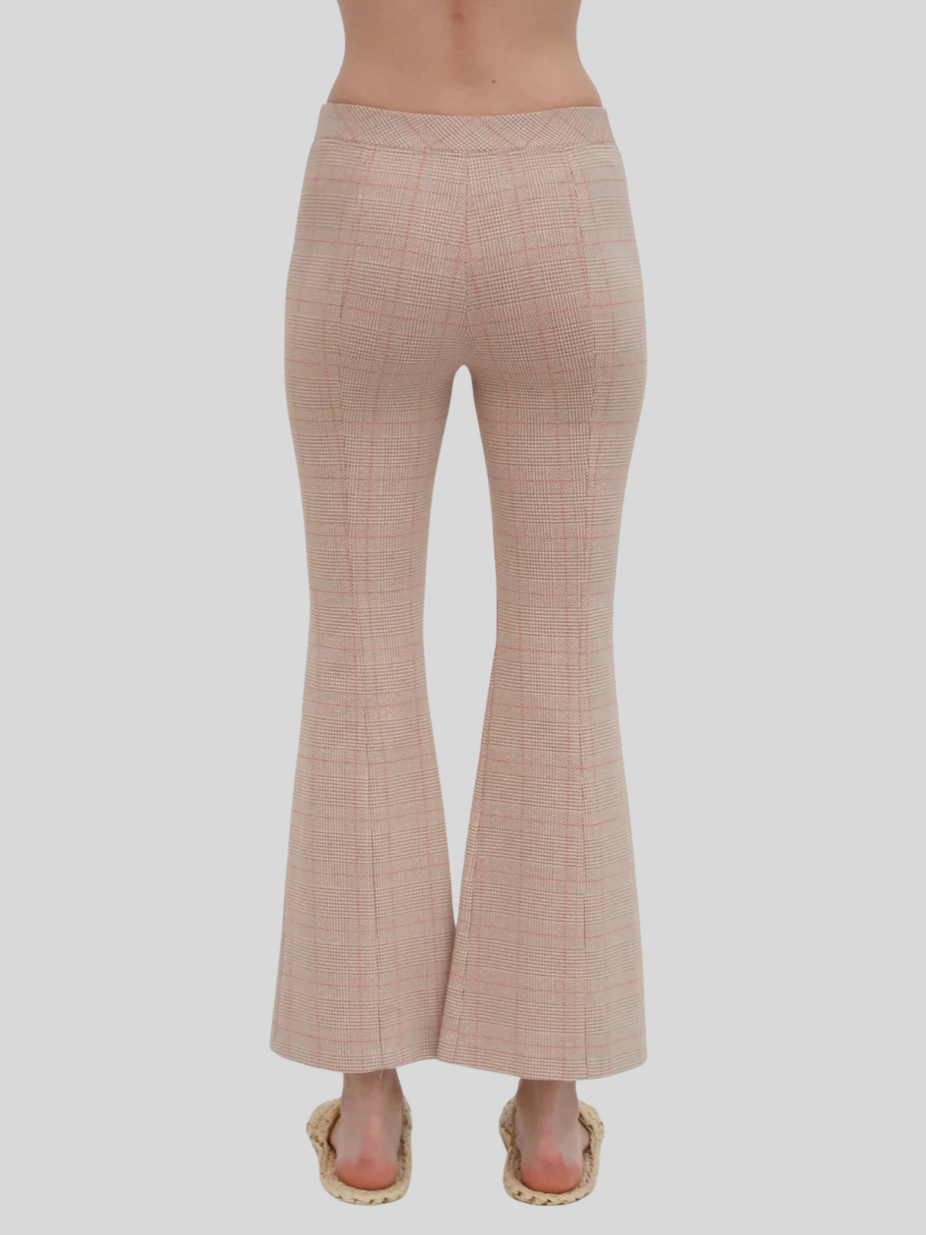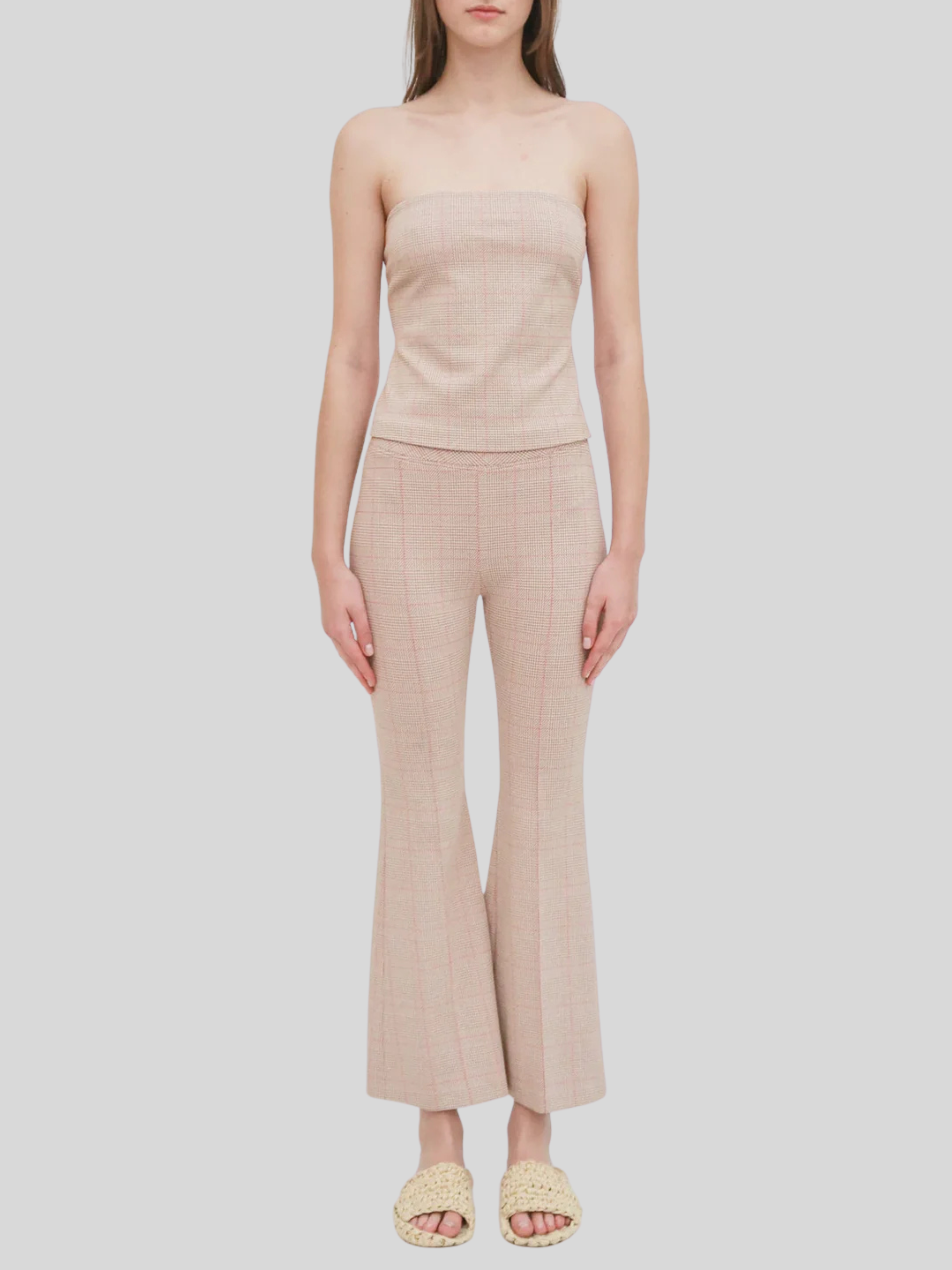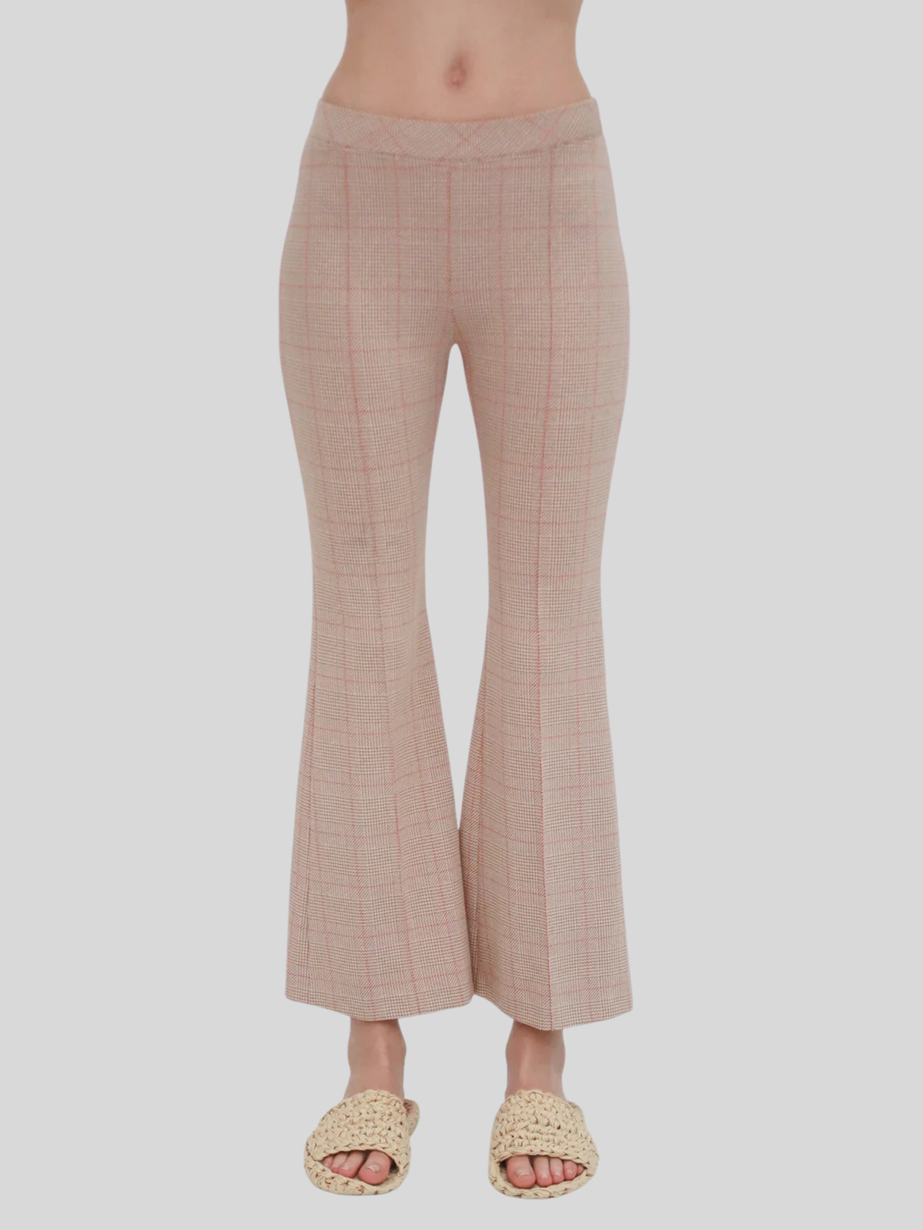 Crafted in the seasonal Prince of Wales Plaid Interlock Jacquard, this signature pant is designed to flatter the body with a mid-rise and flared leg. Rosetta Getty's special fabric and the elasticized waist impart ease to the cropped silhouette.
