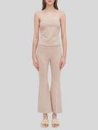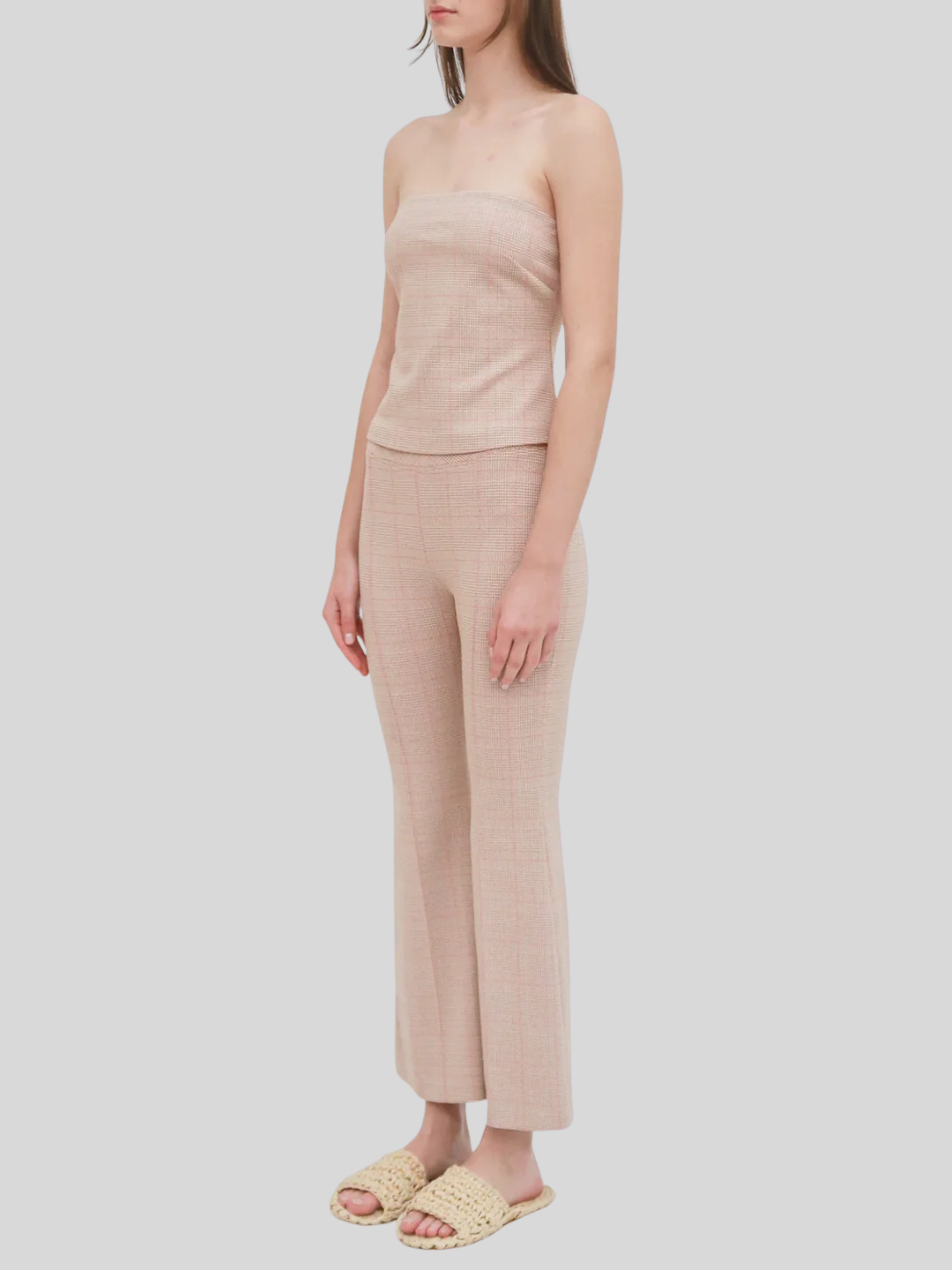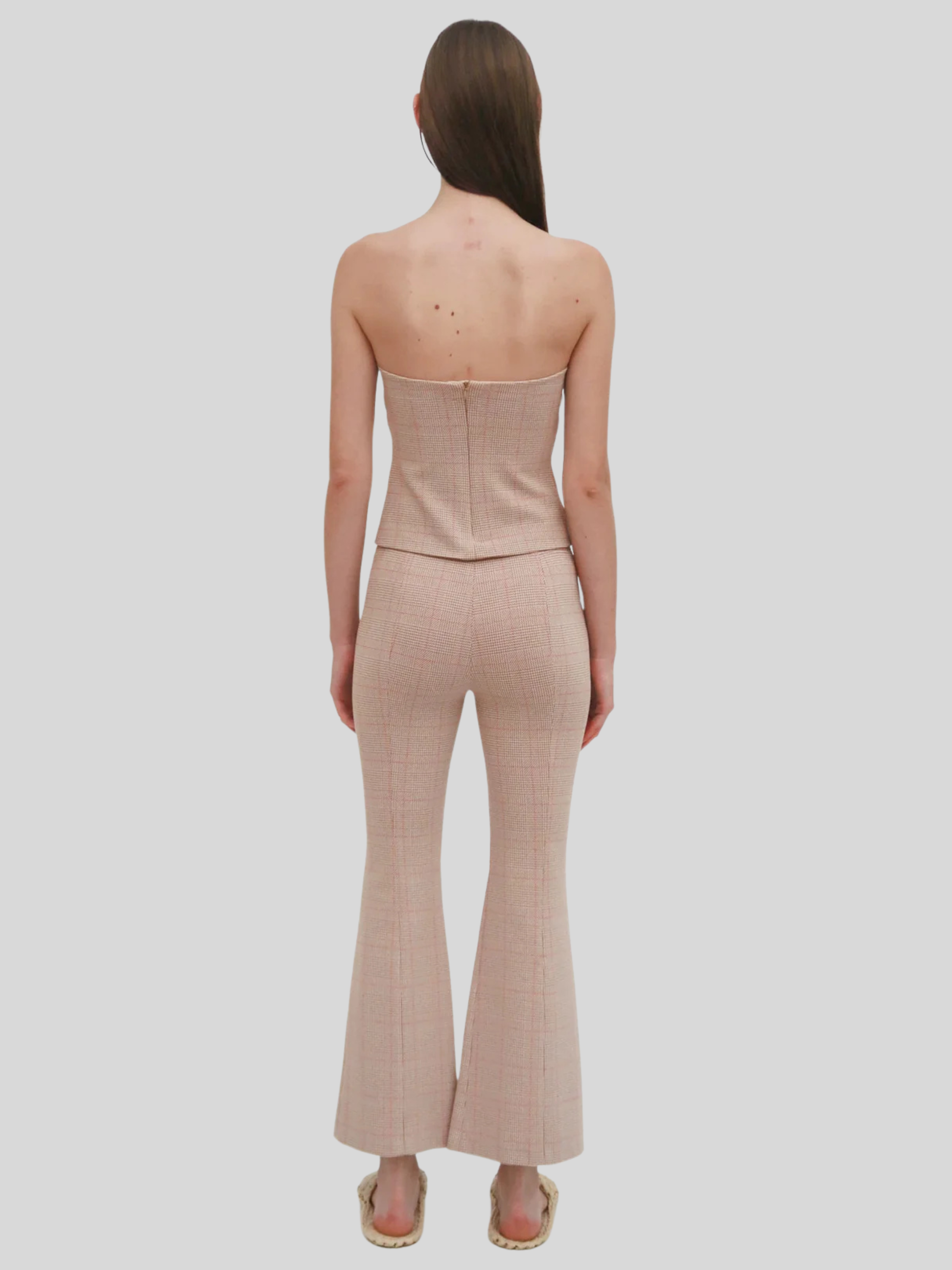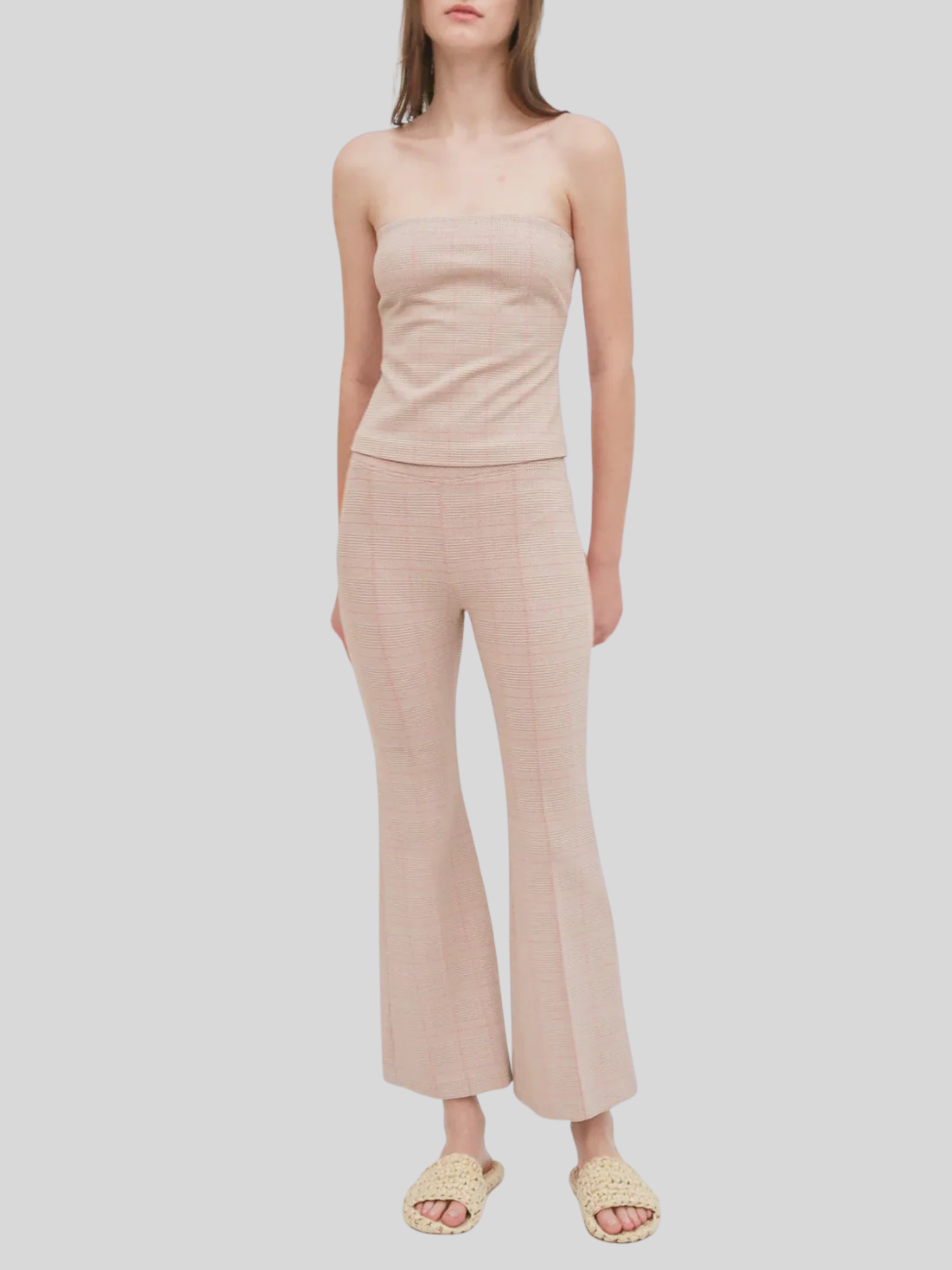 Crafted in the seasonal Prince of Wales Plaid Interlock Jacquard, this signature pant is designed to flatter the body with a mid-rise and flared leg. Rosetta Getty's special fabric and the elasticized waist impart ease to the cropped silhouette.