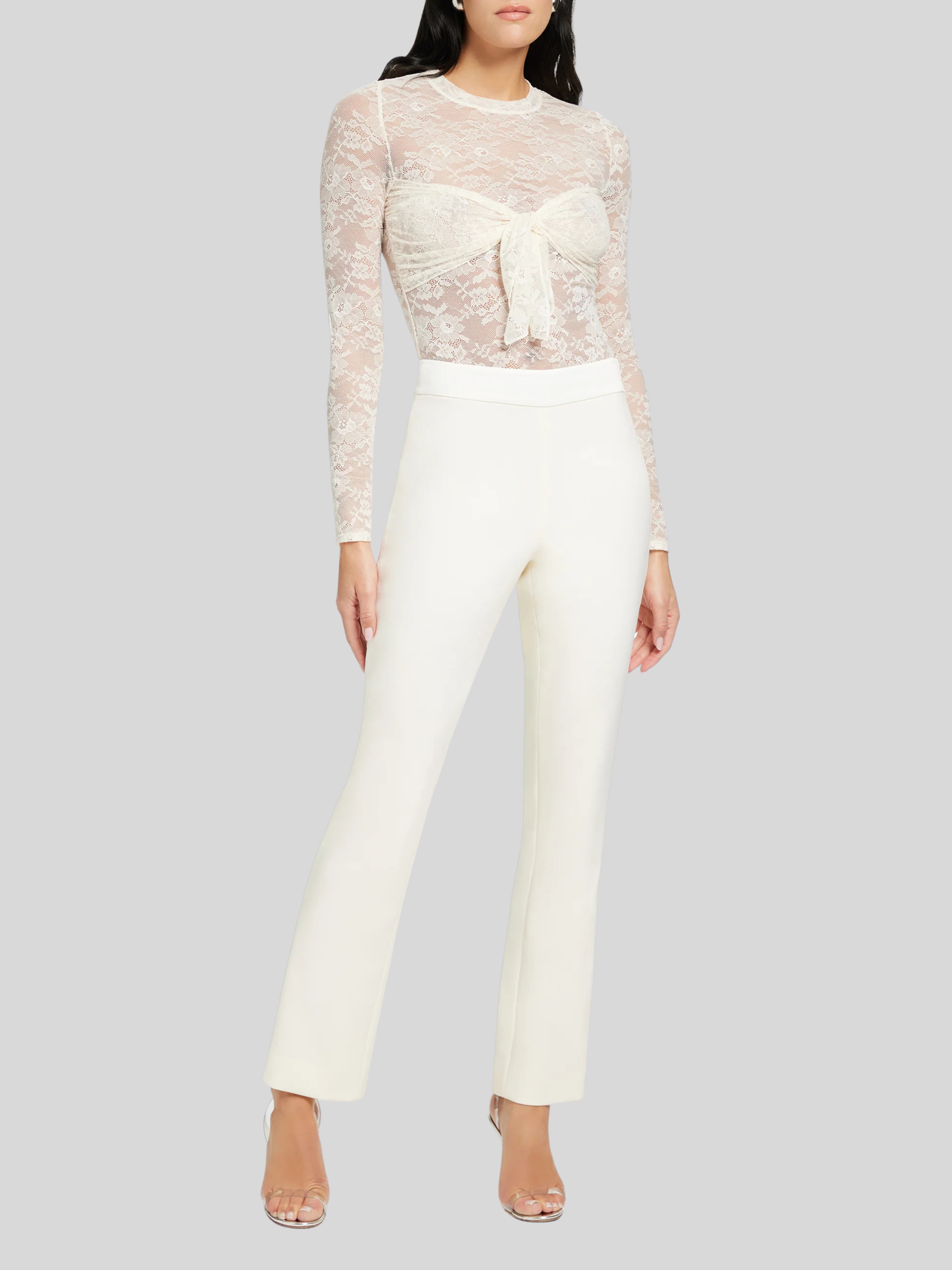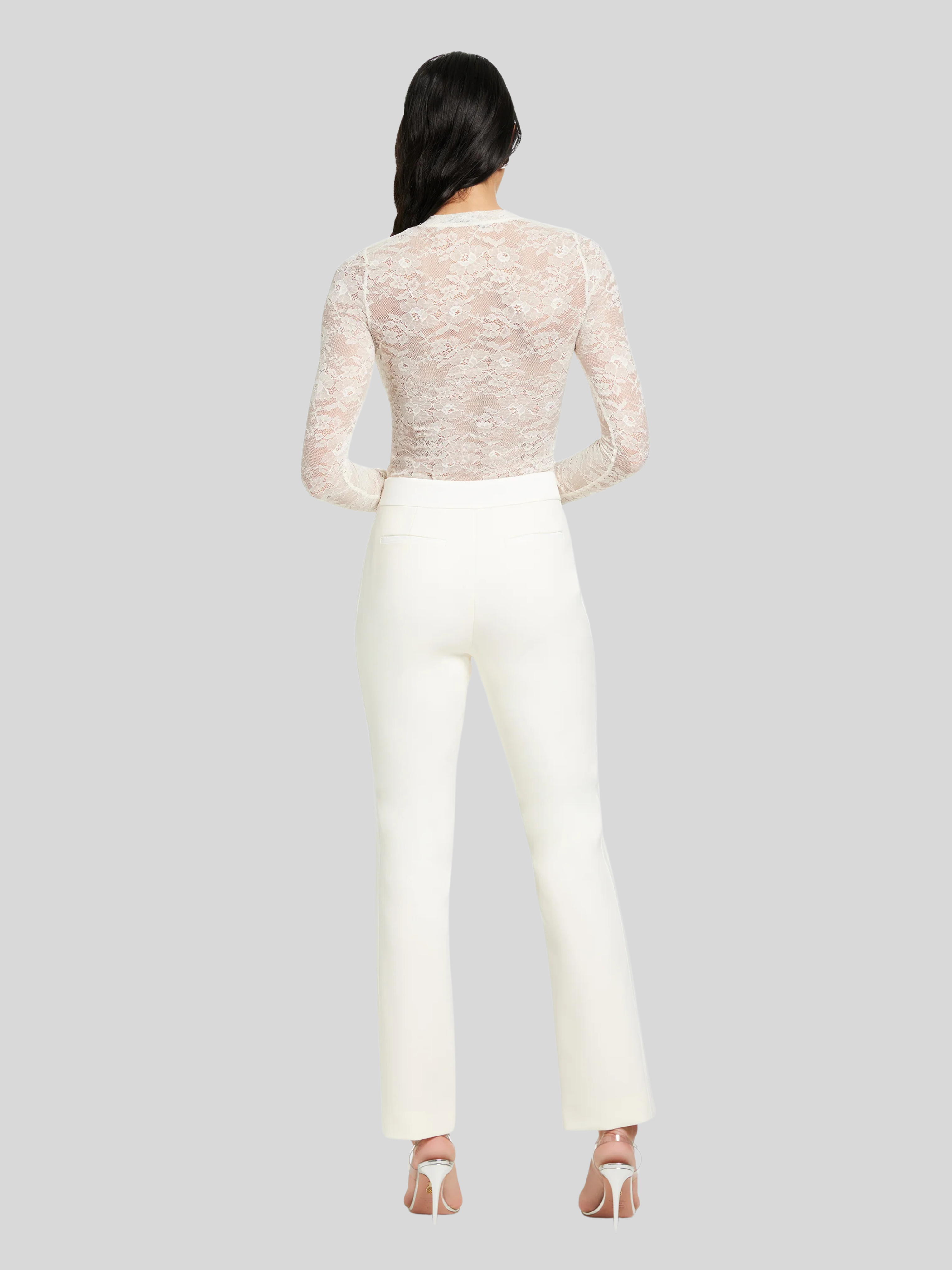 The Carmela is a mid-rise cigarette pant accented with a satin waistband and tuxedo stripe for a touch of understated glamour. Tailored to perfection, it offers a streamlined silhouette that moves seamlessly from boardroom to evening. Pair it with a crisp button-down or the matching blazer for a polished finish.