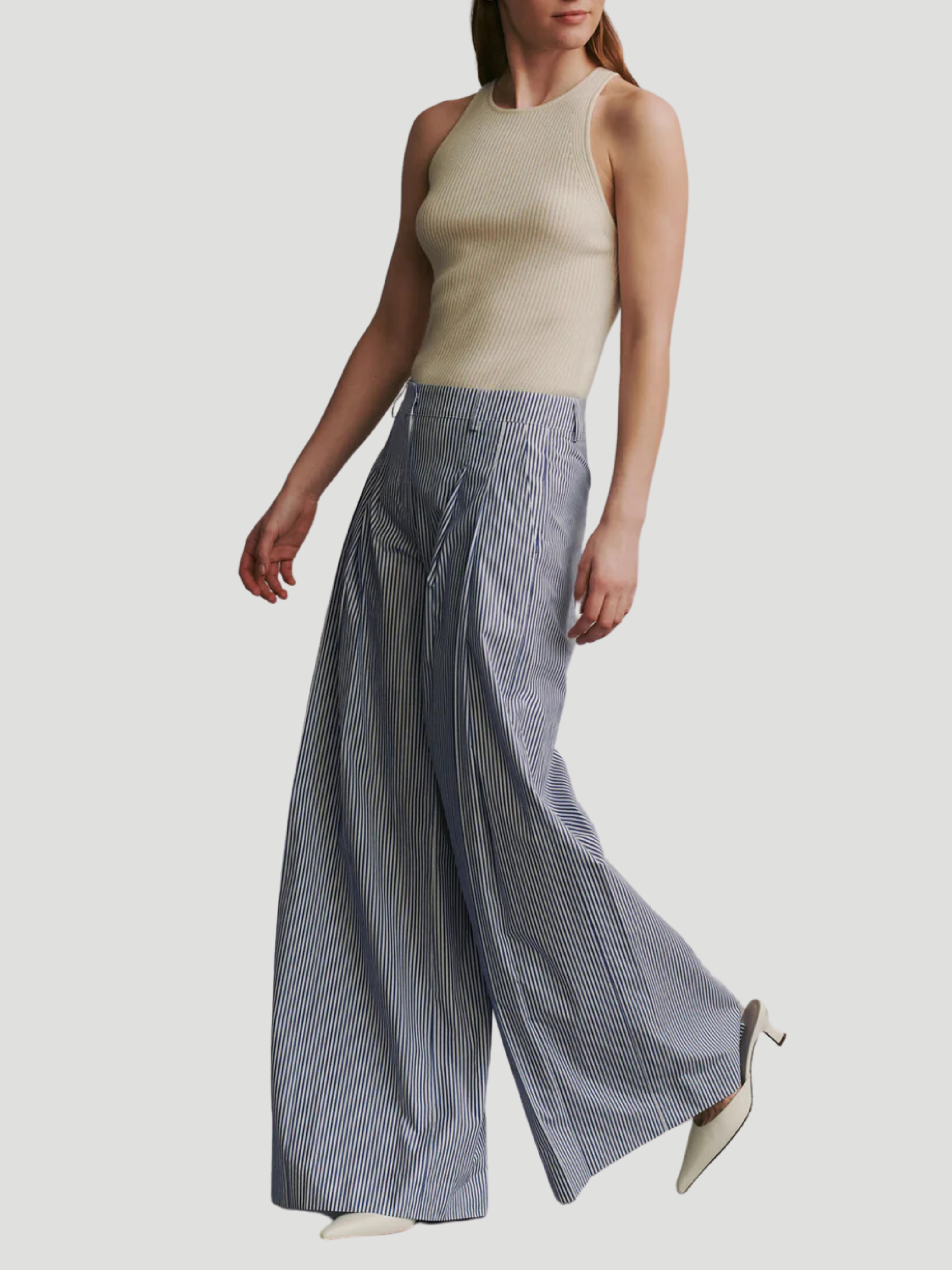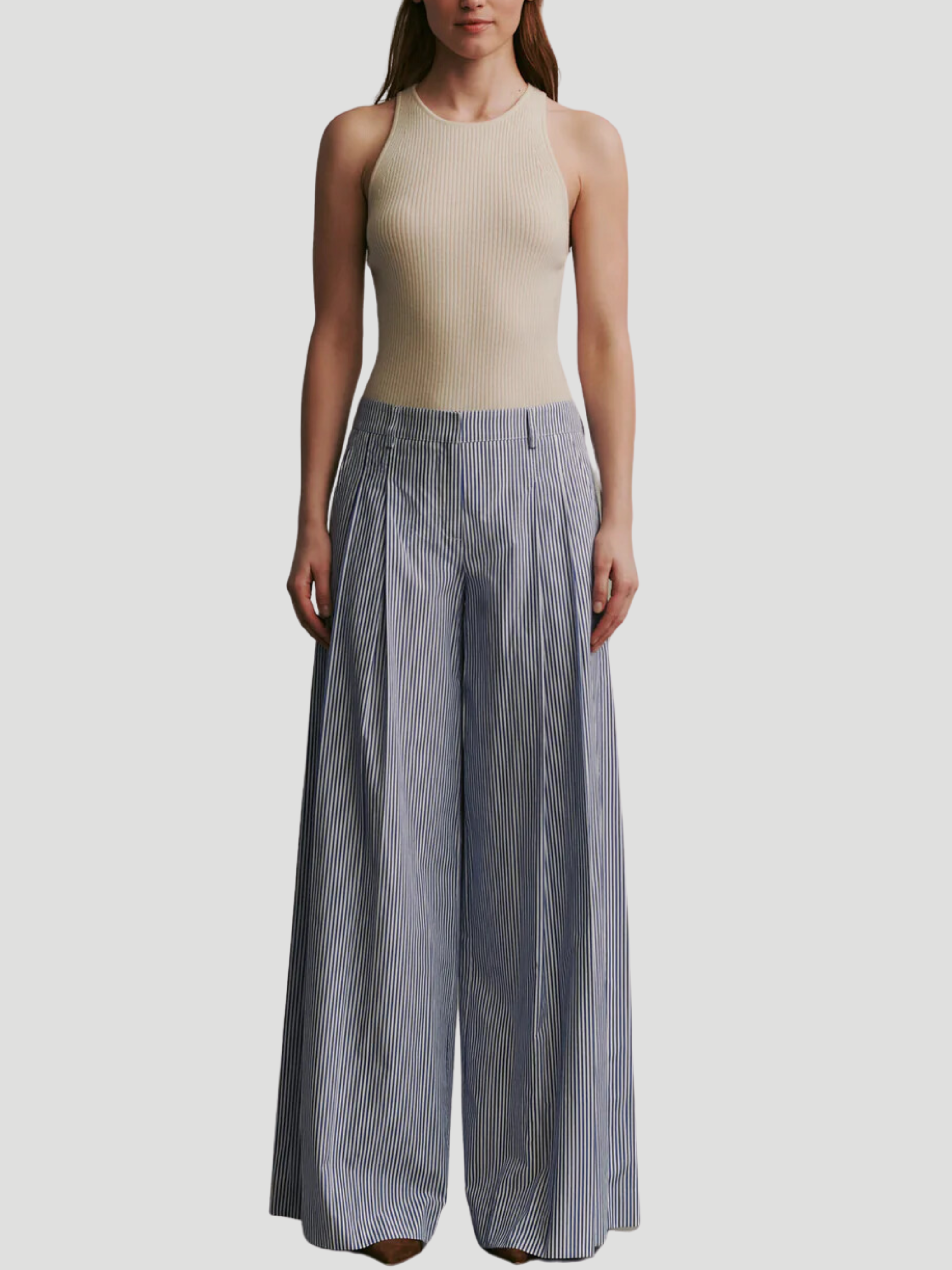 Discover the best-kept secret in fashion with the New Didi Wide-Leg Pant in Awning Lady Stripe. Made from Italian fabrics, these tailored pants offer unbeatable quality at an affordable price. Join the fashion elite and elevate your wardrobe with TWP.