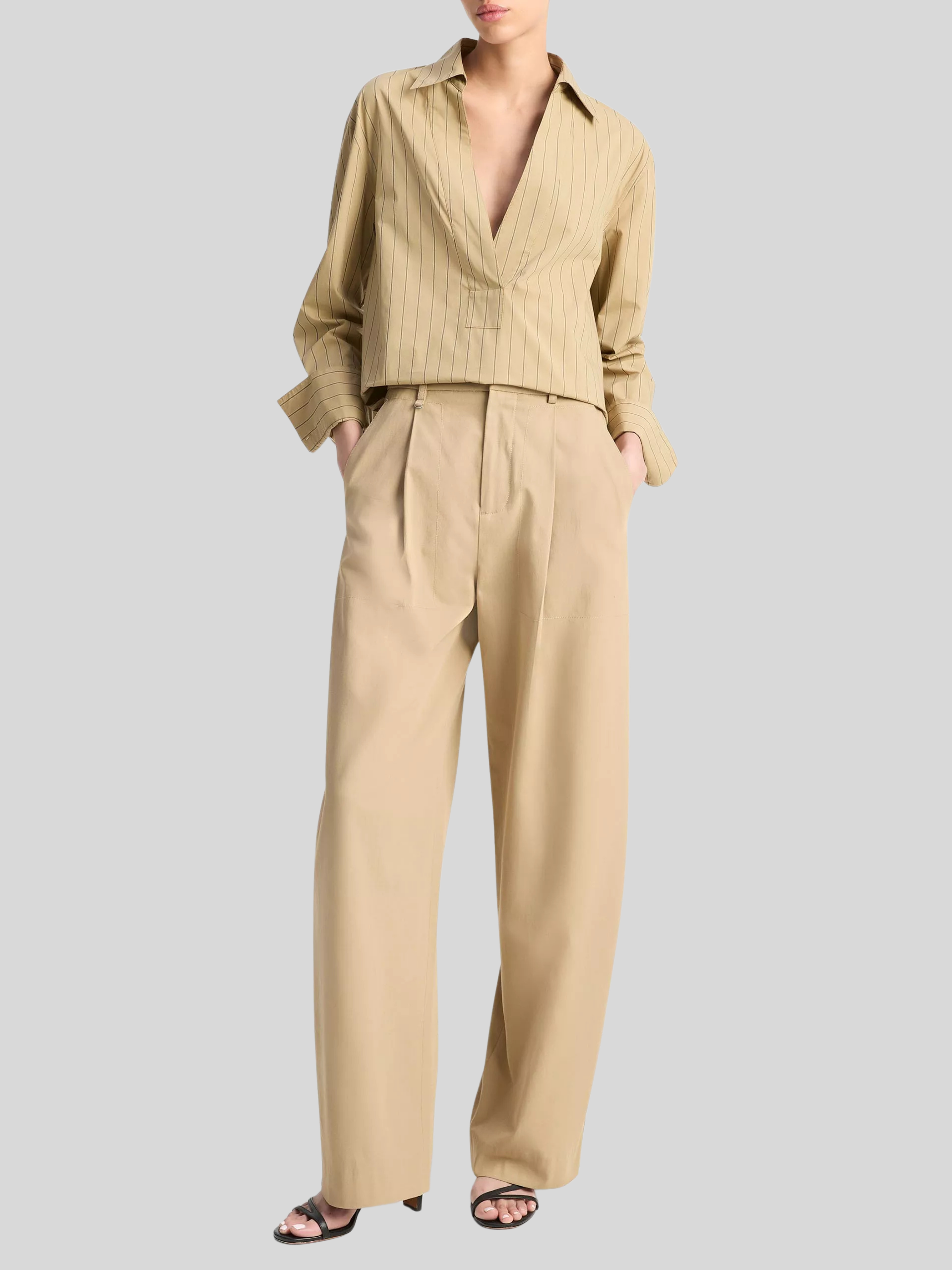 Timeless and easy, Vince's mid-rise trouser is crafted from a softly structured Italian cotton to seamlessly transition from summer into the cooler fall months. They've offset the classic tailored details with a touch of utility — see the cotton tape belt loops, punctuated with a tiny metal D-ring at the right leg.