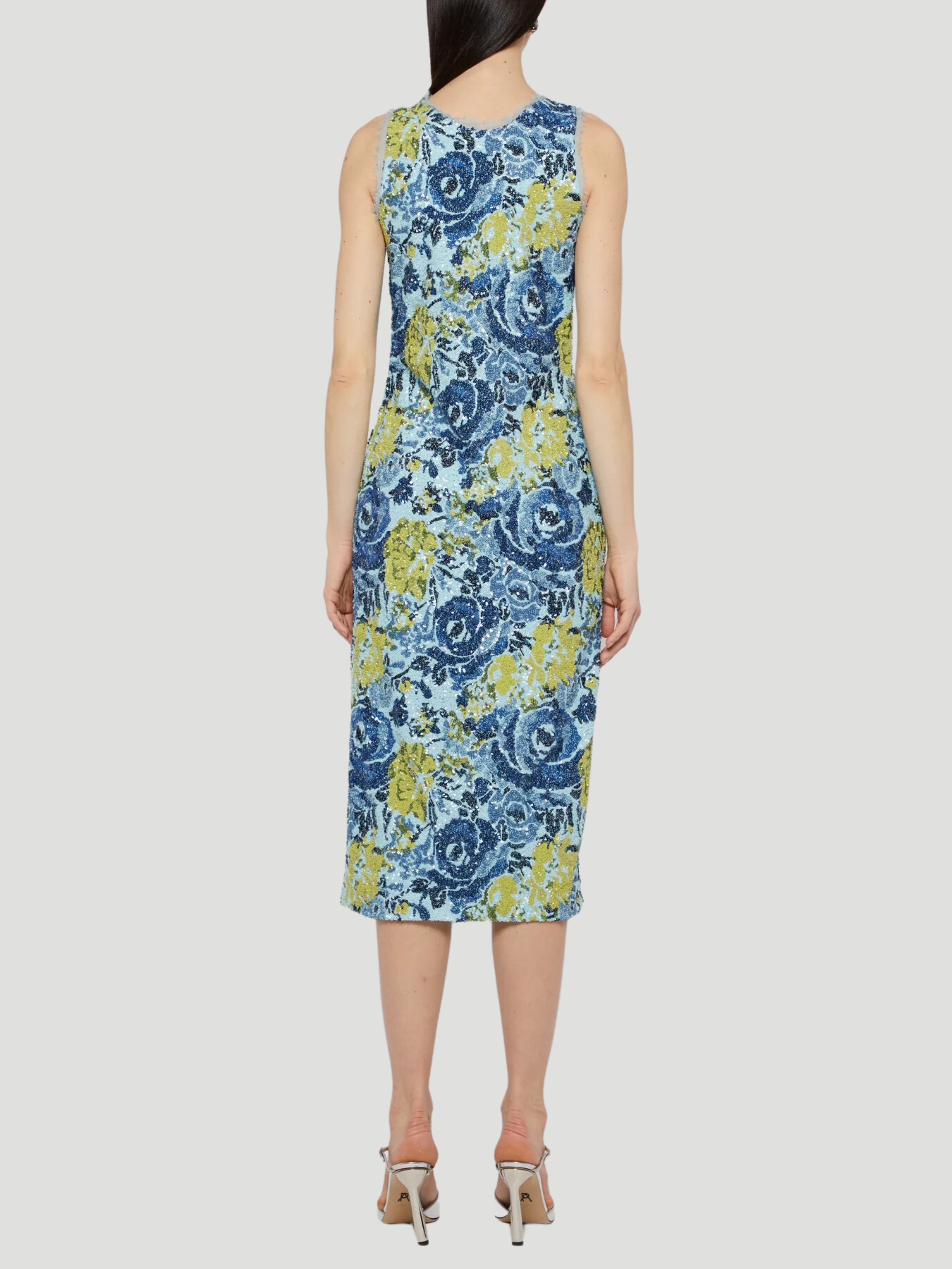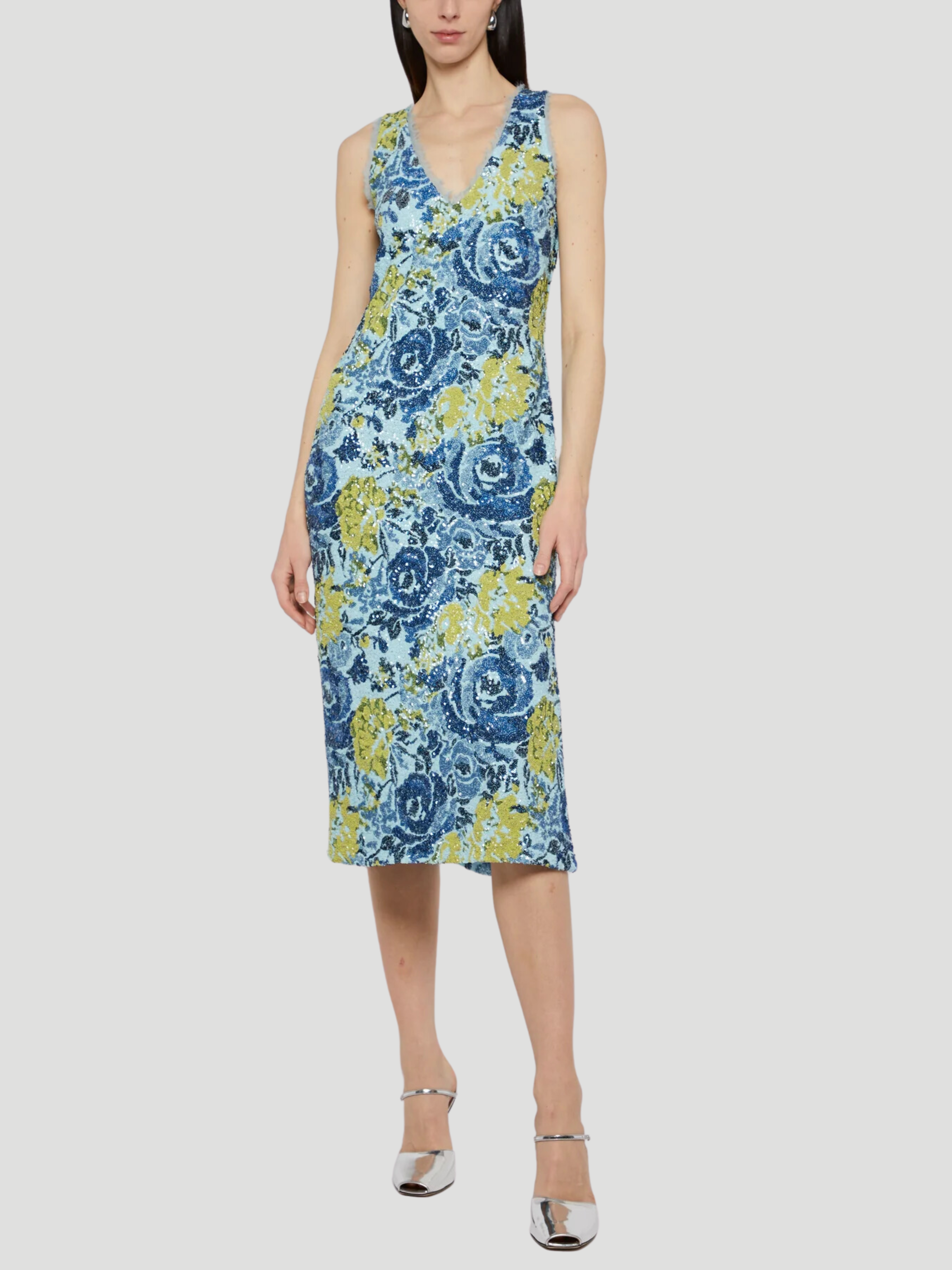 V-Neck Floral Sequin Shift Dress