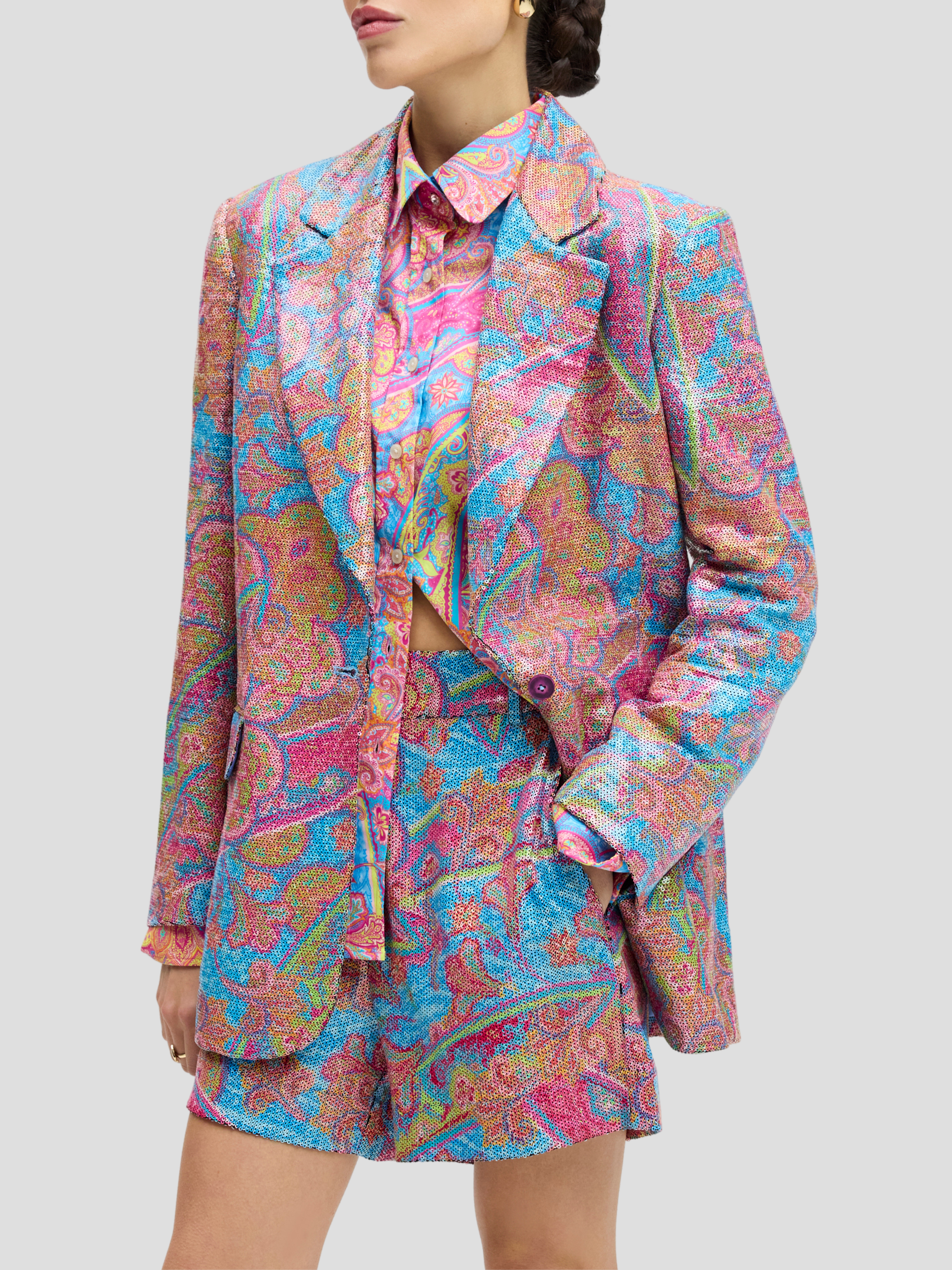 Indulge in the ultimate luxury with The Dylan Jacket in Multicolor. Exquisitely crafted with multicolor fabric, this jacket offers a unique and sophisticated aesthetic. With its timeless design and superior quality, it is the perfect addition to elevate your wardrobe. Experience unparalleled style and elegance with The Dylan Jacket.