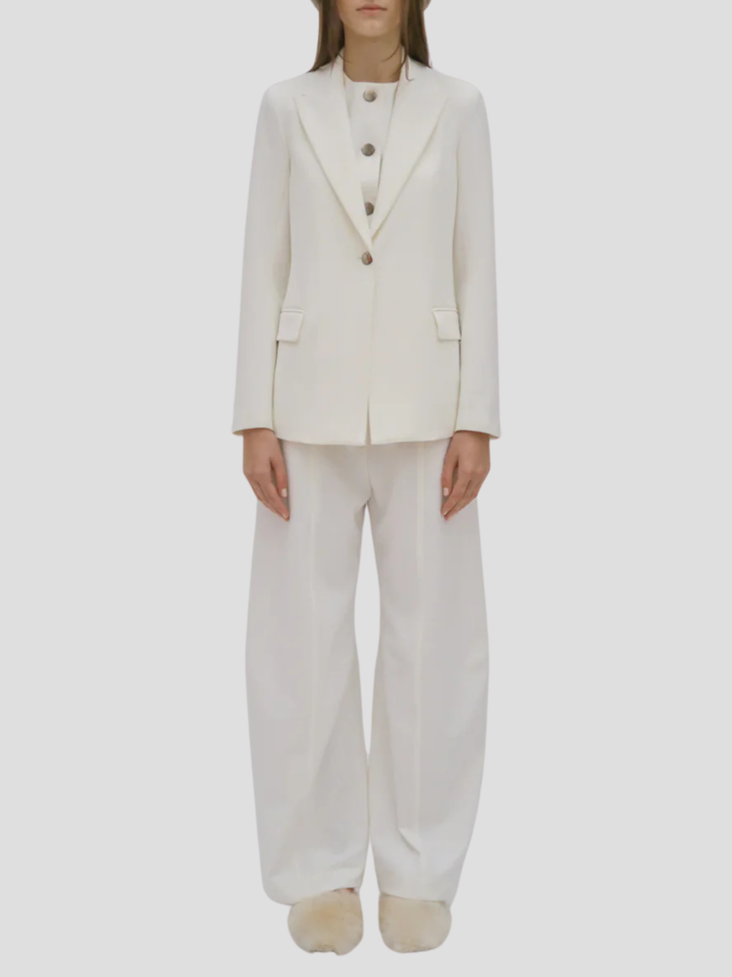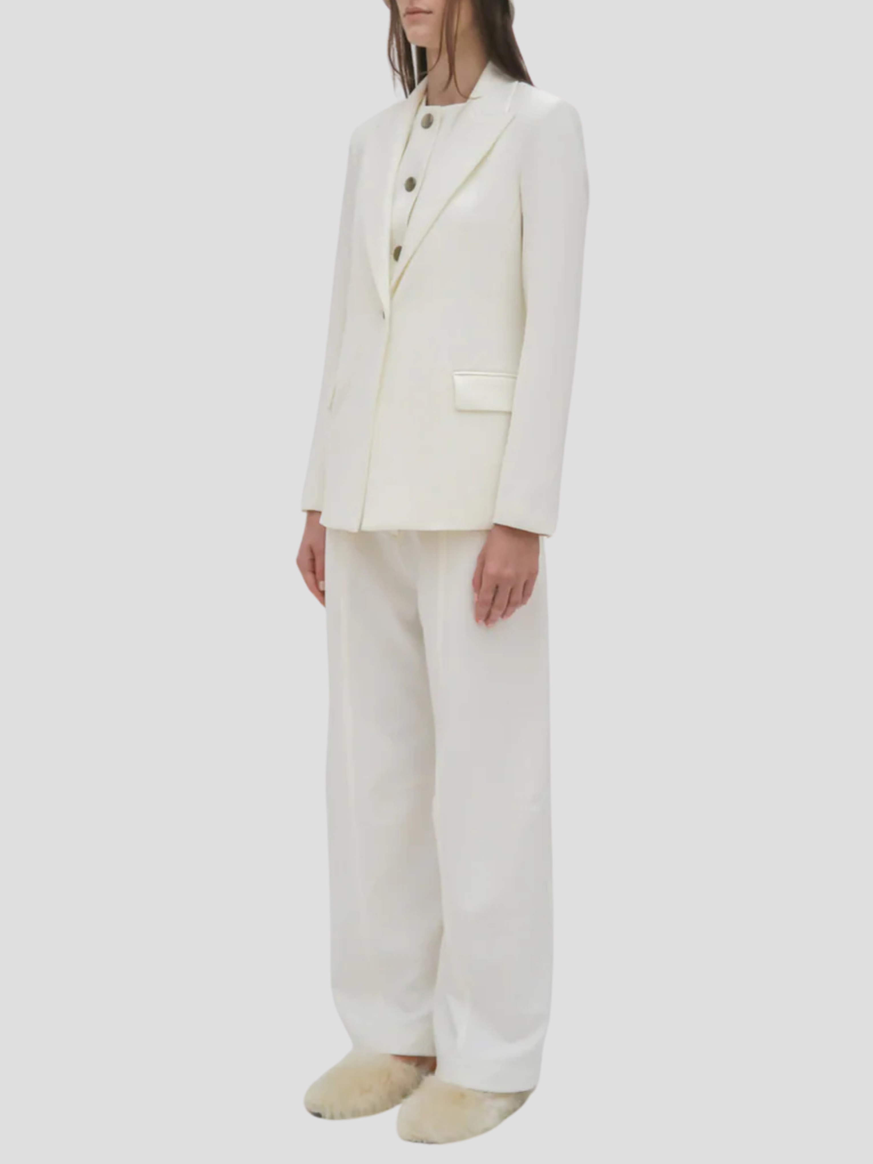 Elevate your style with the Straight Tab Pant in White. These pants feature a sleek, straight silhouette with a sophisticated tab detail. Crafted with premium fabrics, they offer a luxurious look and feel. Perfect for adding a touch of elegance to any outfit.