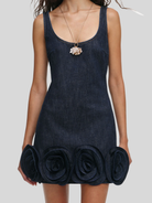 Denim 3D Flower Mini Dress