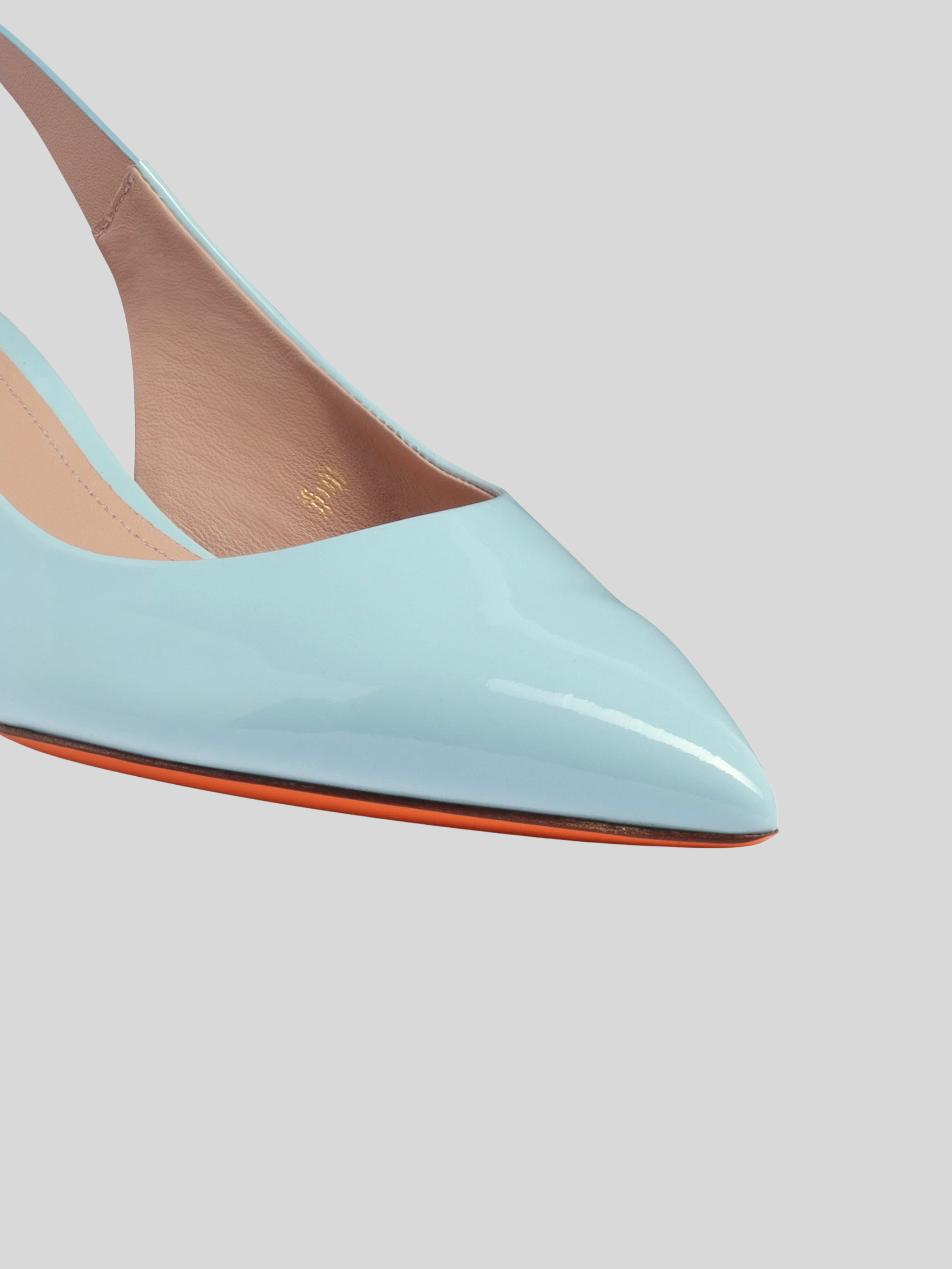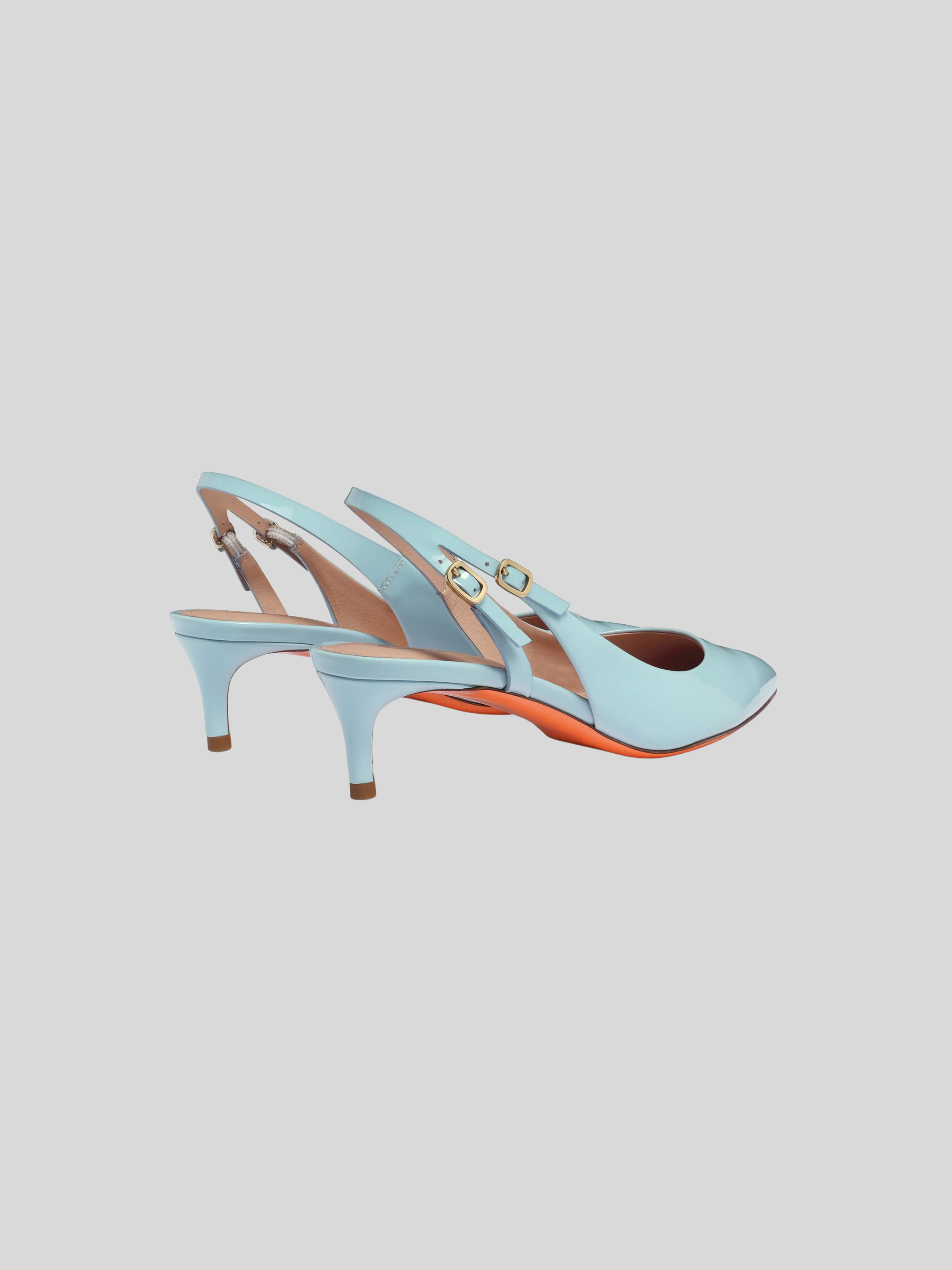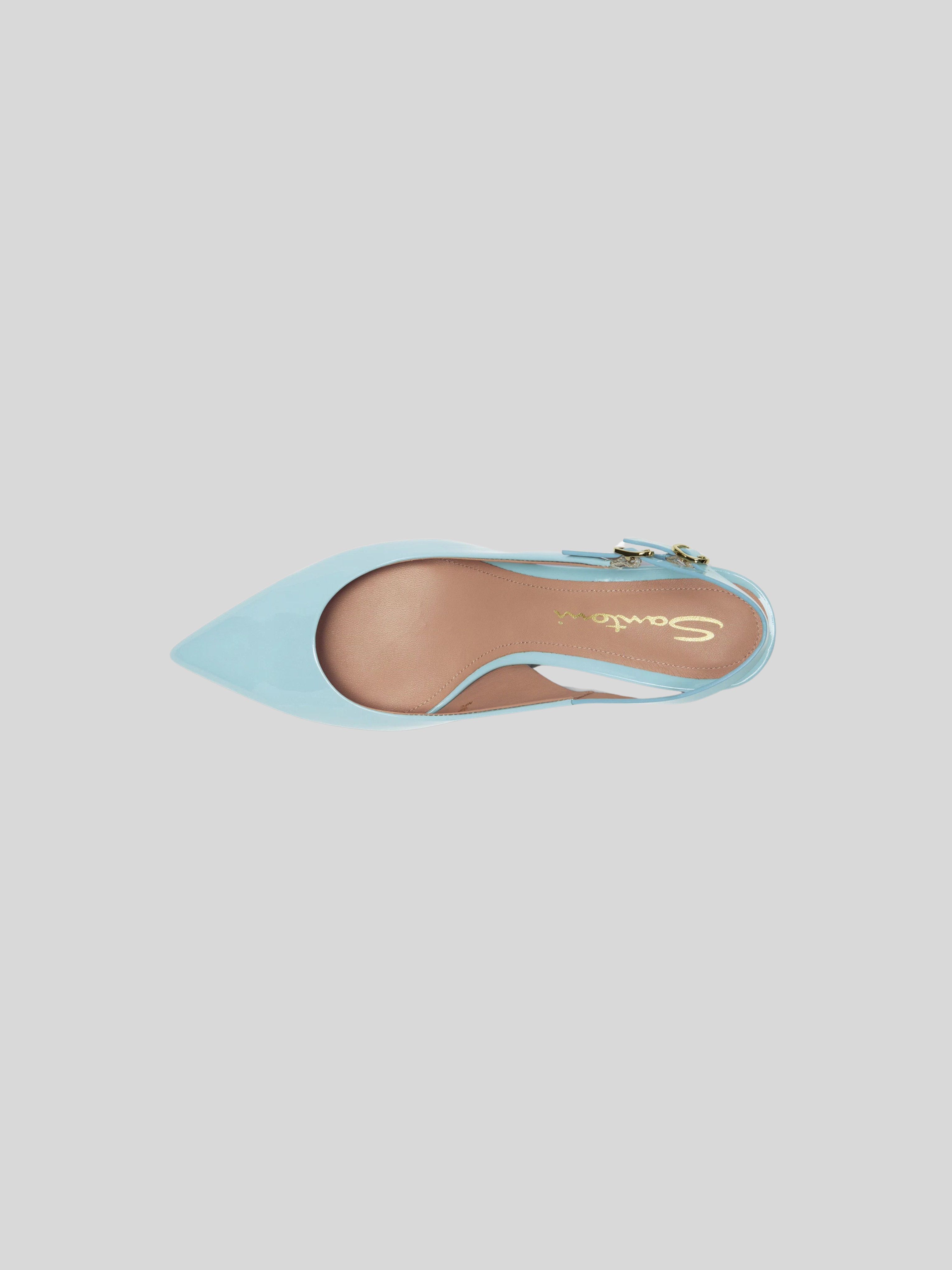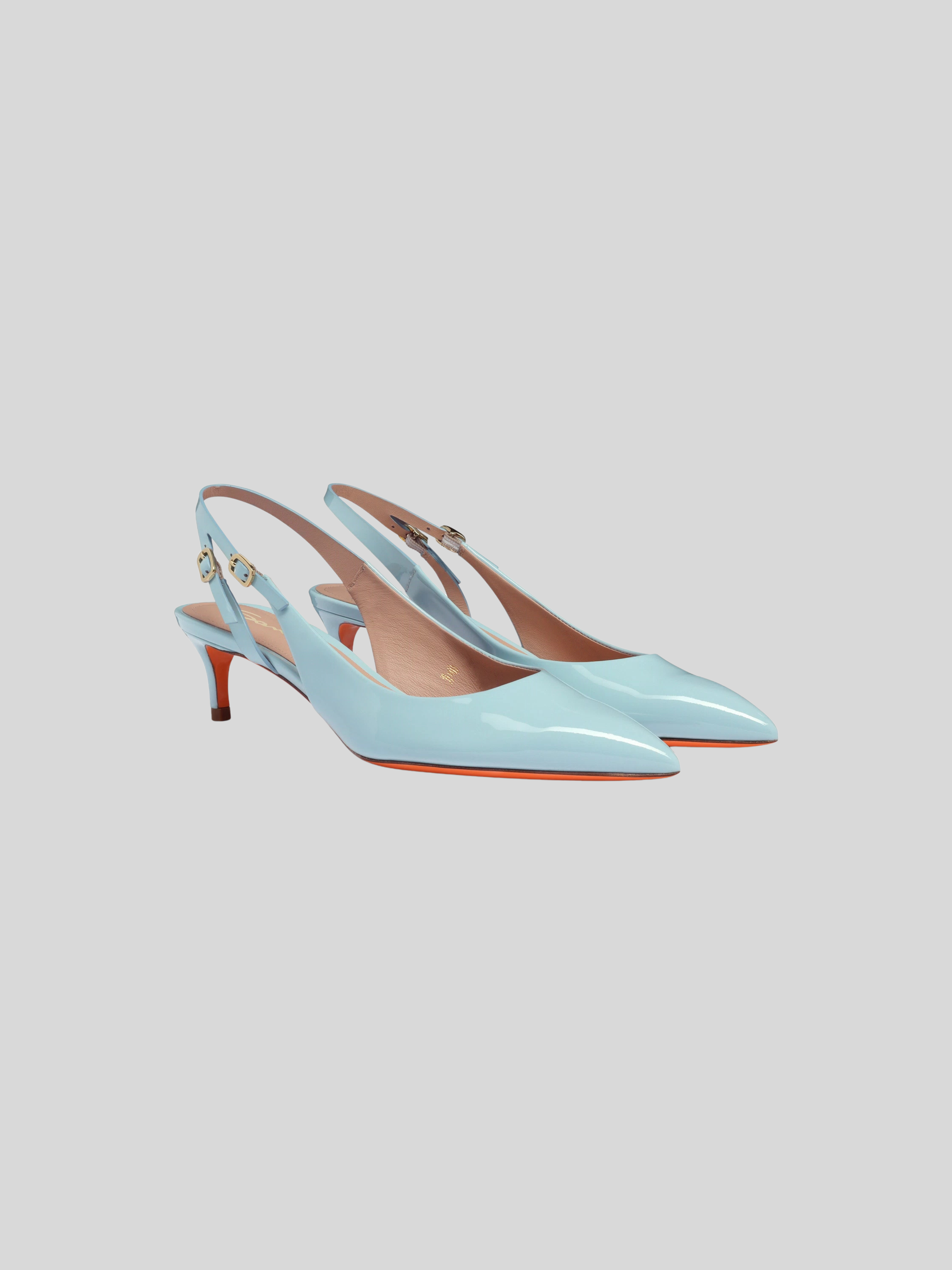 A harmonious fusion of Santoni’s heritage codes, this slingback is the definition of exclusive elegance. Crafted from patent leather, its sleek silhouette features a tapered toe and a strap on the back inspired by the iconic lines of our signature double buckle. Styled with a comfortable mid-height heel that works effortlessly with both casual and evening looks alike.