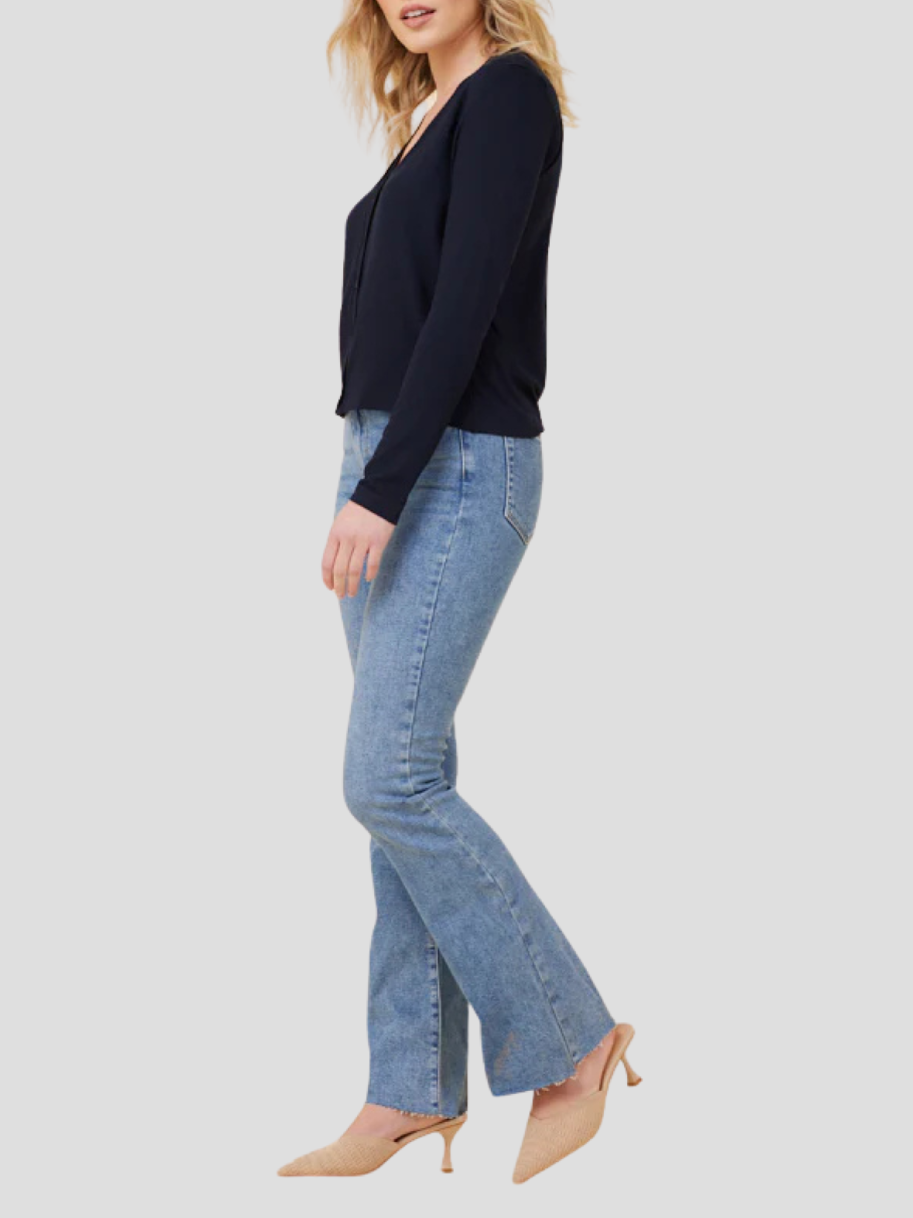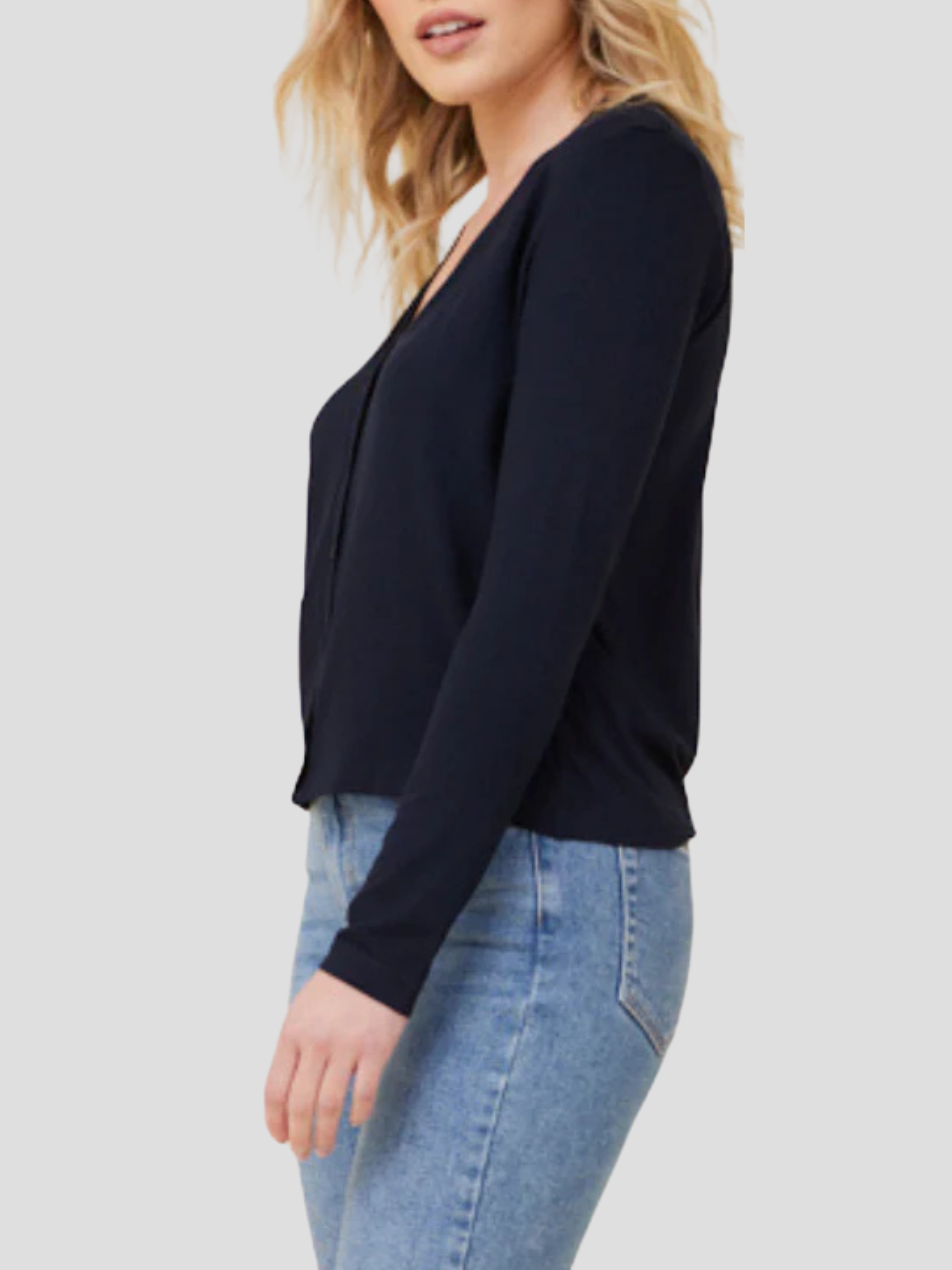 Envelop yourself in refined comfort with the Soft Touch V Neck Cardigan in Navy. This sophisticated layering piece features a flattering V-neckline and sumptuous fabric that drapes elegantly against the skin. The timeless navy hue offers versatile styling options, transitioning effortlessly from professional settings to evening occasions with understated elegance.