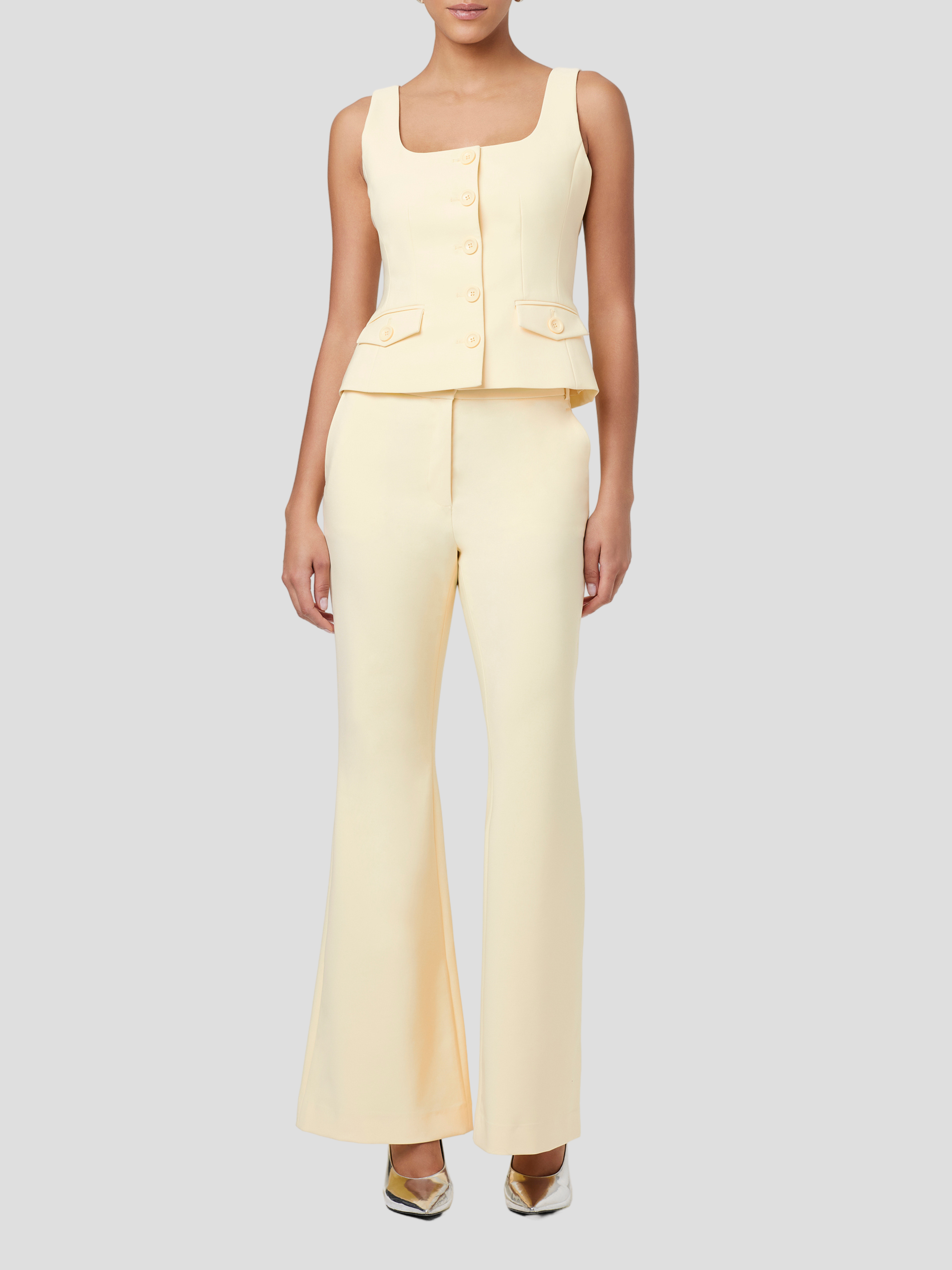 Elevate your wardrobe with our Gaia Flared Pant in Butter. Crafted with premium fabric, these pants boast a flattering flare silhouette that accentuates your curves. The soft buttery hue adds a touch of elegance to any outfit. Embrace luxury and sophistication with every step in these exquisite pants.