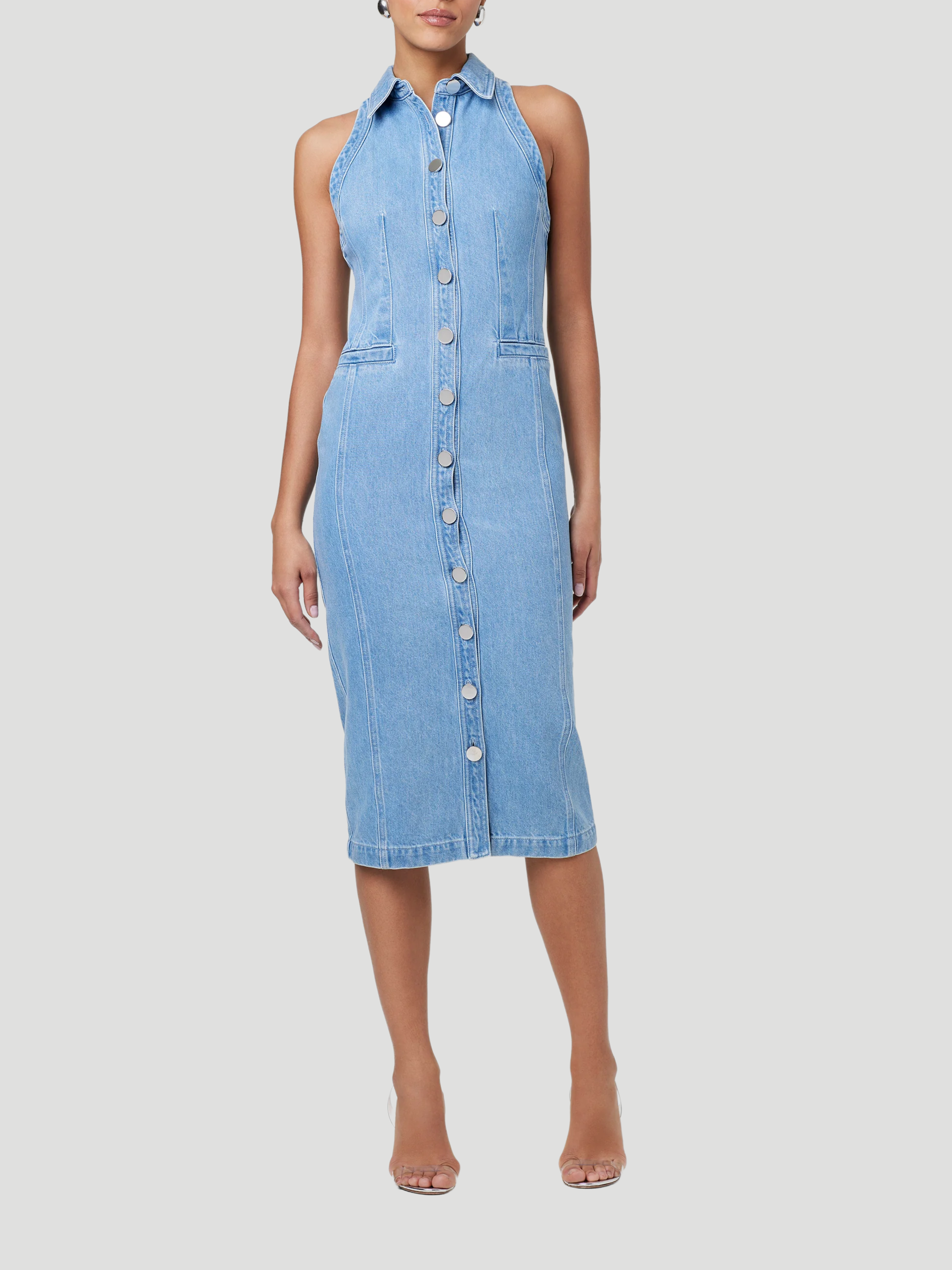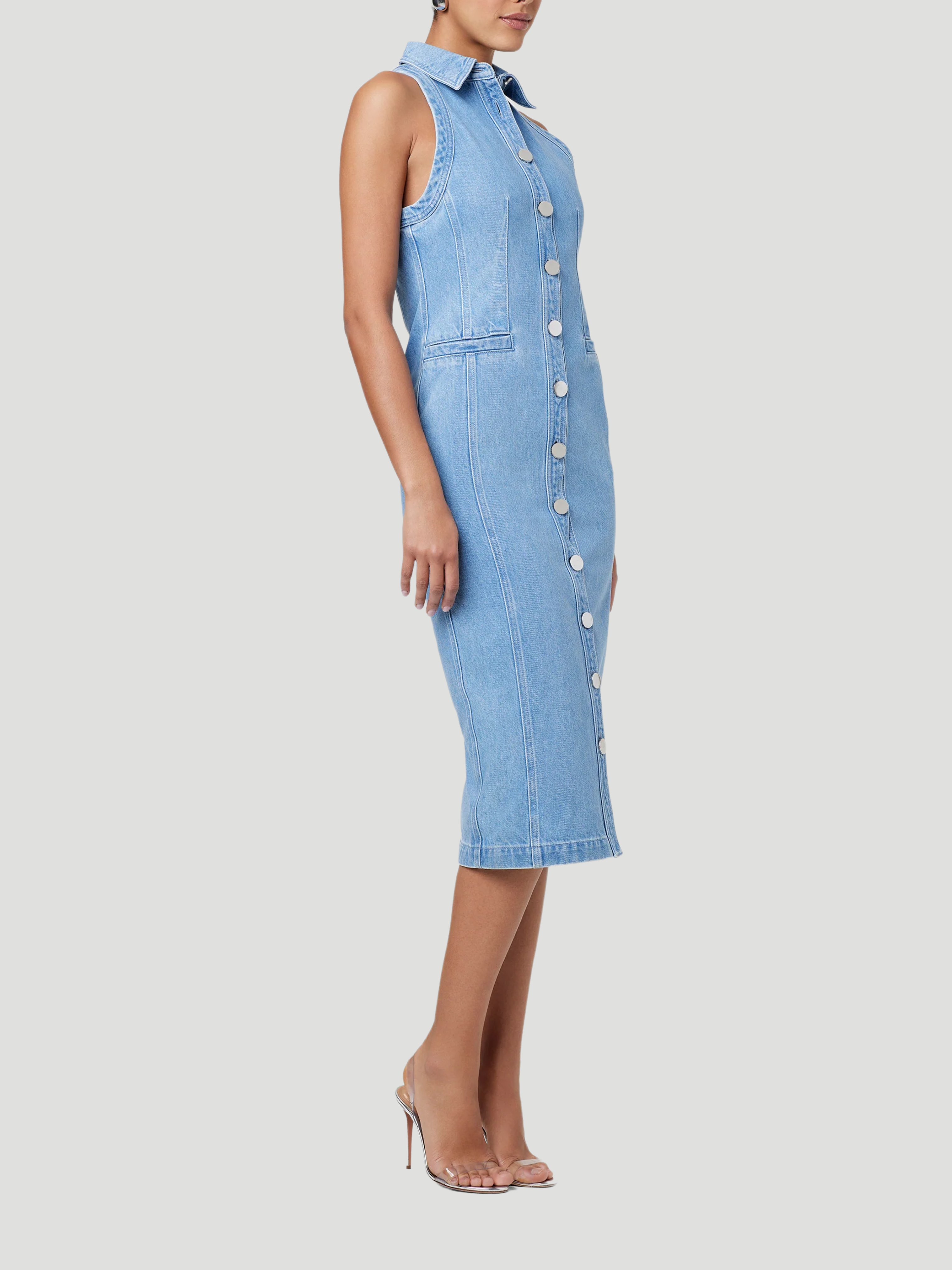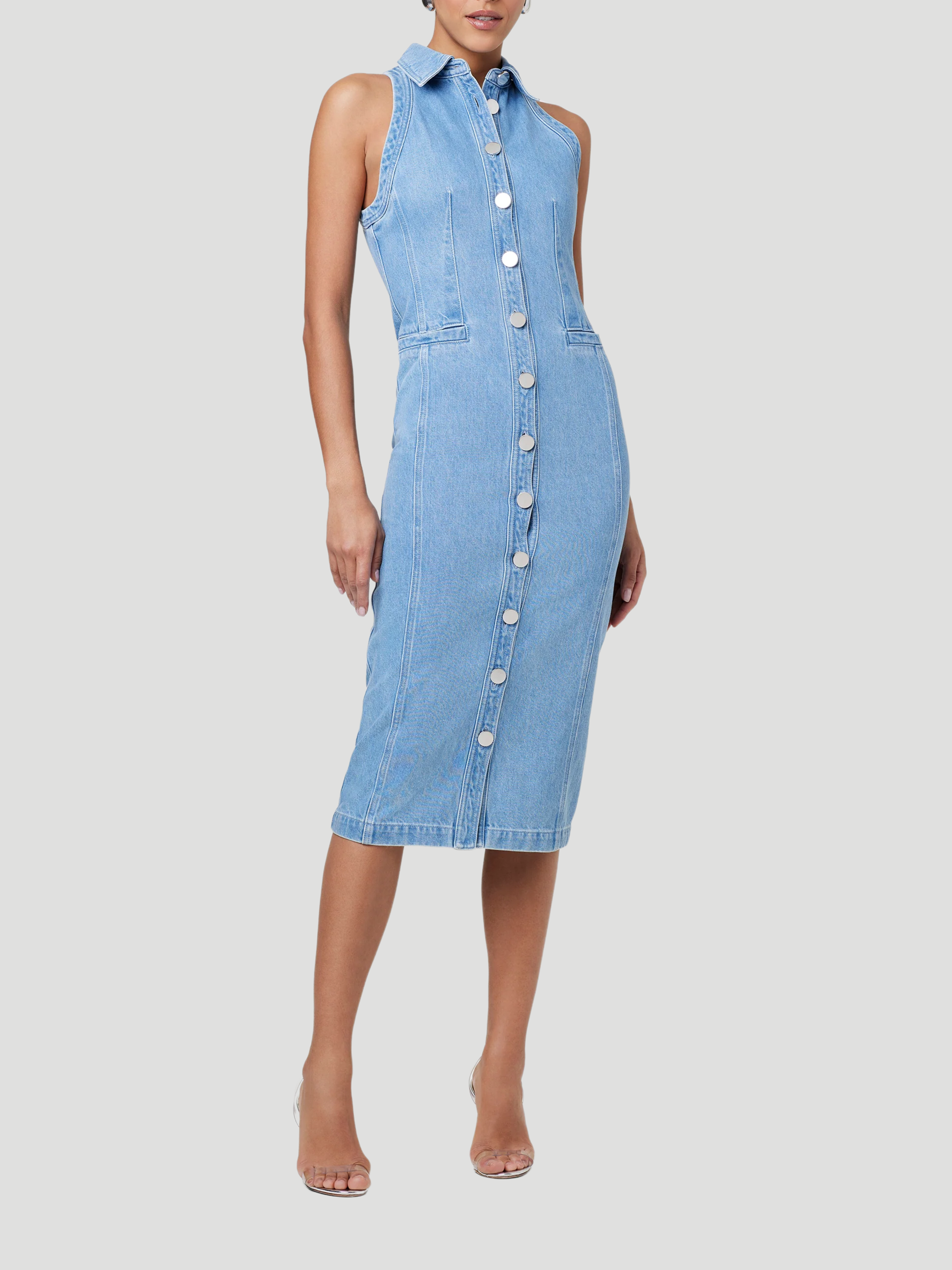 The Palmer Button-Front Denim Midi Dress from Toccin is the epitome of sophistication and style. With its structured yet comfortable design, this dress offers a flattering silhouette that can be dressed up or down. Whether paired with sneakers for a casual and chic look or heels for a polished and elegant ensemble, this dress is sure to make a statement wherever you go.