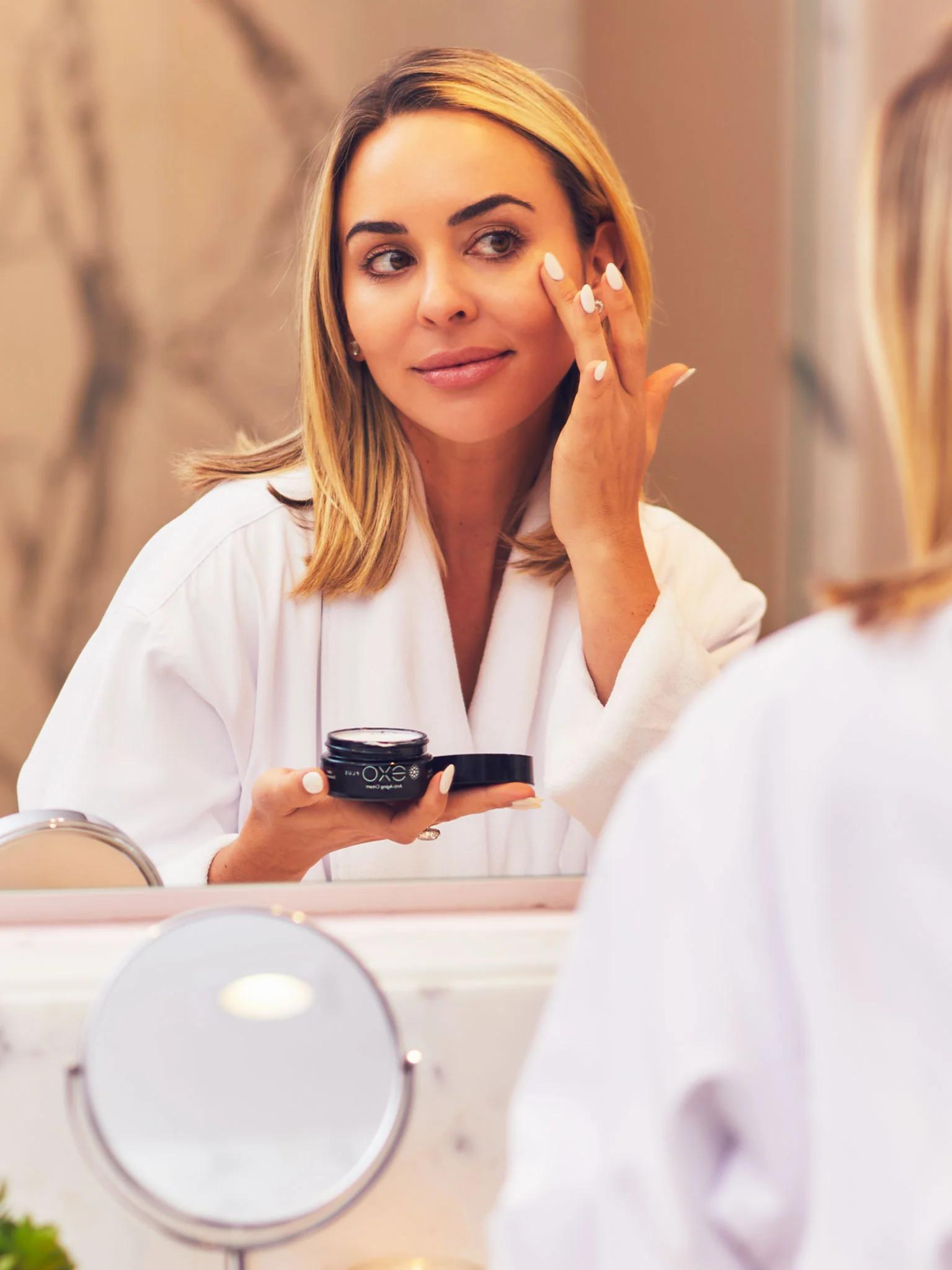 - Massage the EXO PLUS™ ANTI-AGING CREAM into your skin in circular motions until it is completely absorbed. For superior results we recommend using it with our EXO H-SERUM™.