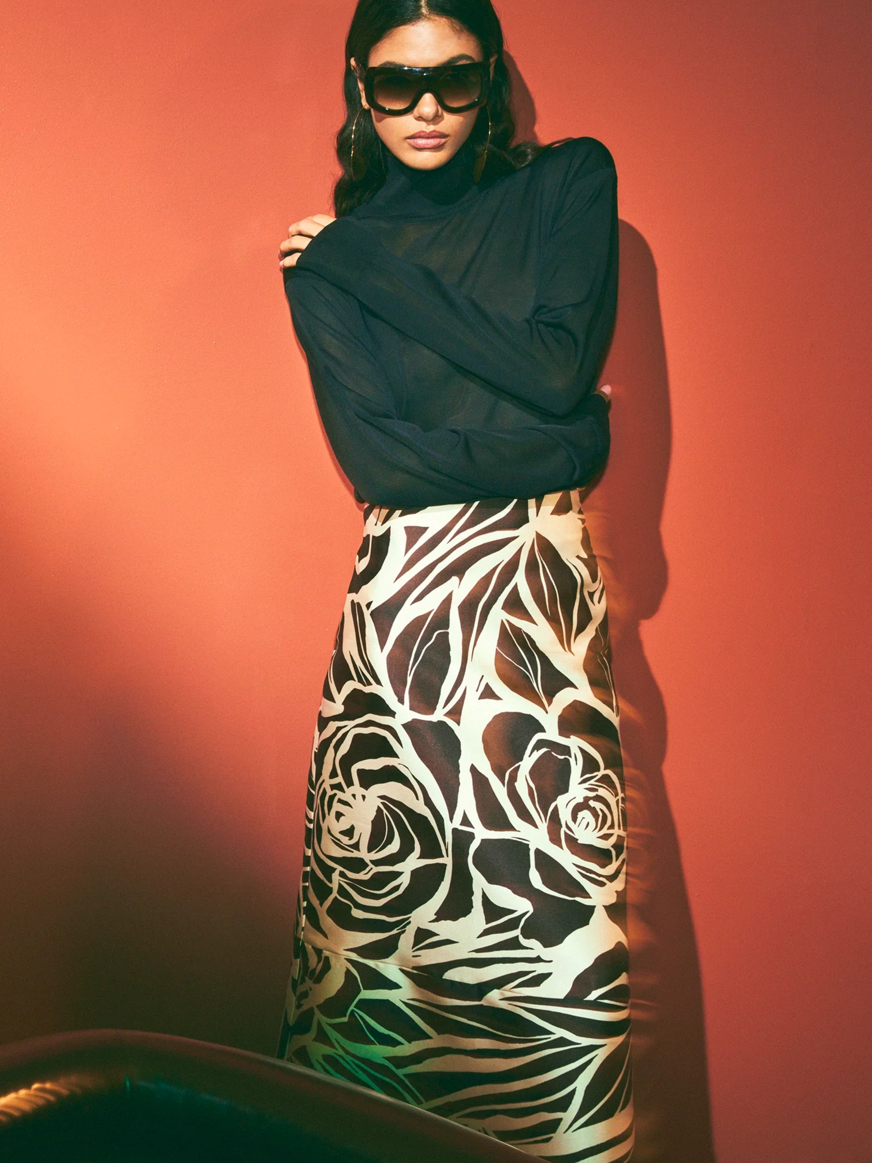 Expertly crafted by Alexis, the Patel Skirt boasts a stunning floral graphic print with intricate detailing and contrast. With a flattering silhouette and midi length, this skirt offers both refined style and practicality with hidden side pockets. Elevate your wardrobe with this eye-catching and functional piece.