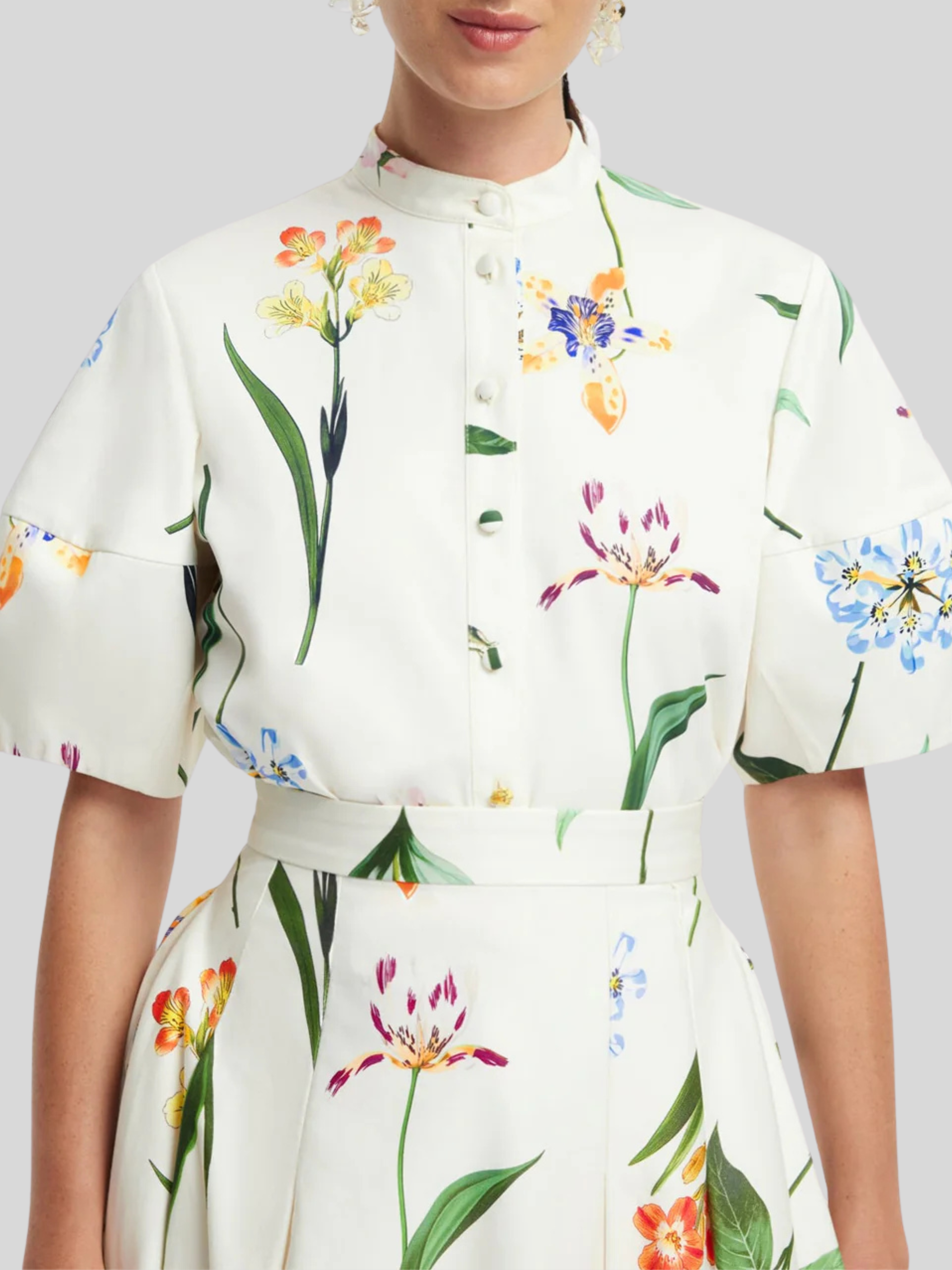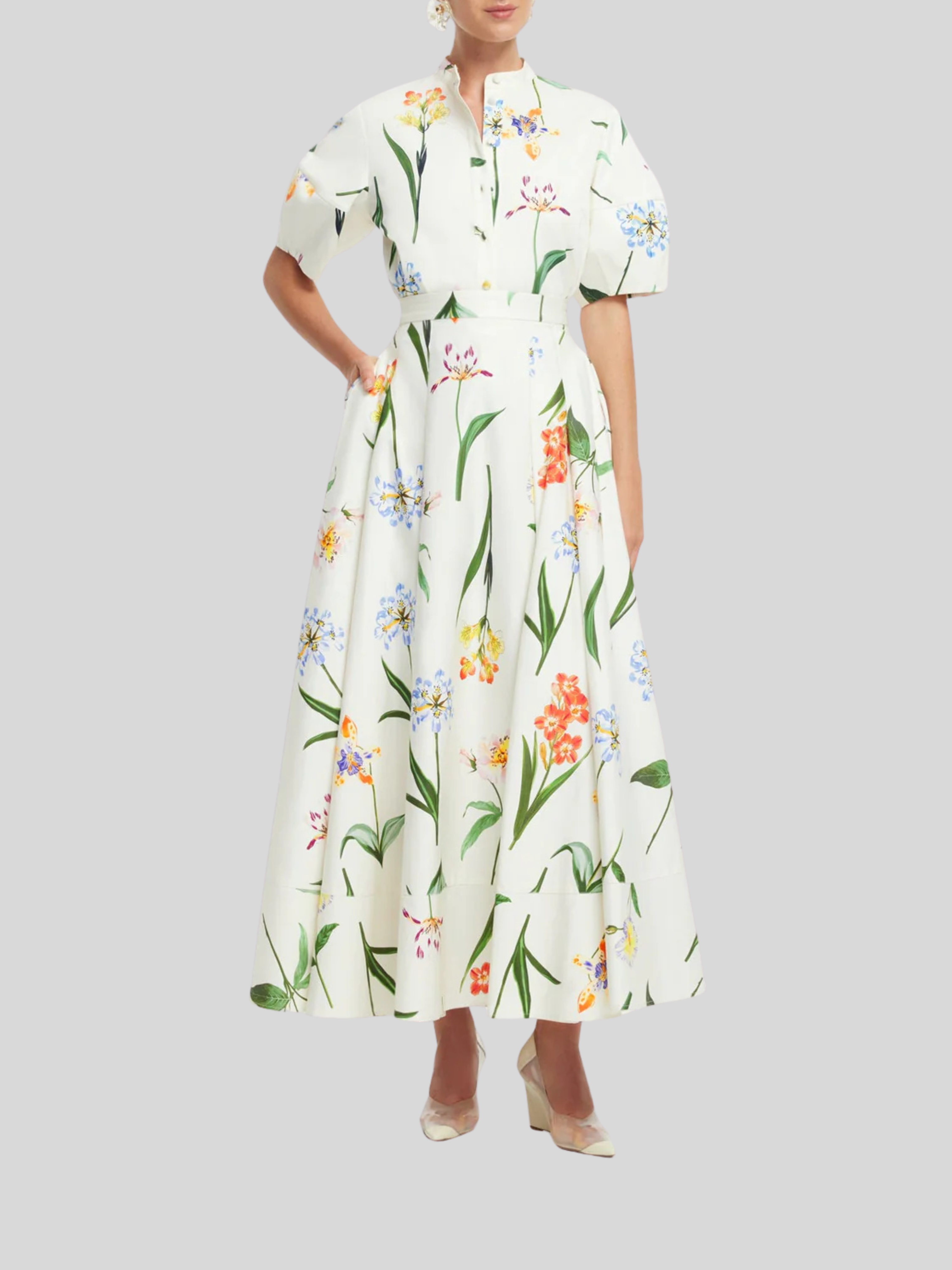 Vivid wildflowers are bloom across a heavenly snow base. Soft beading and flashes of colour are fresh, delicate and full of the life bursting from a wildflower garden.
