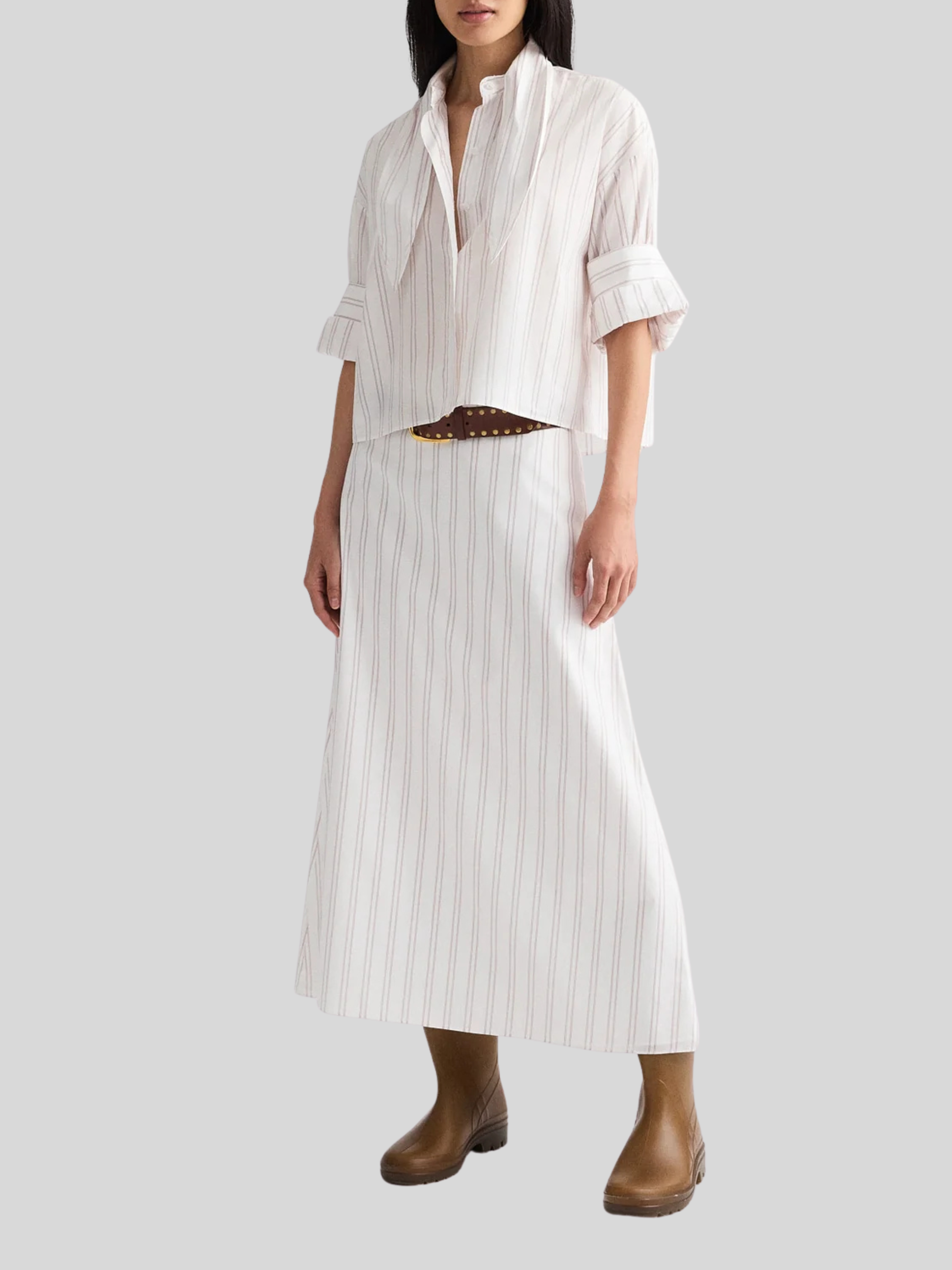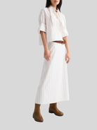 A Line Skirt in White/Wine Stripe