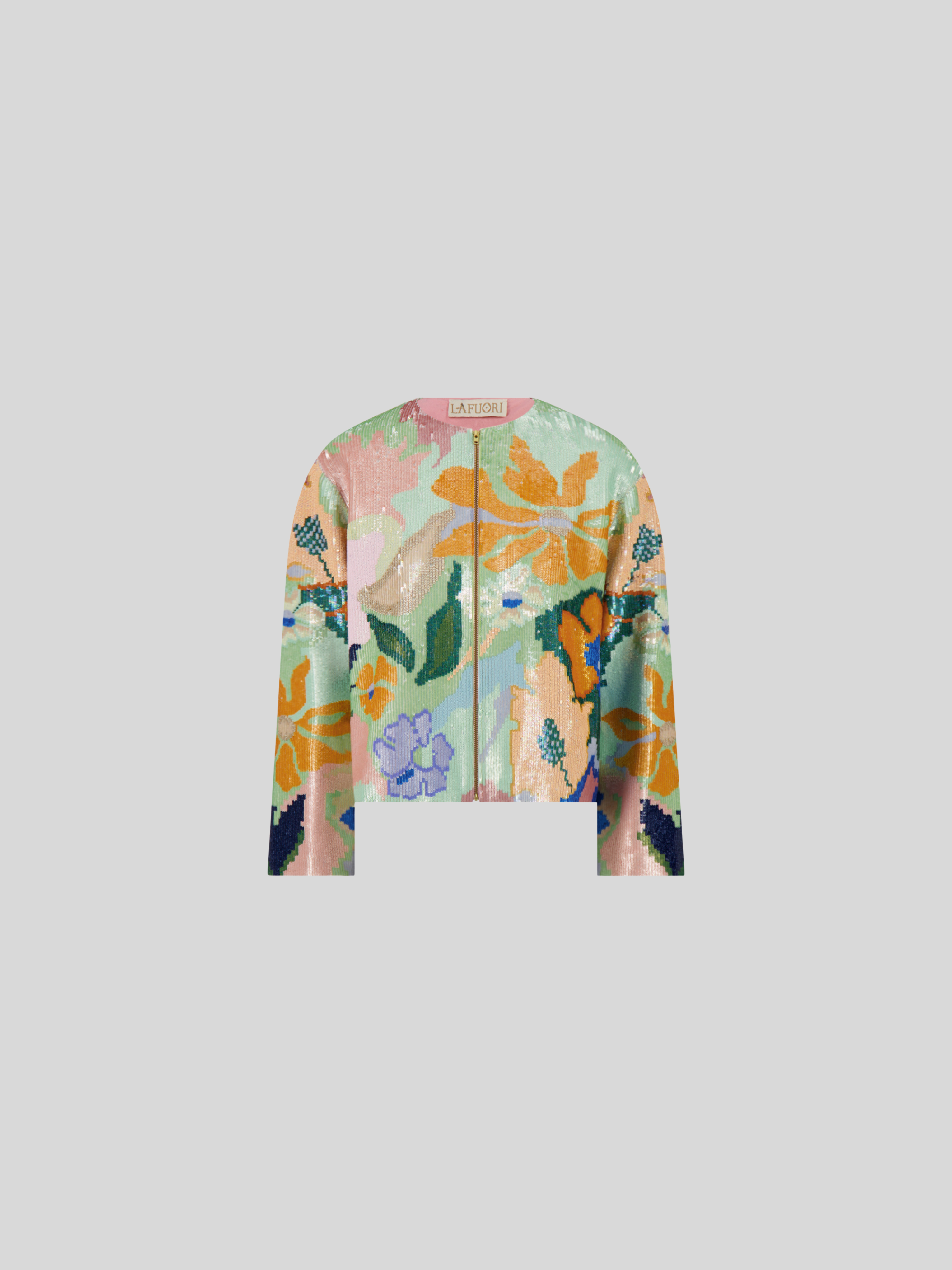 Crop Emma Lace Jacket in Baby Blue, Lilac, and Baby Pink