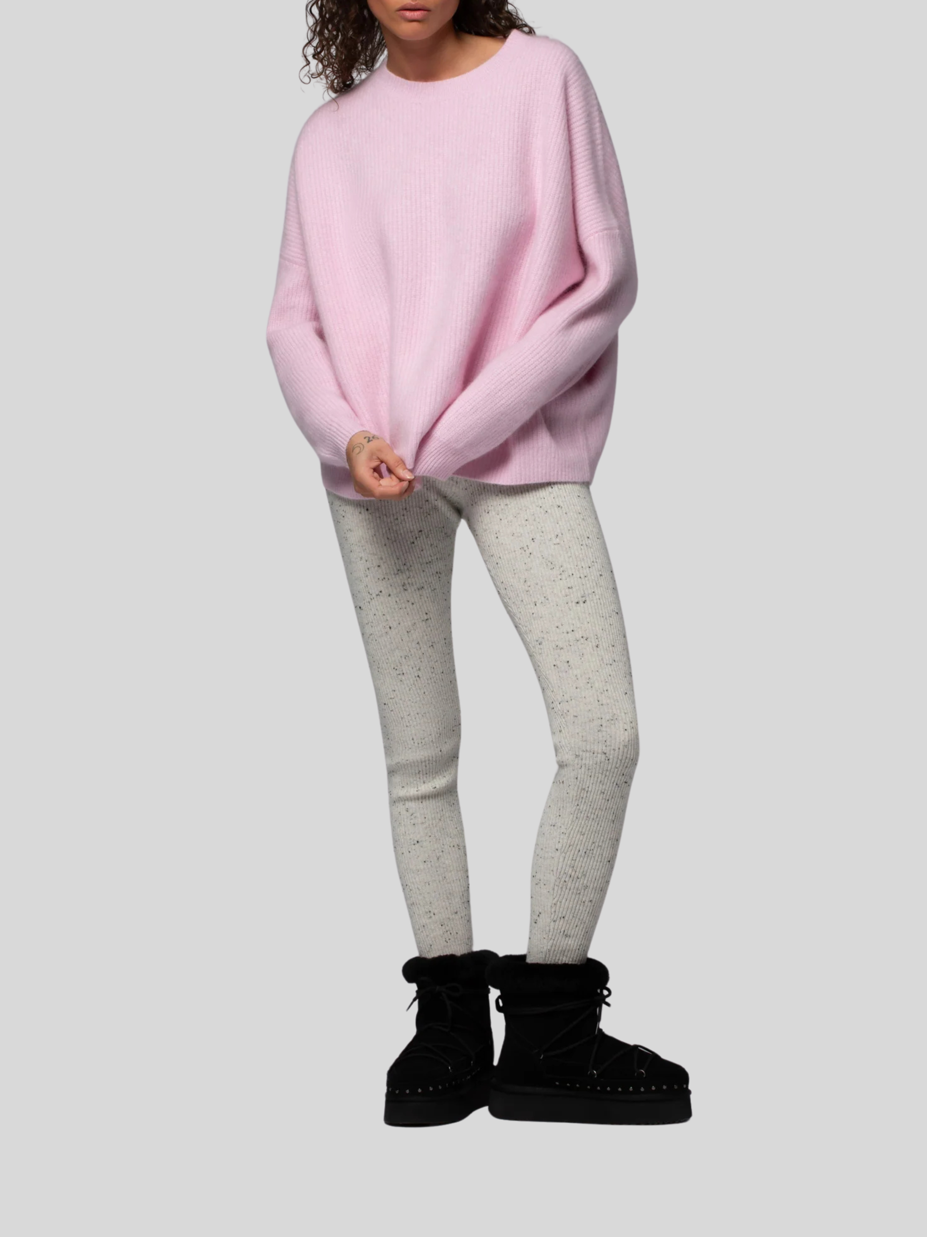 This women's cashmere sweater perfectly embodies the effortless spirit. Easy to wear, it pairs just as well with the collection’s matching cashmere pants, your favorite jeans, a pencil skirt, or our iconic lambskin leather leggings.