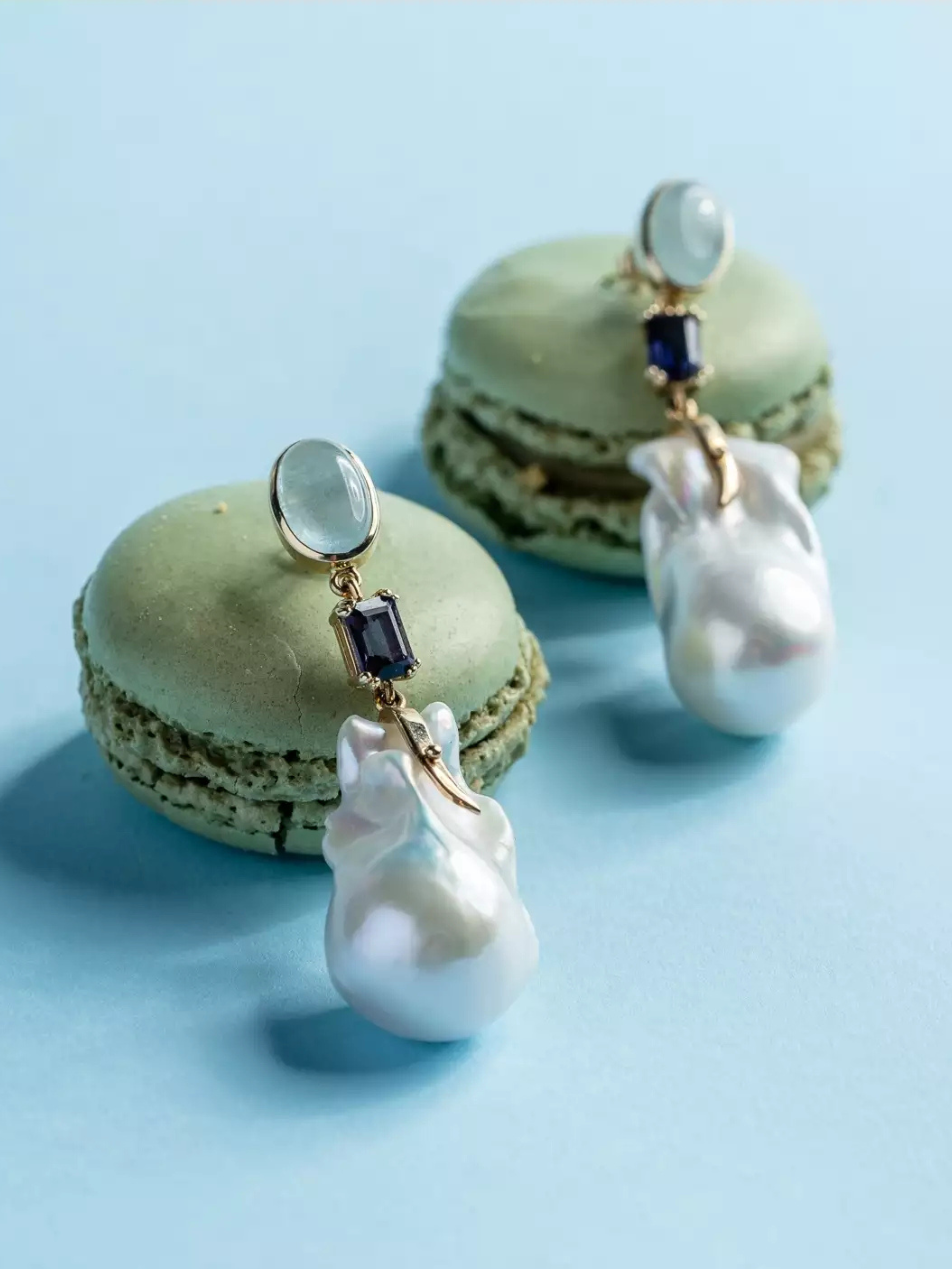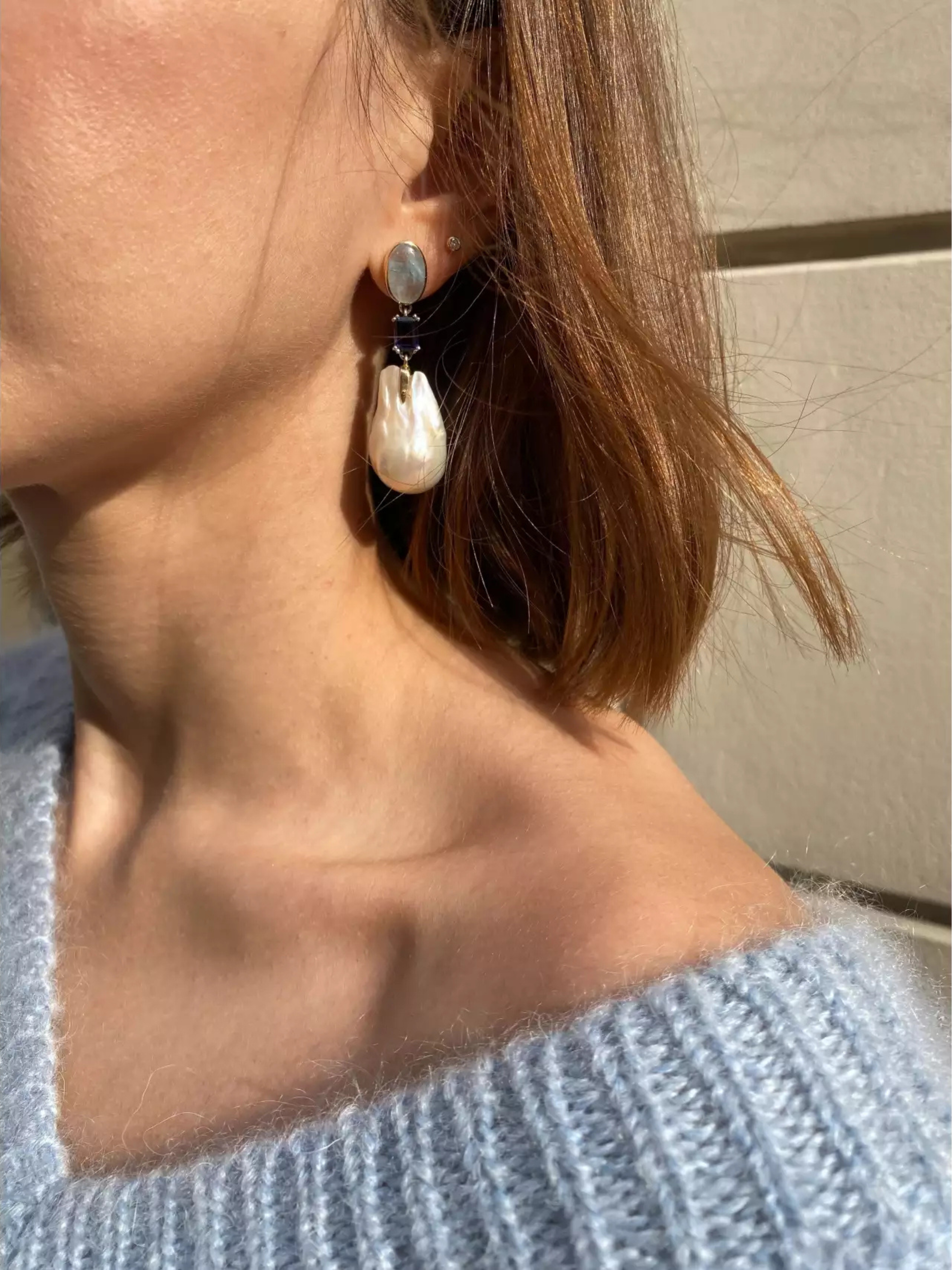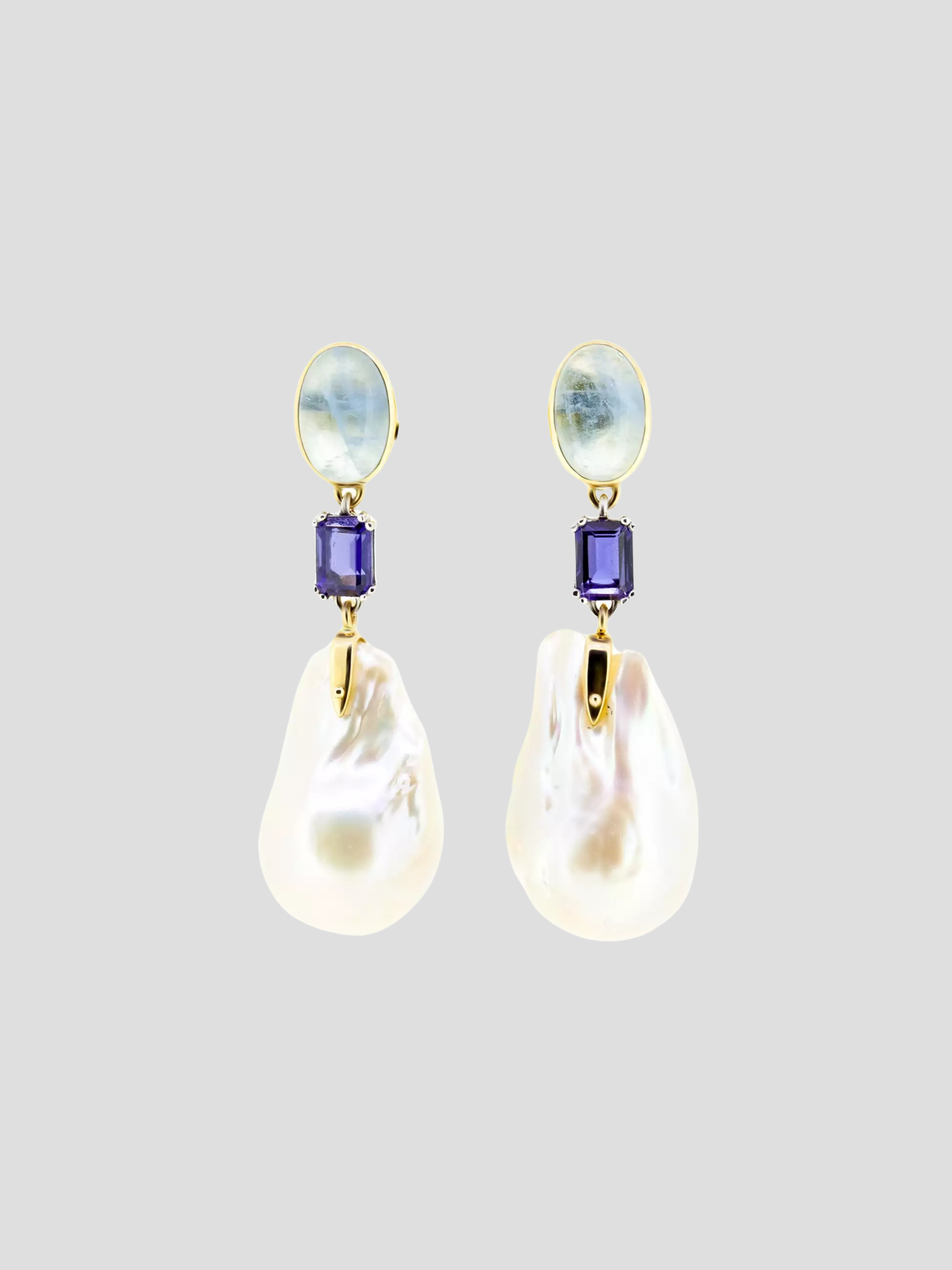 Seafood Earrings Pearl, Aquamarine, Iolit