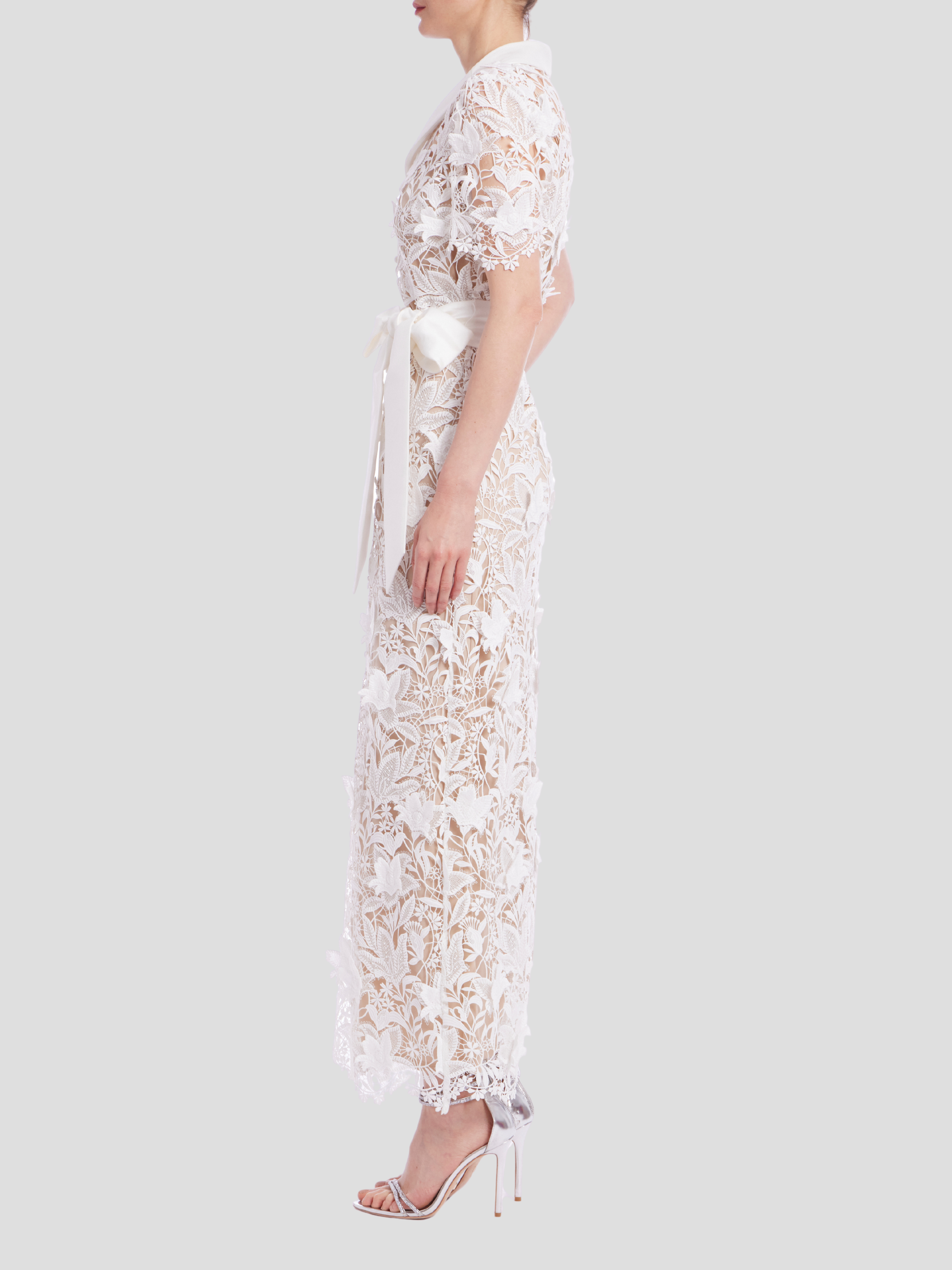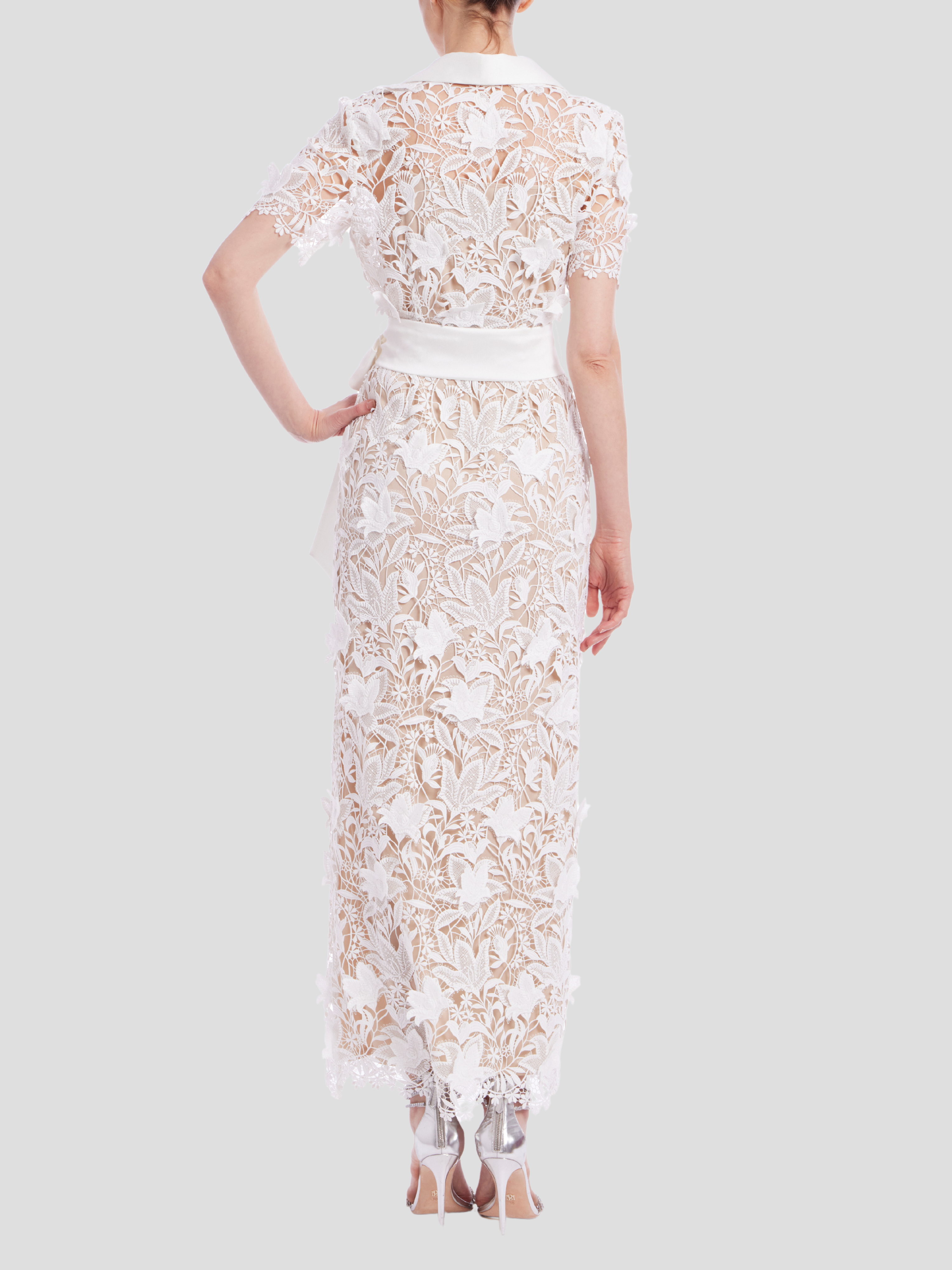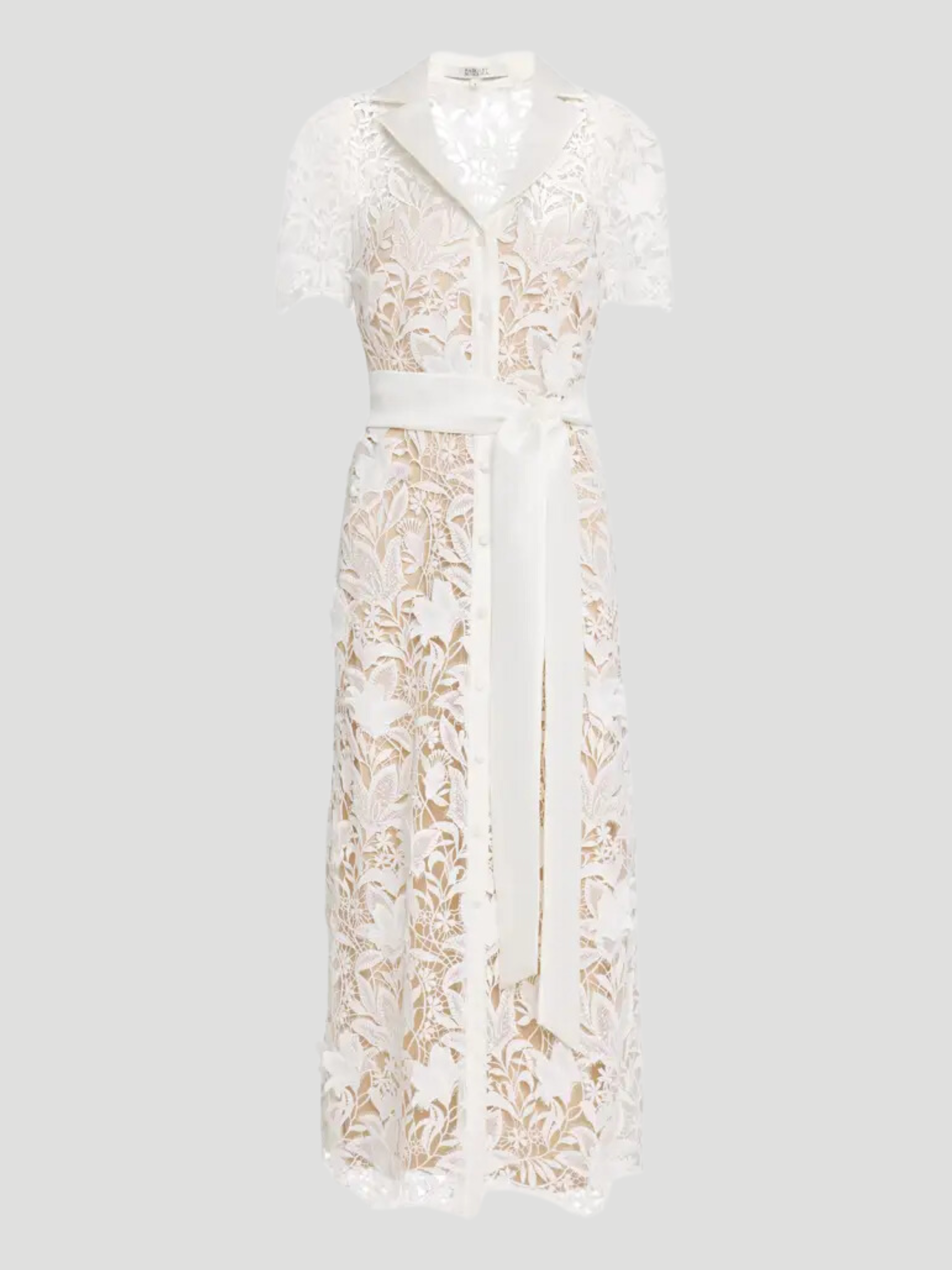 This lace shirt dress in white is the perfect addition to any wardrobe. Made with high-quality lace material, this dress is both elegant and comfortable to wear. With its versatile design, it can be dressed up or down for any occasion. Get ready to turn heads and feel confident in this stunning dress.