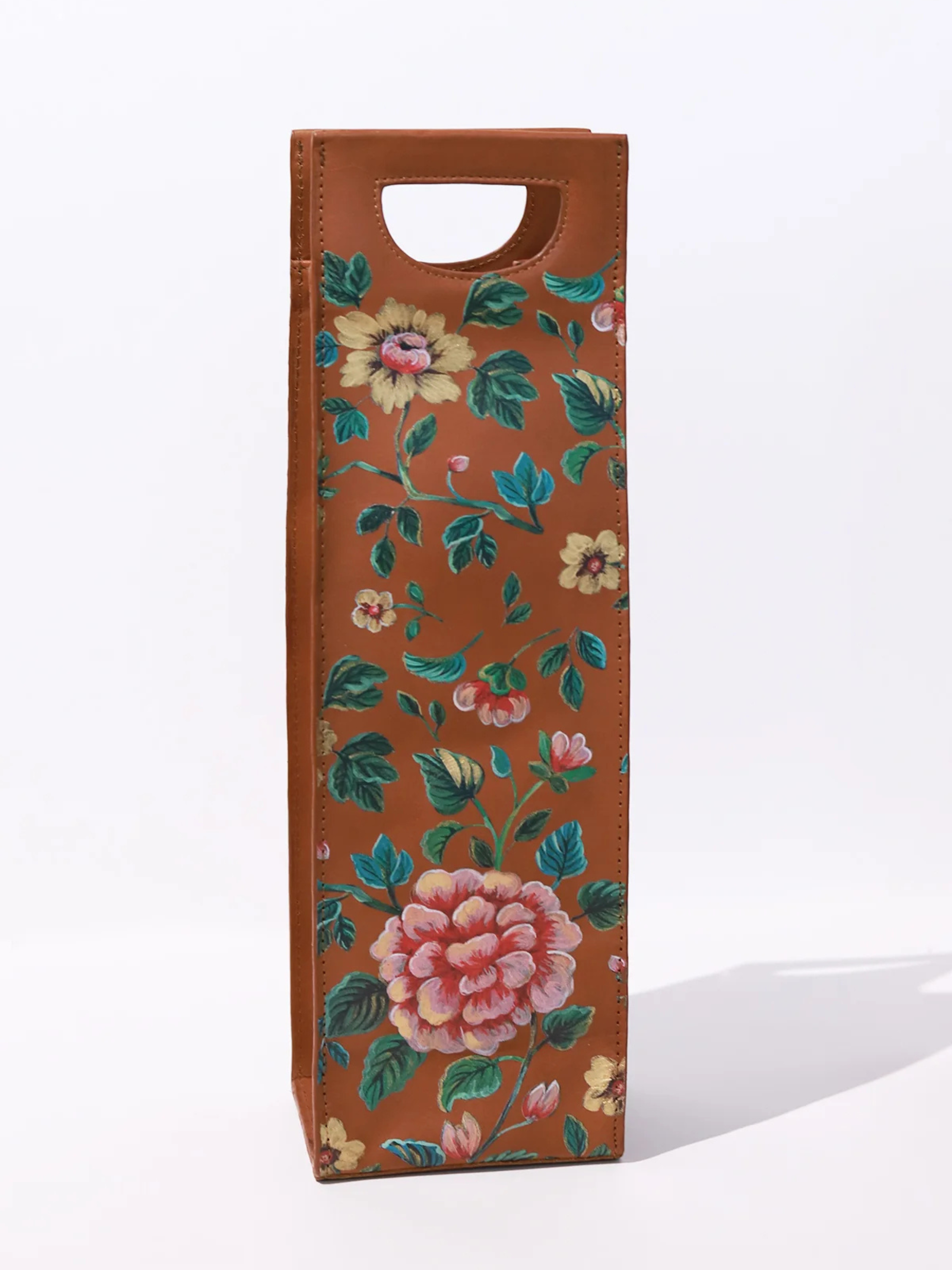 Painted Floral Wine Bag