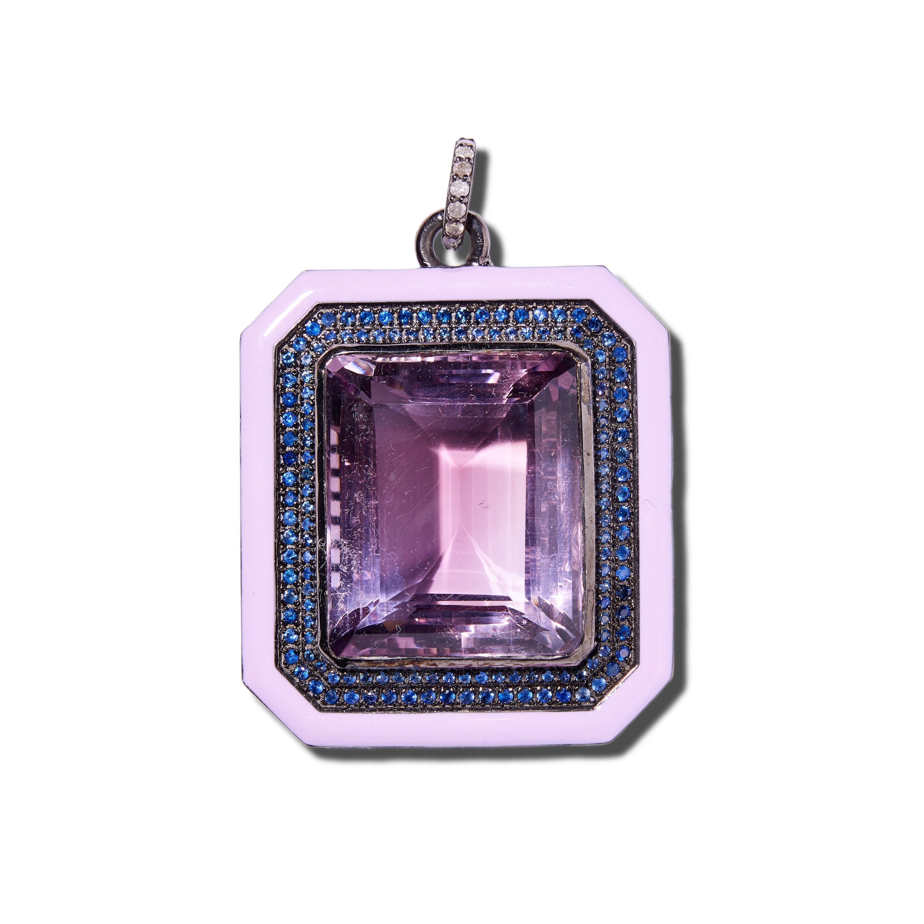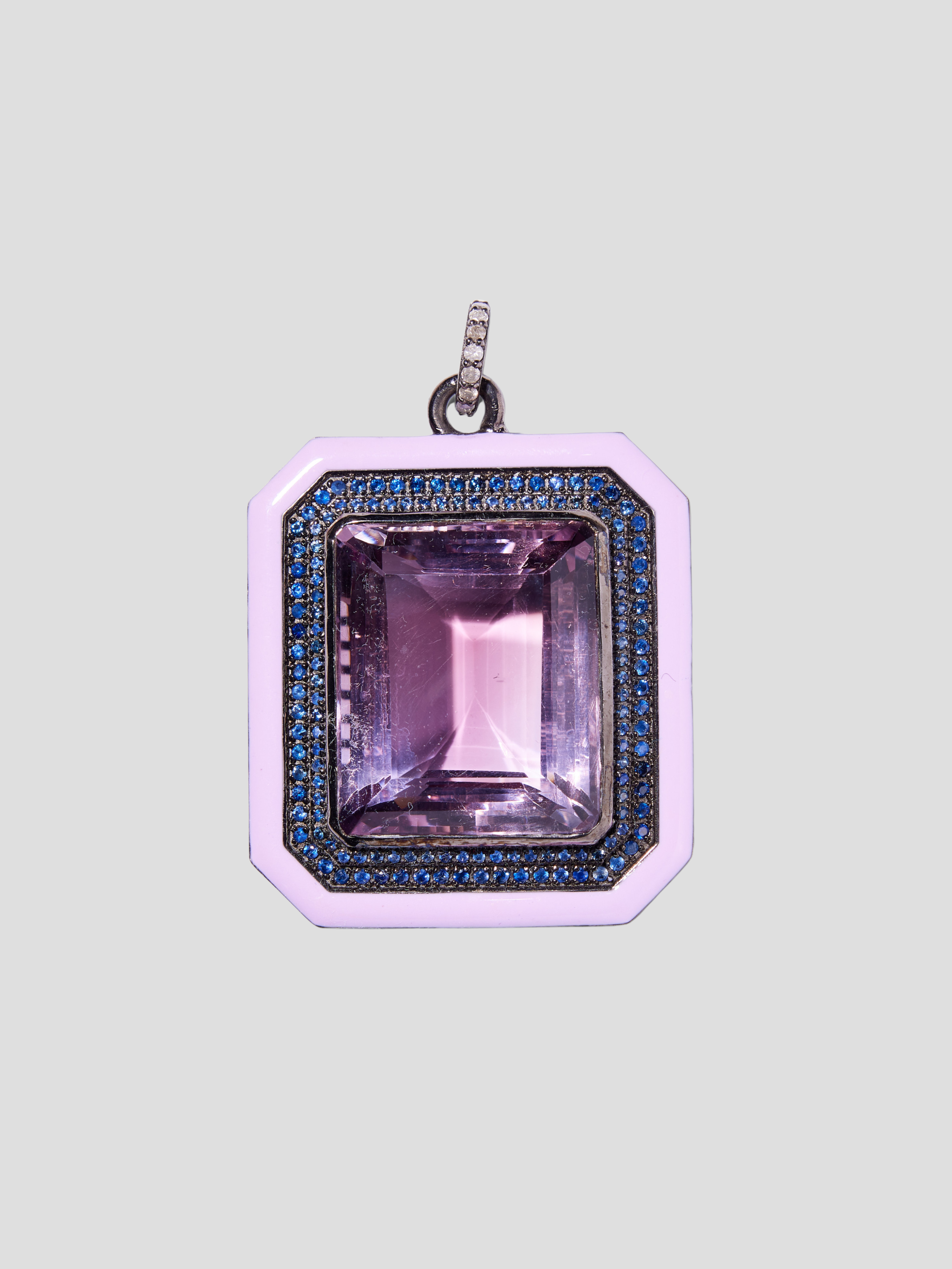Ametrine pendant surrounded by brilliant-cut sapphire cast in a mauve enamel