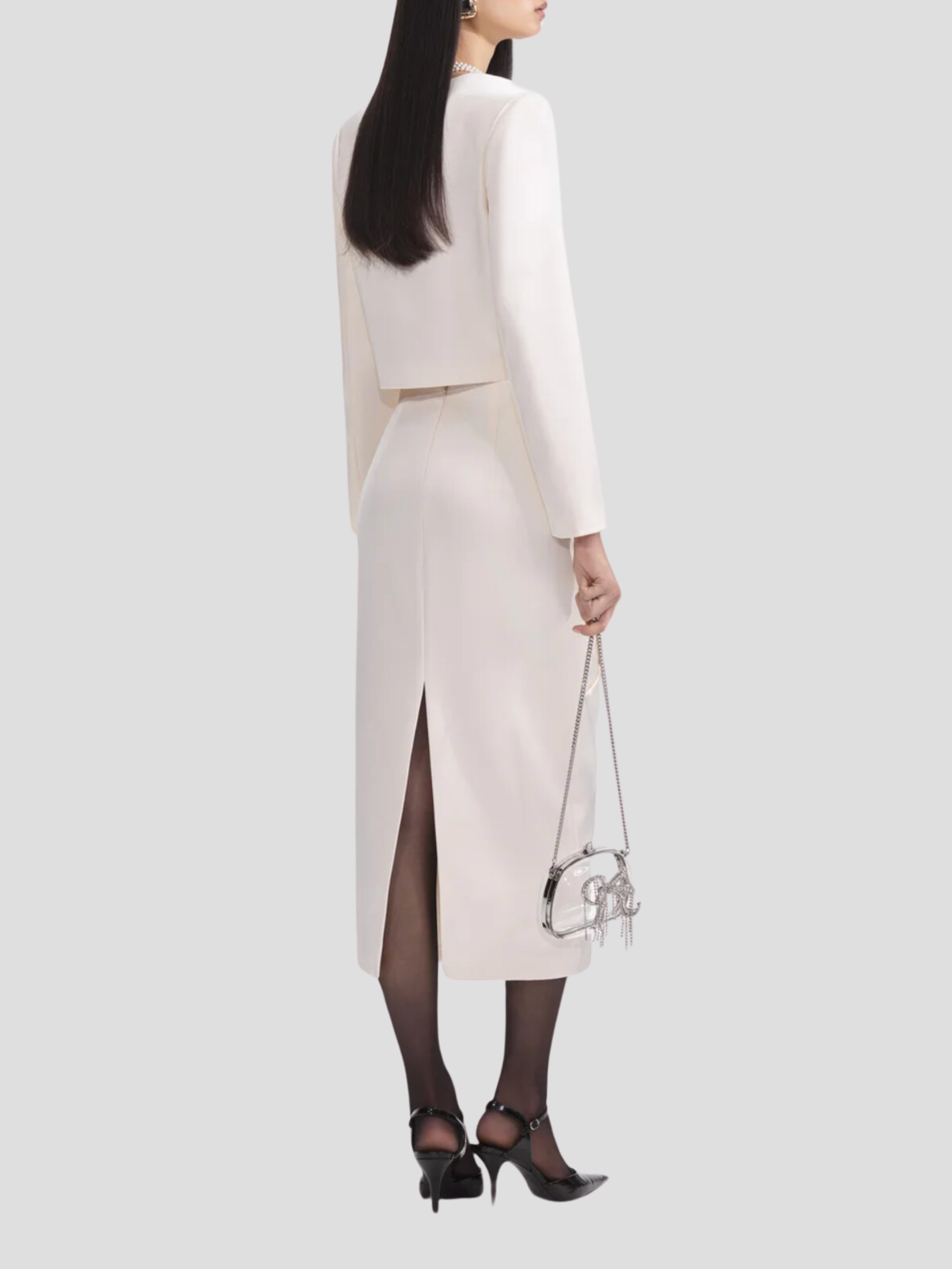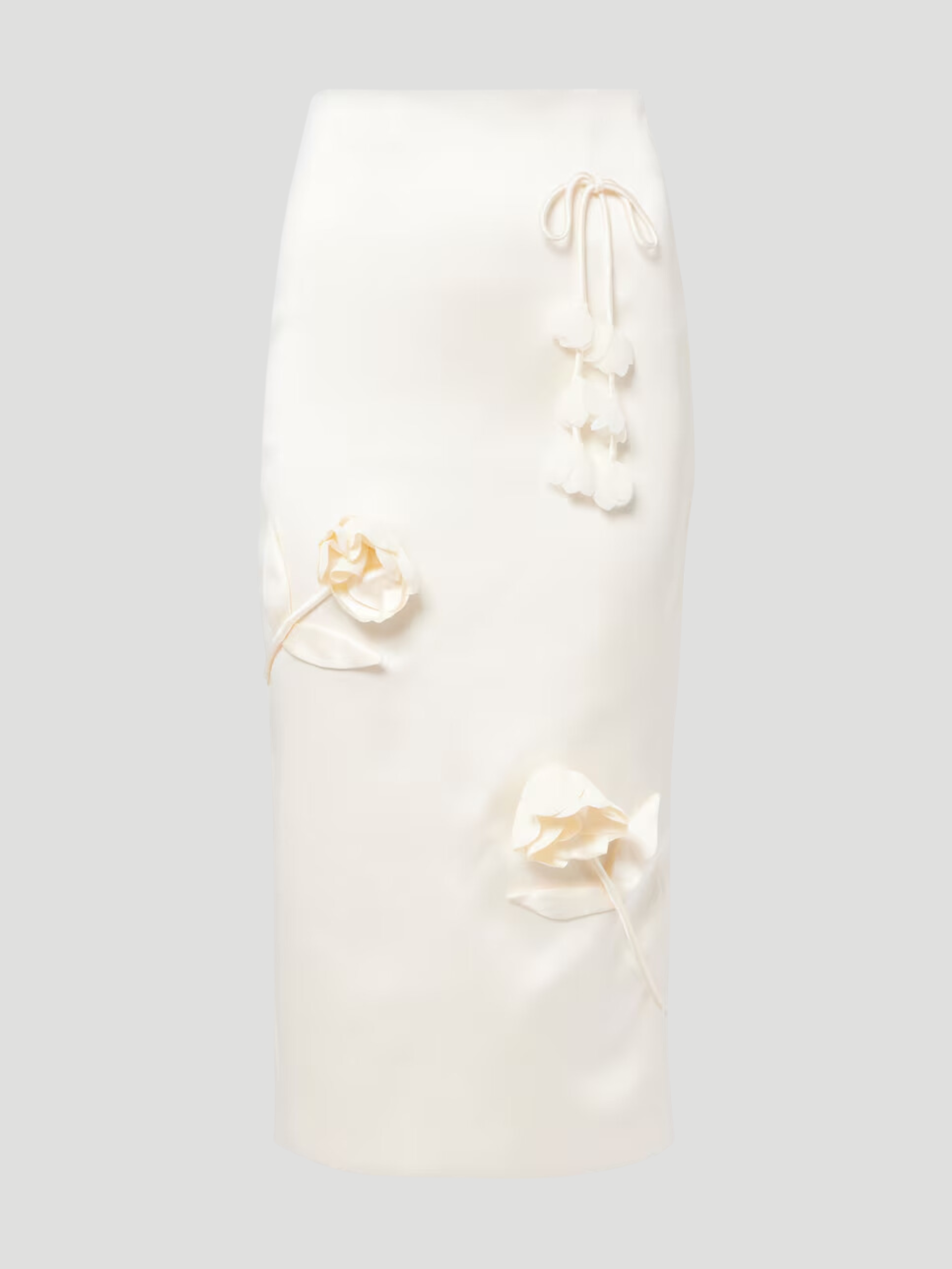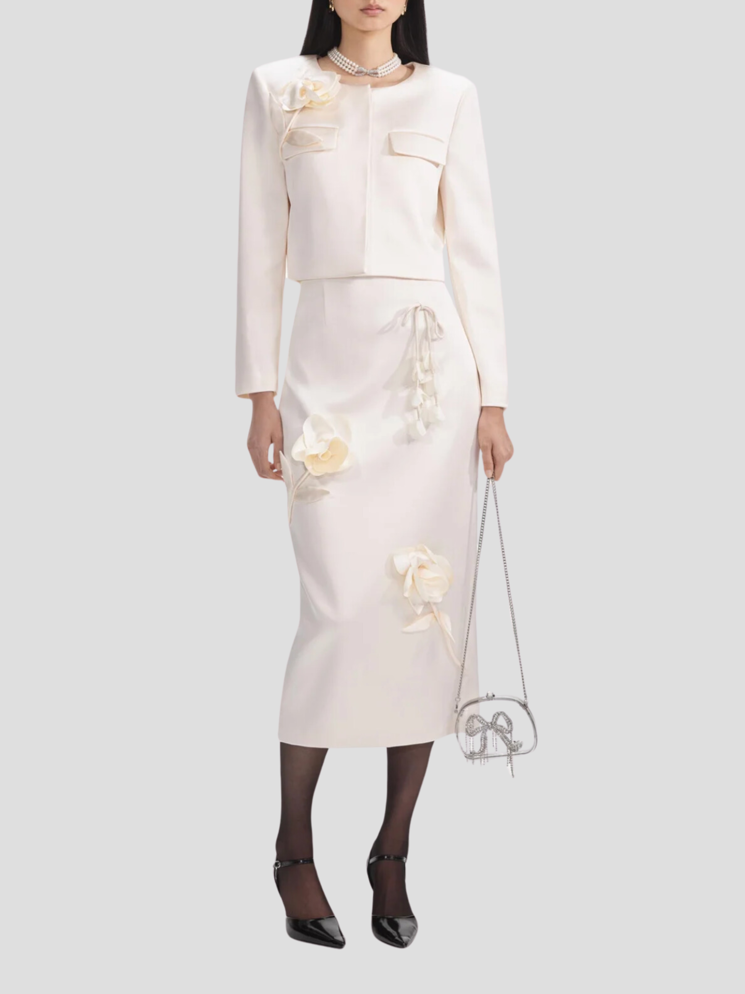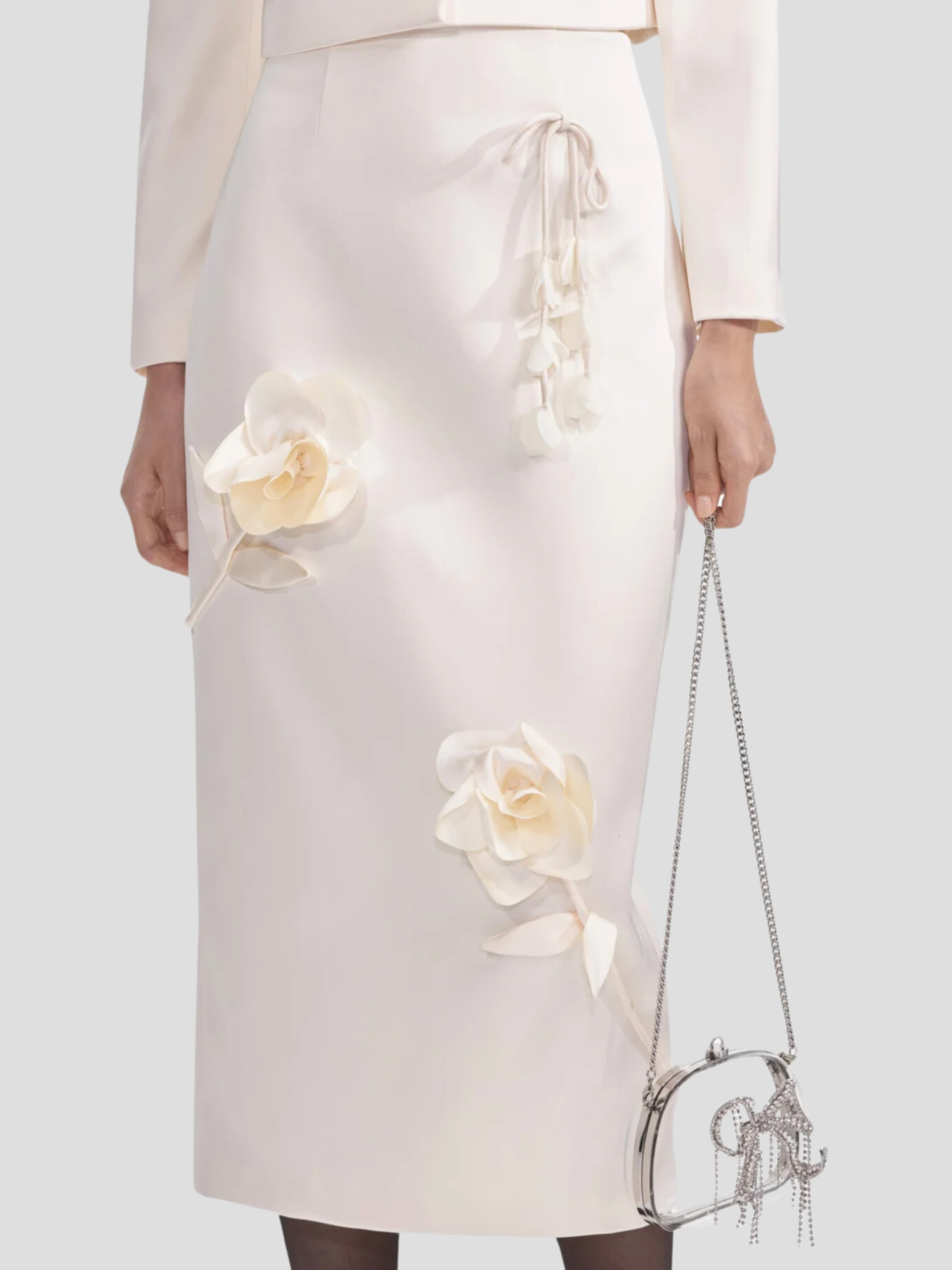 This Cream 3D Flower Satin Midi Skirt is expertly crafted with intricate 3D flowers and a luxurious satin fabric. With its elegant design and high-quality construction, this skirt is perfect for adding a touch of sophistication to any outfit. The perfect combination of style and comfort, it's a must-have for any fashion-forward individual.