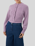 Fit Notes: Fit: Regular fit long sleeve crew neck cardigan Body length ends at waistband Length from shoulder to waistband: 17" Model is 5'9" wearing a size Small / 4