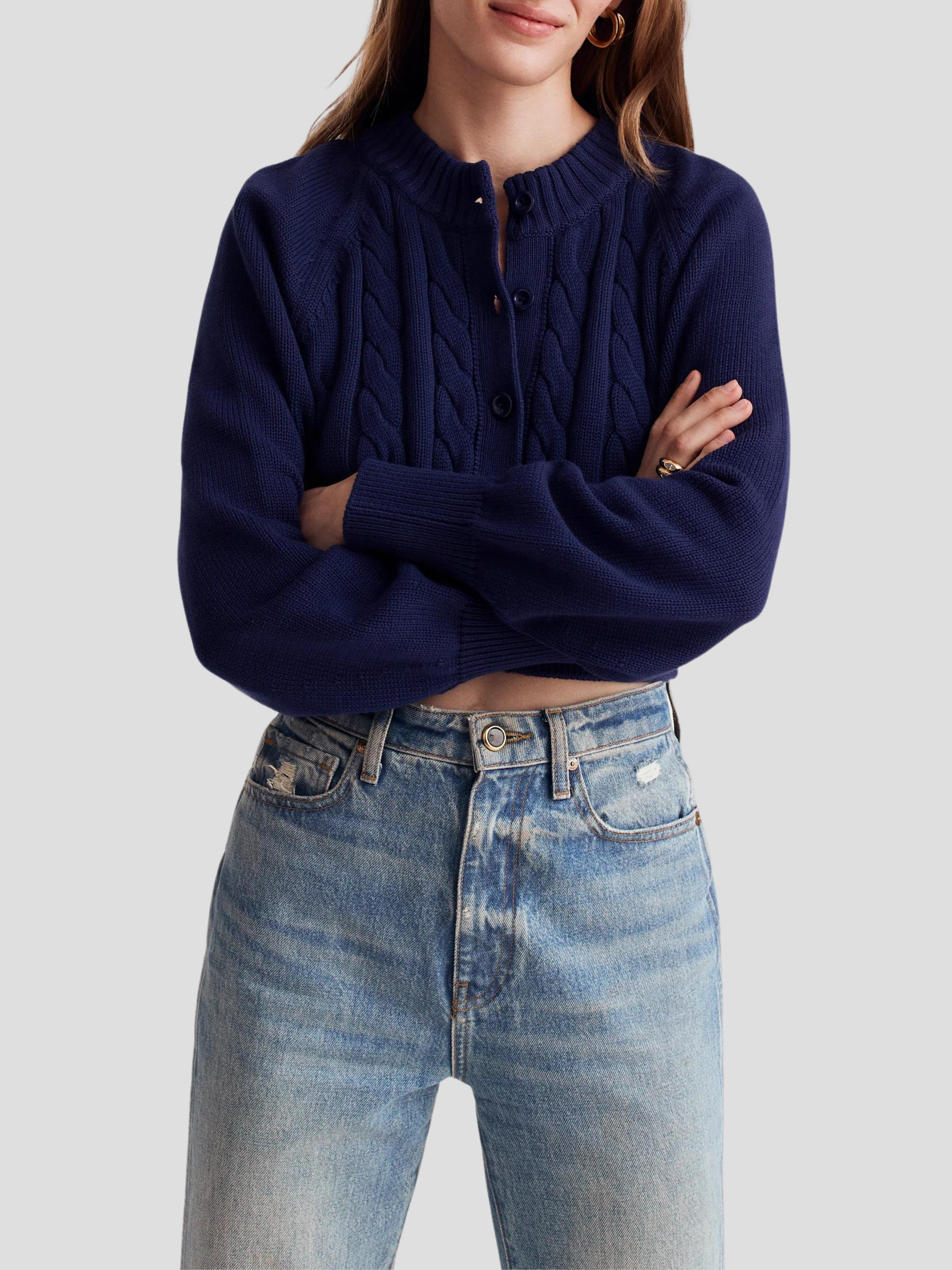 Indulge in luxury with our Rita Cotton Cropped Cardigan. This best-selling piece, usually crafted from cashmere, is now available in soft cotton for a chic and casual look. With a button front and cropped design, it's perfect for transitioning your outfits during those in-between months. Elevate your wardrobe with this versatile must-have.