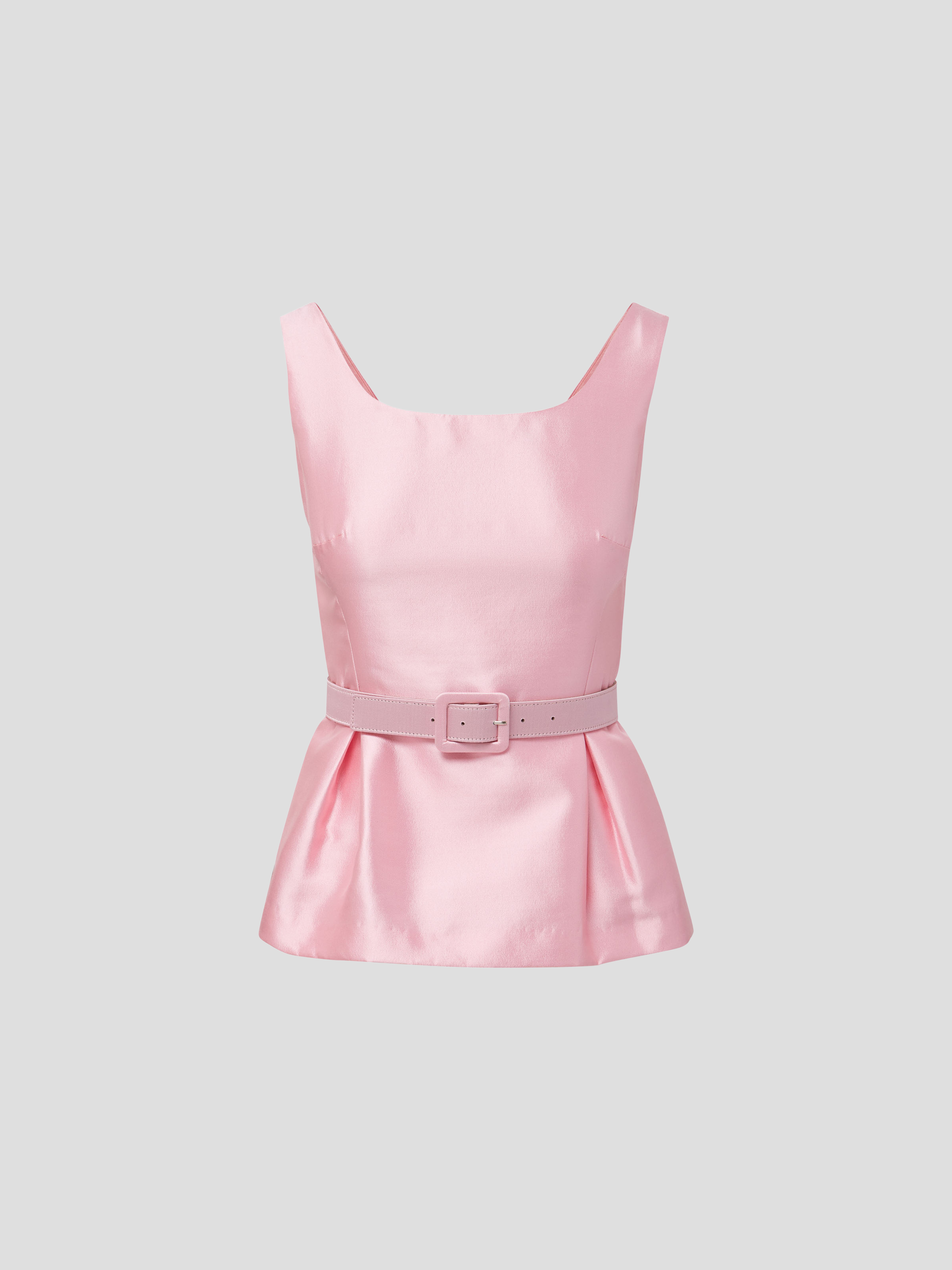- Fitted bodice eases into inverted pleats for the perfect peplum